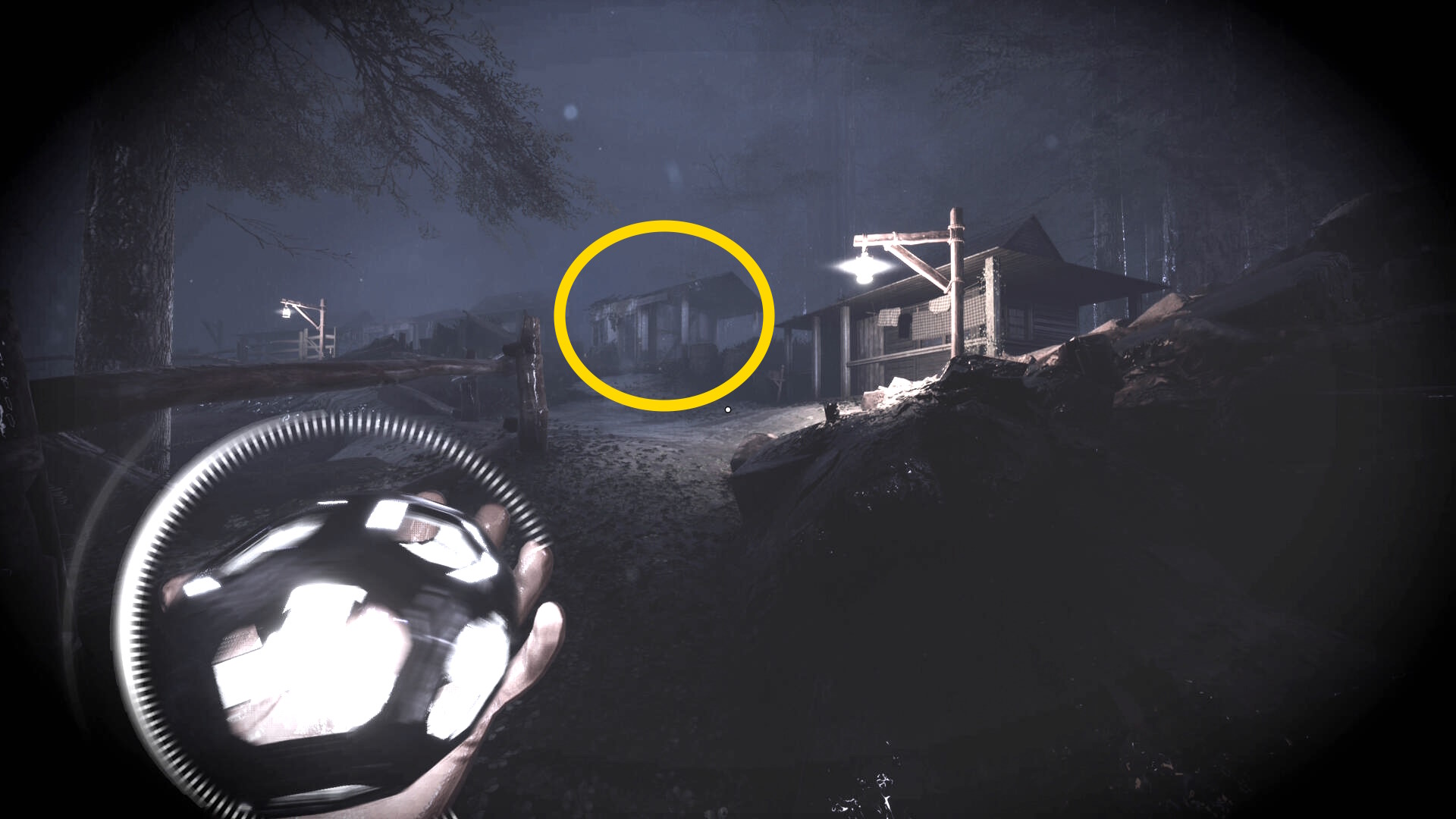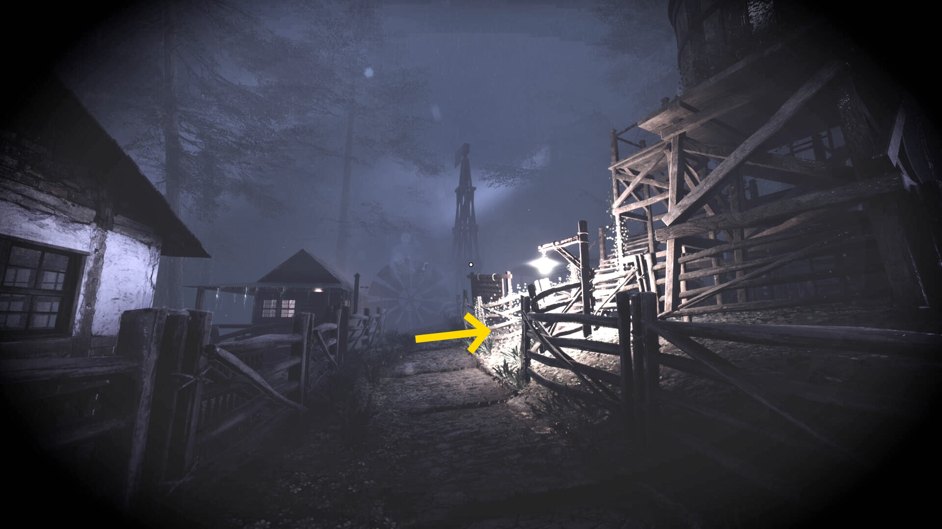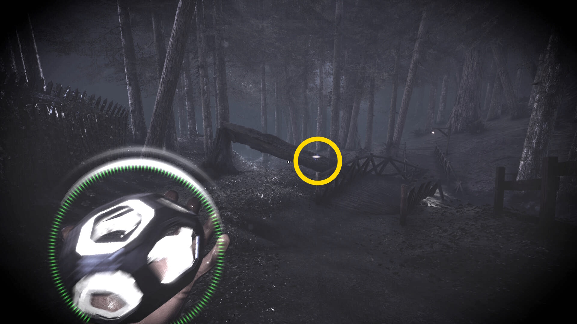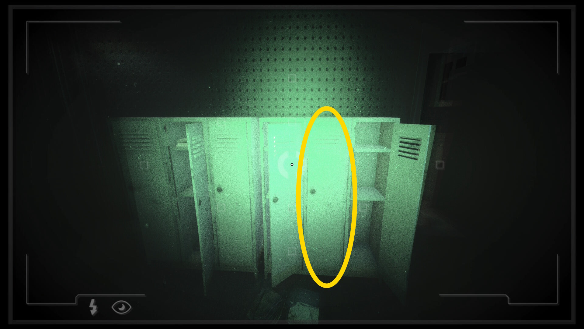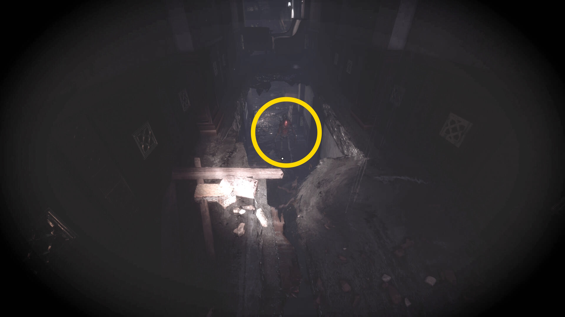 • 突き当りのドアを開け、暗視カメラを発動して右前方のレンガの通過