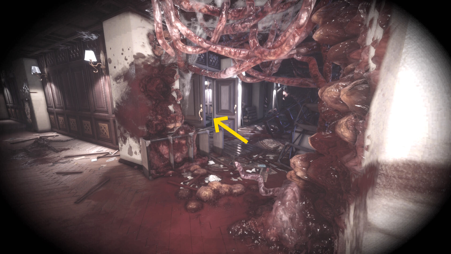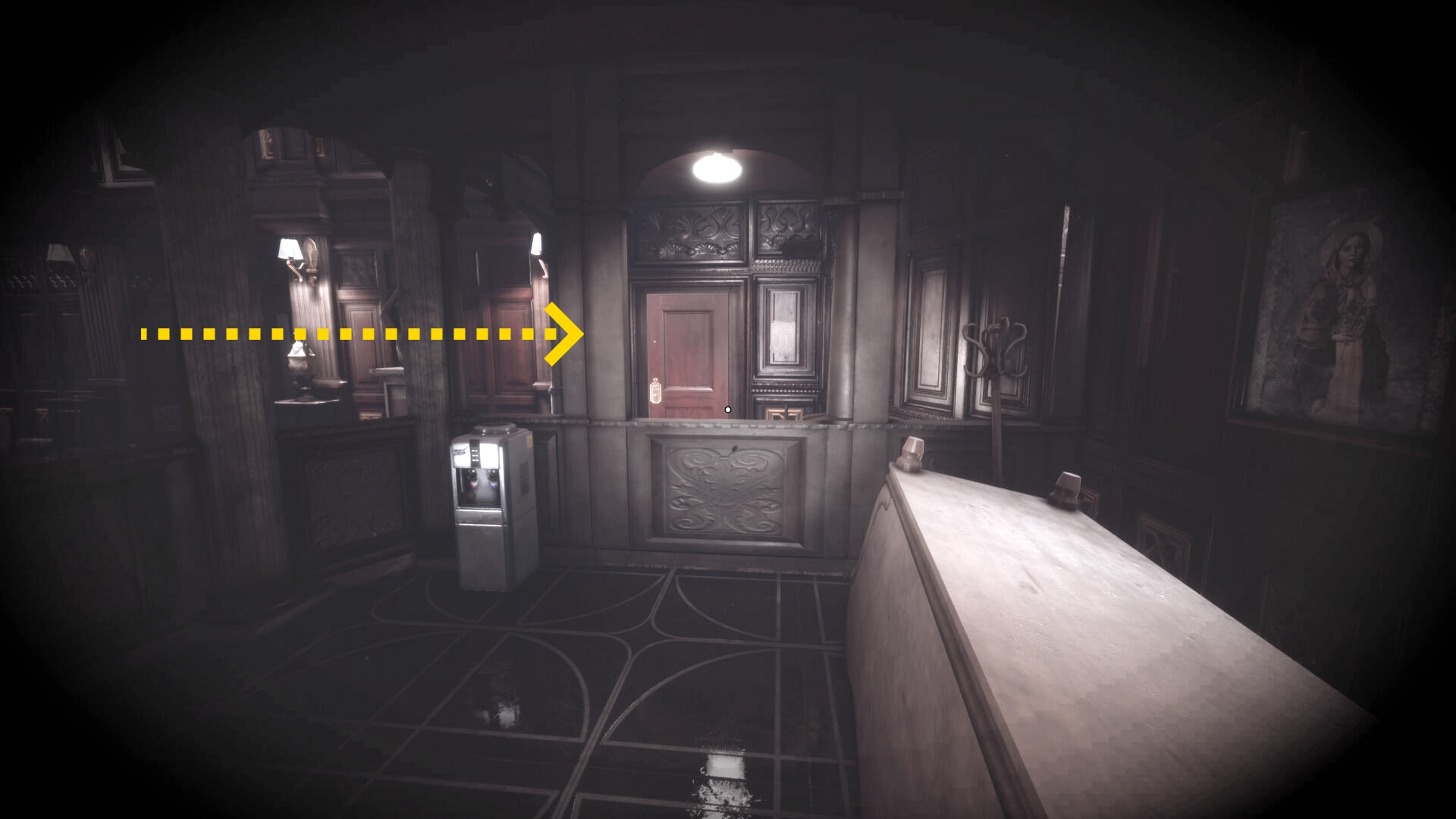 • エレベーターを降りて左に進み、壁掛け時計(セーブポイント)を過ぎたところのドアを開ける