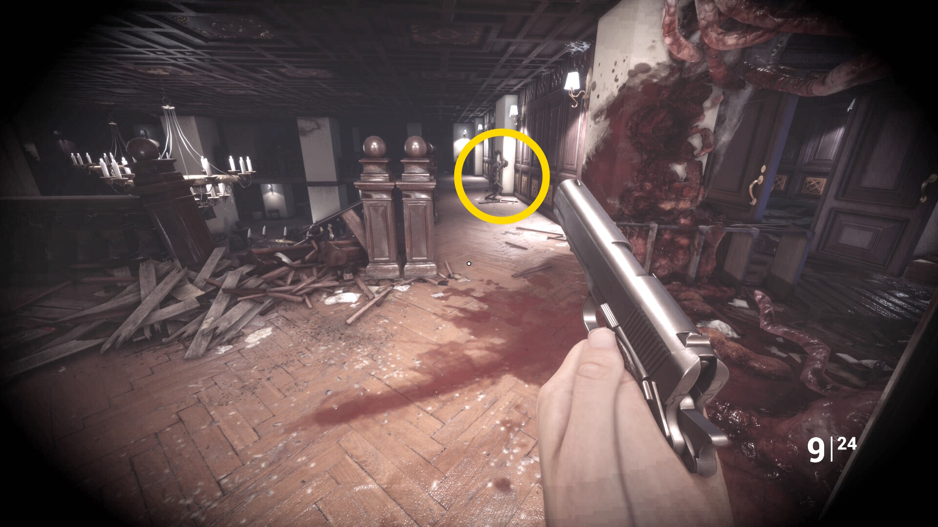 • そのまま初めての敵との戦闘になるが、強制的にピストルを装備した状態になる ので焦らずキルしよう