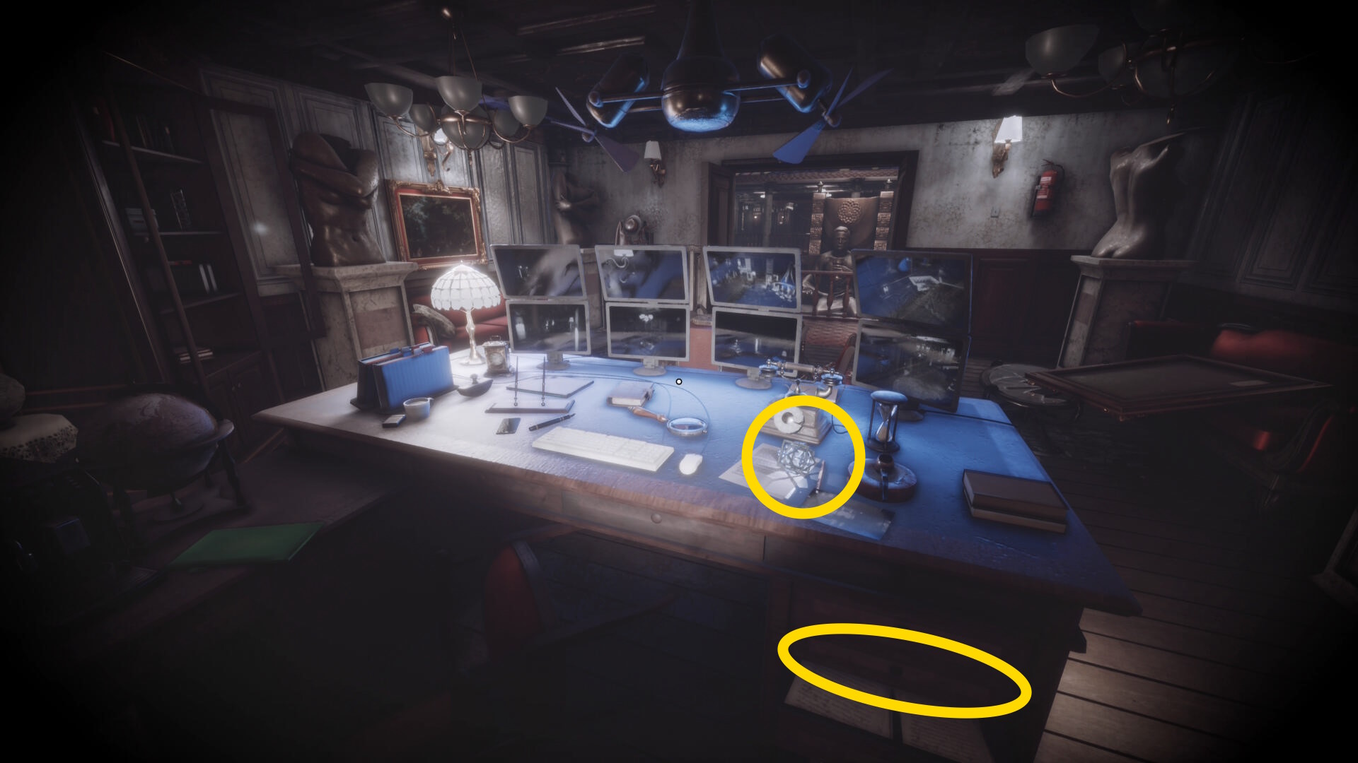 • 暗視カメラを起動し、壁掛け時計の左に出現した箱から 603号室の鍵電子回路 を回収