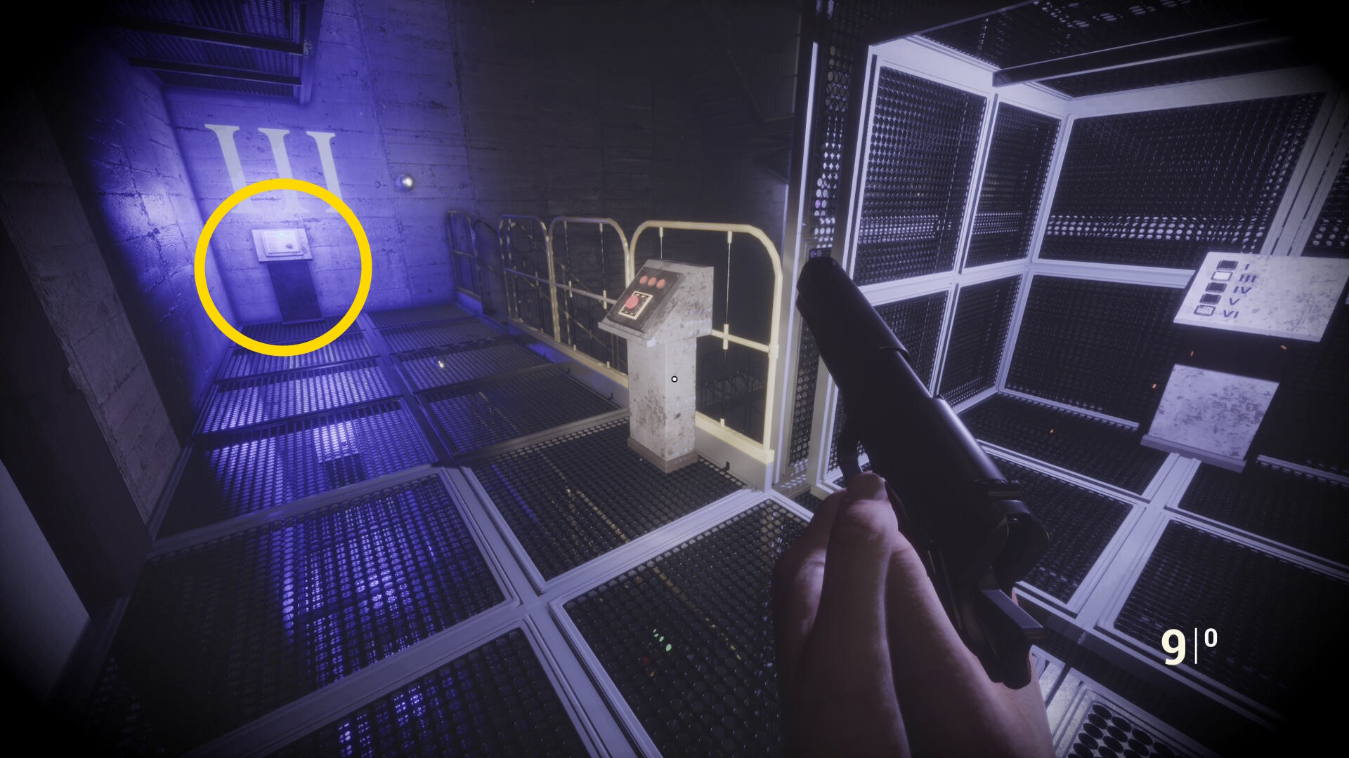• タイミングを合わせて 4 9 9 でパズルを解き、格納エリアのドアを開ける