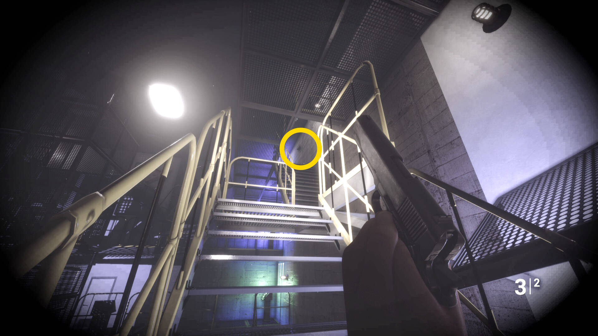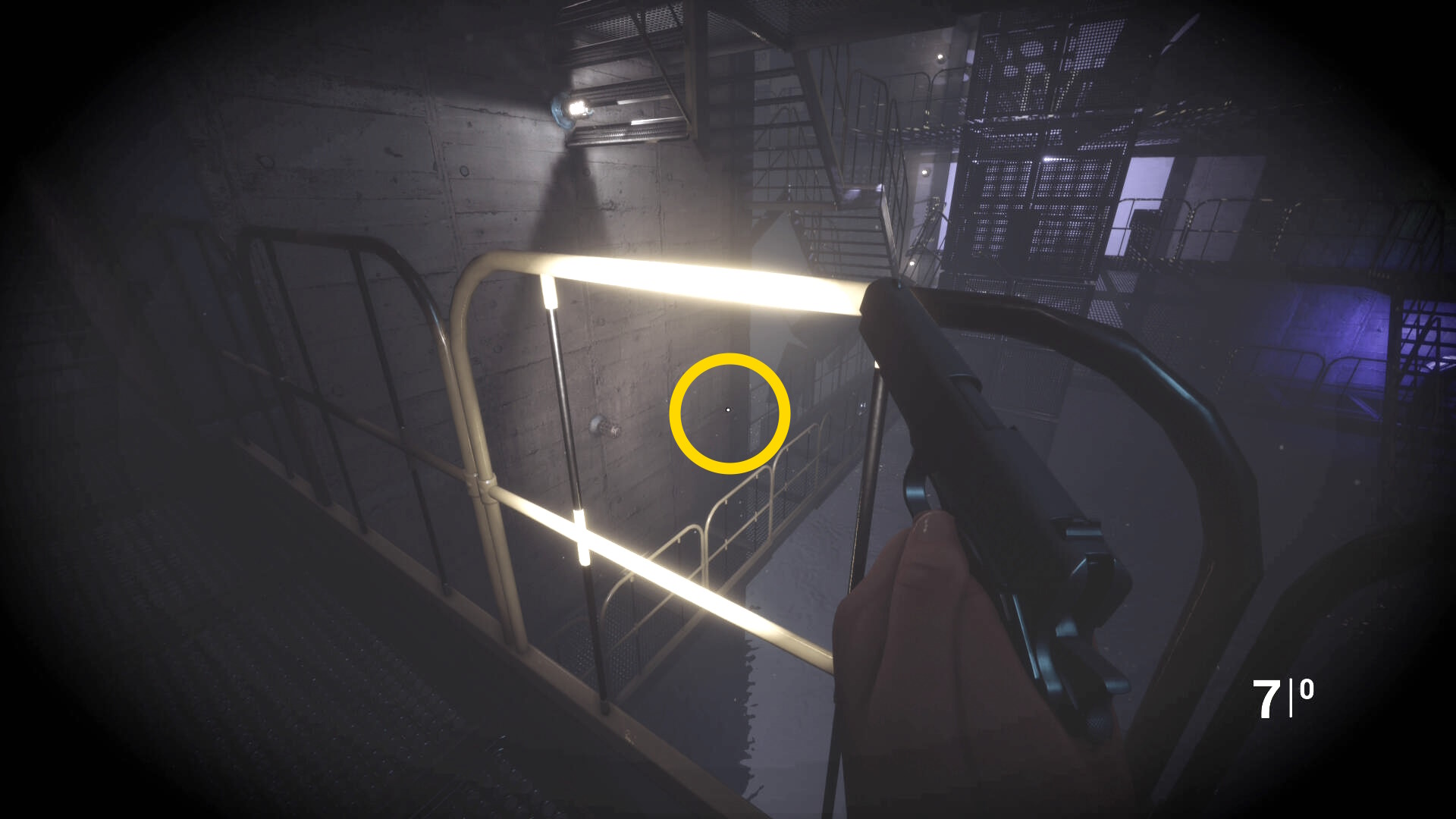 • 右の手すりから眼下の壁にいるクモ型の敵をキル