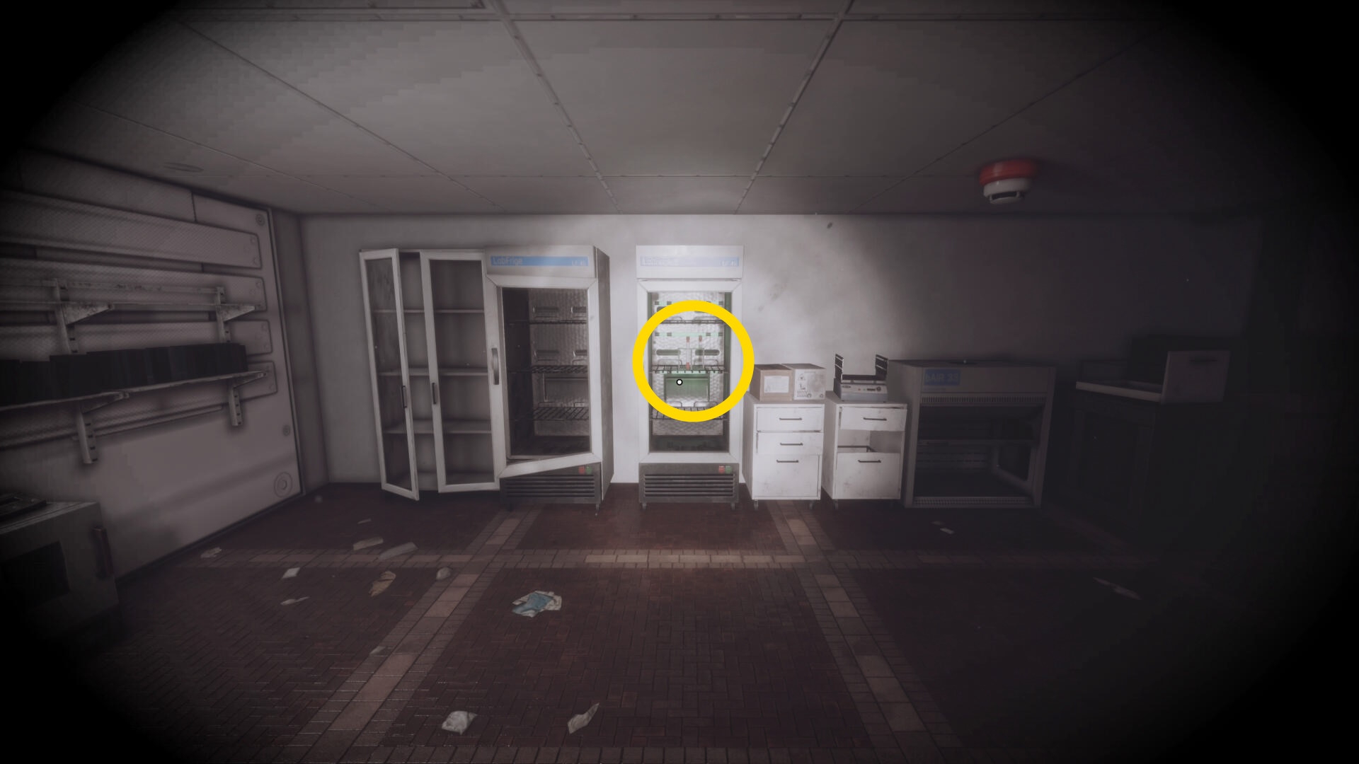 • 暗視カメラを起動して右に進み、ドアを開けたところの保管庫から マラリア原虫化合物 を回収