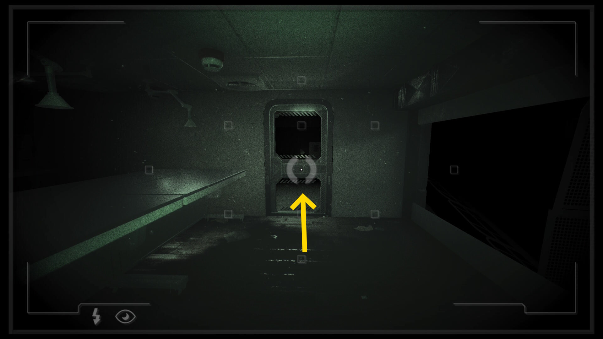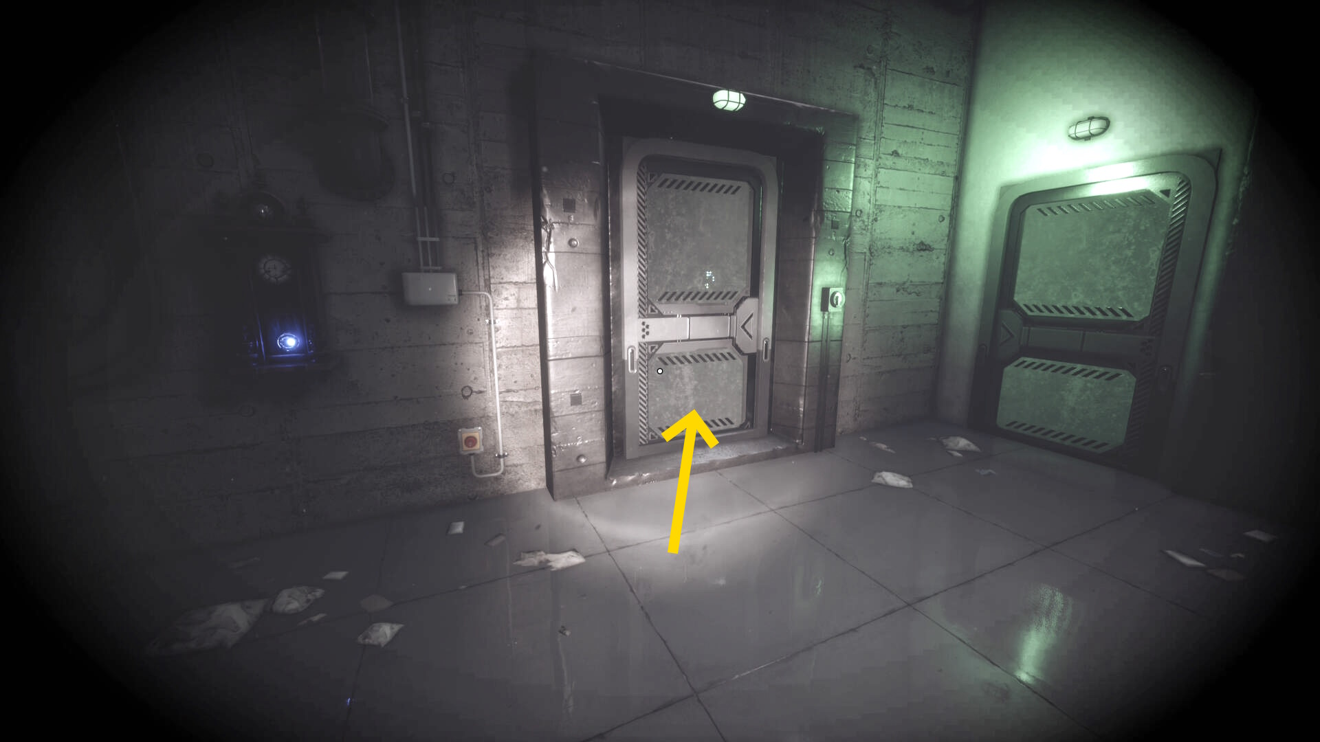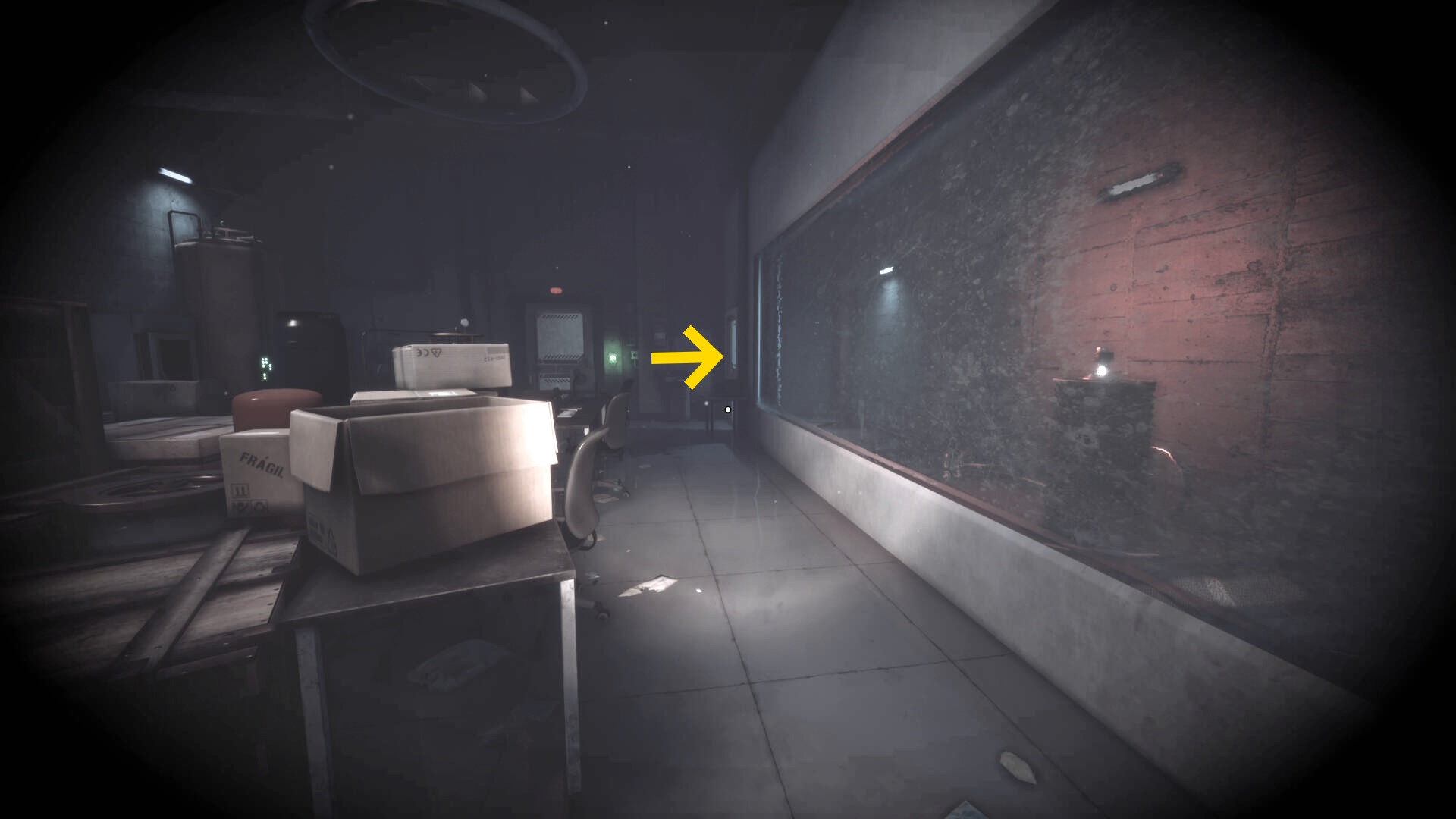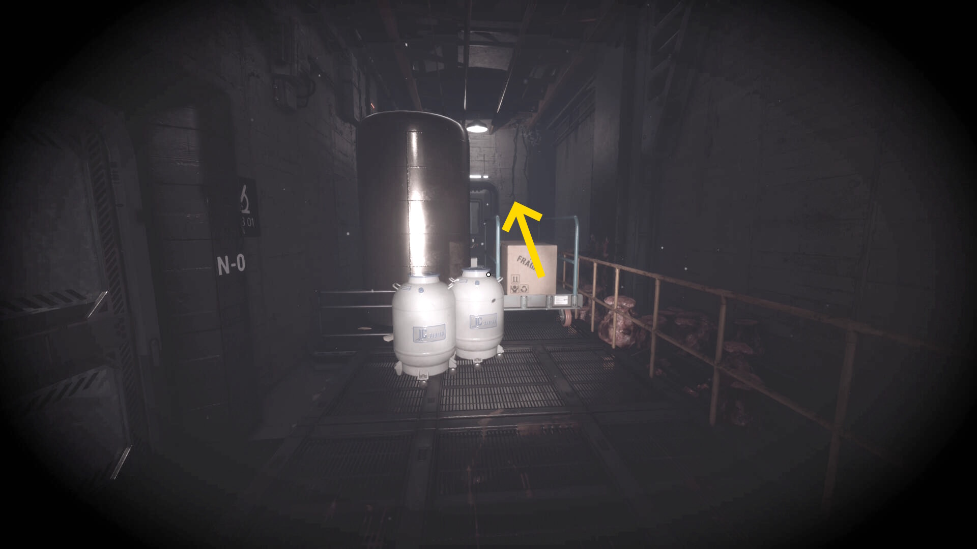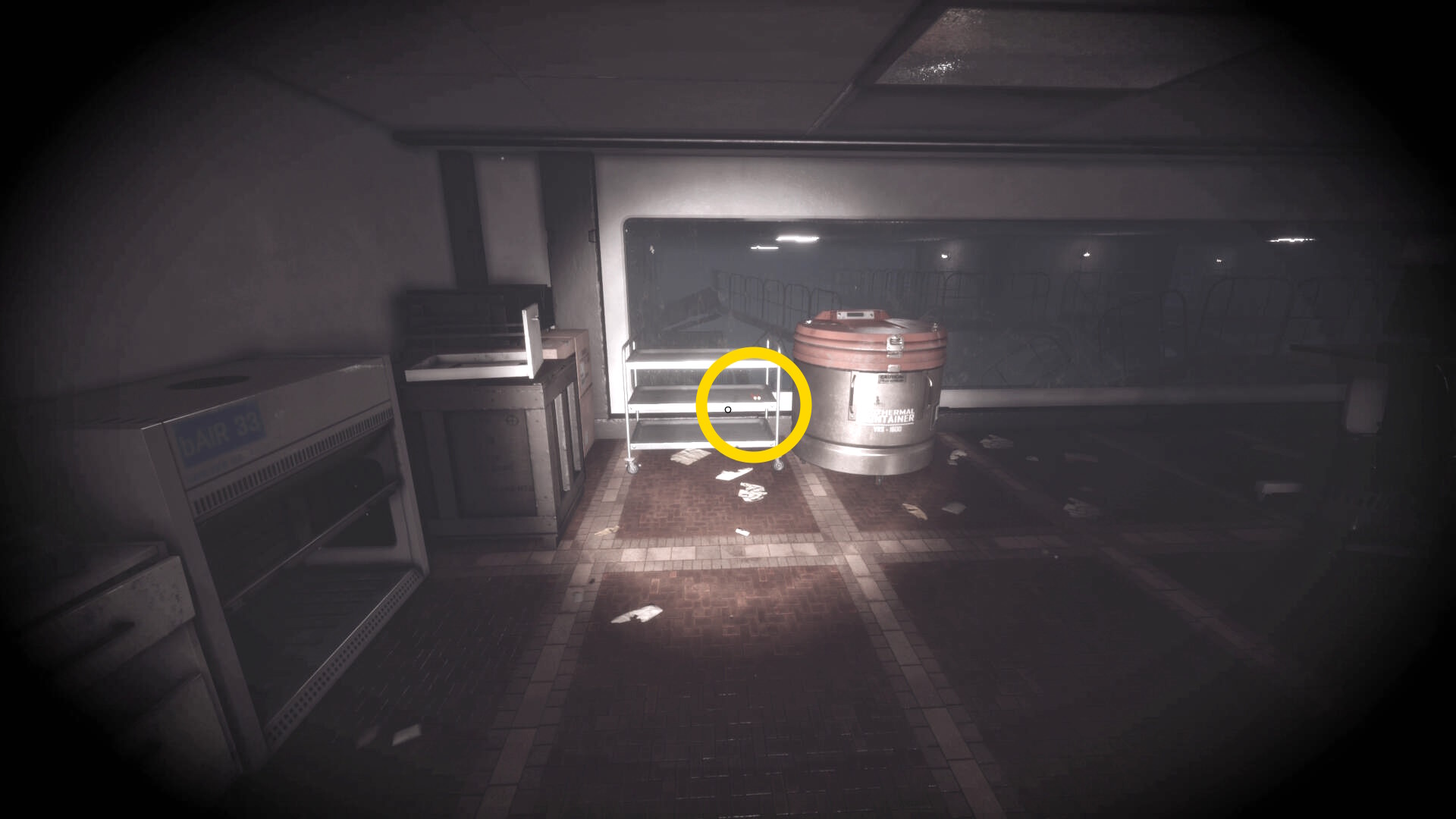- 大きな棚が倒れて通路を塞いでいるが、暗視カメラを起動すれば通過できる