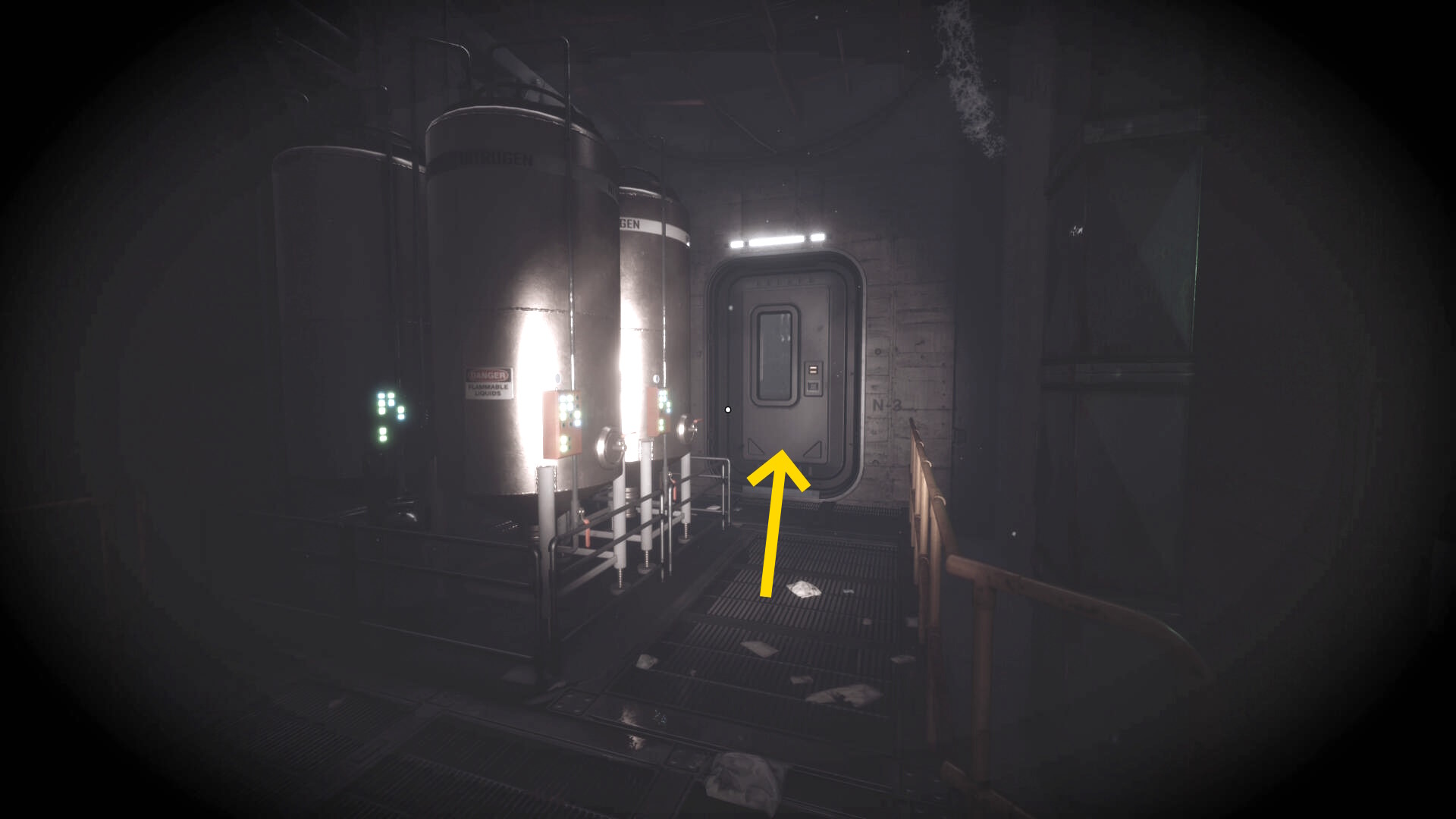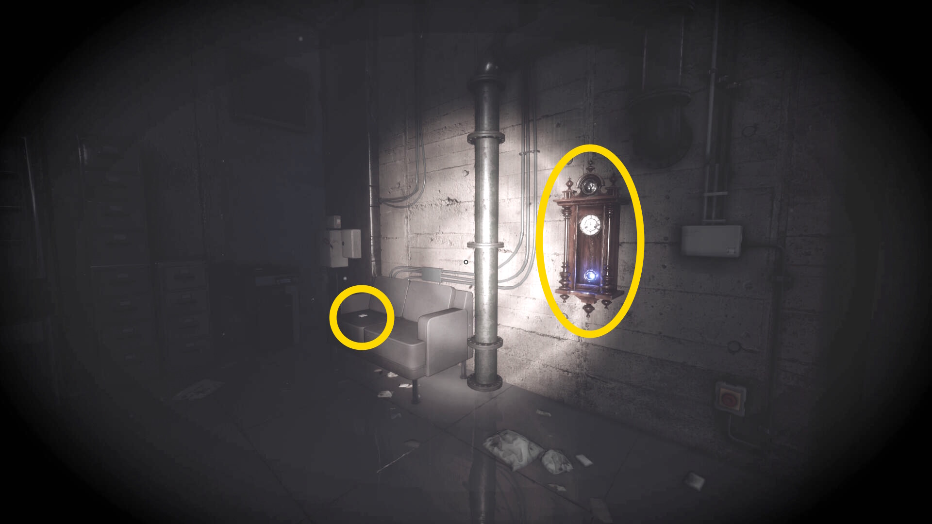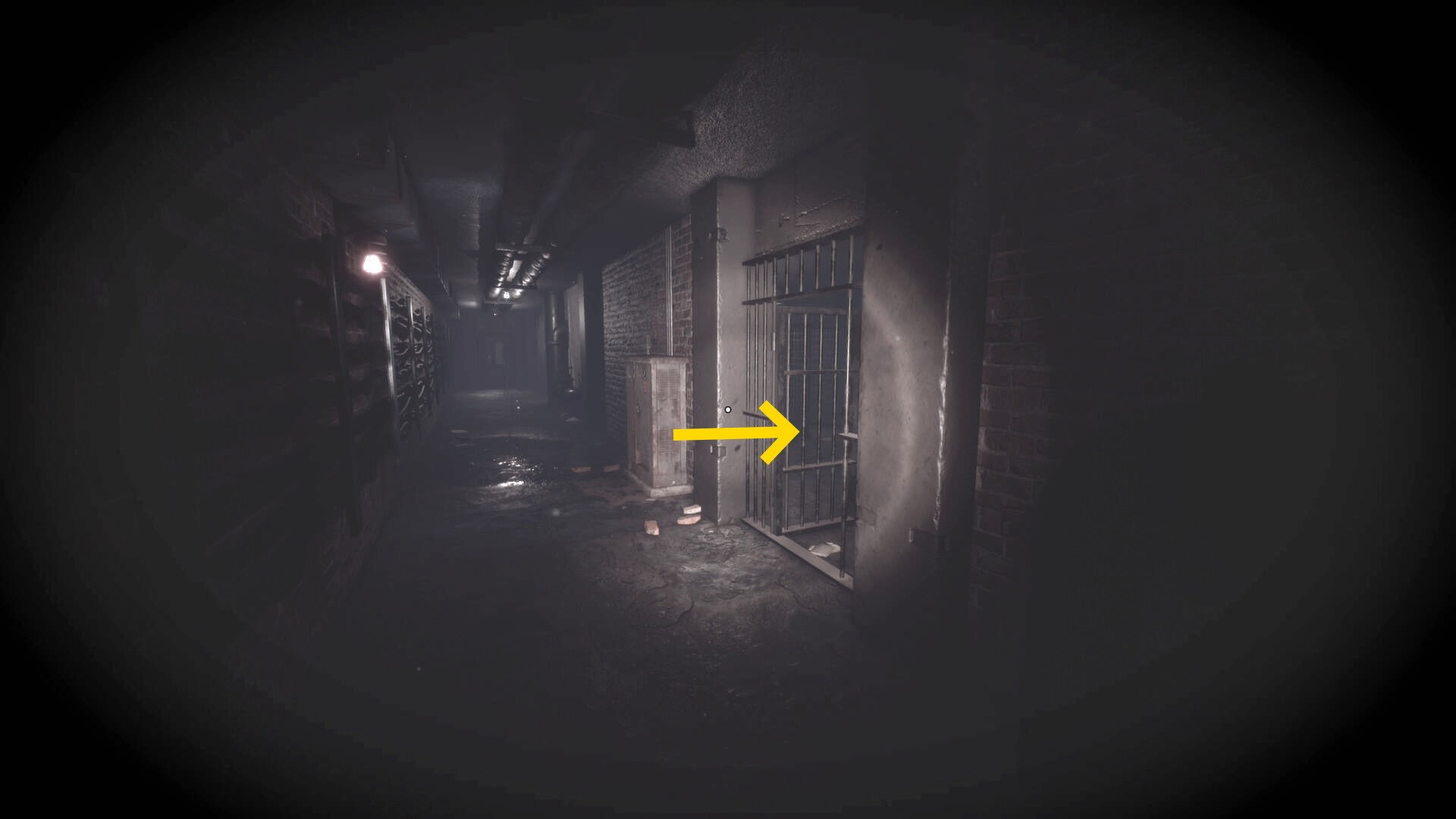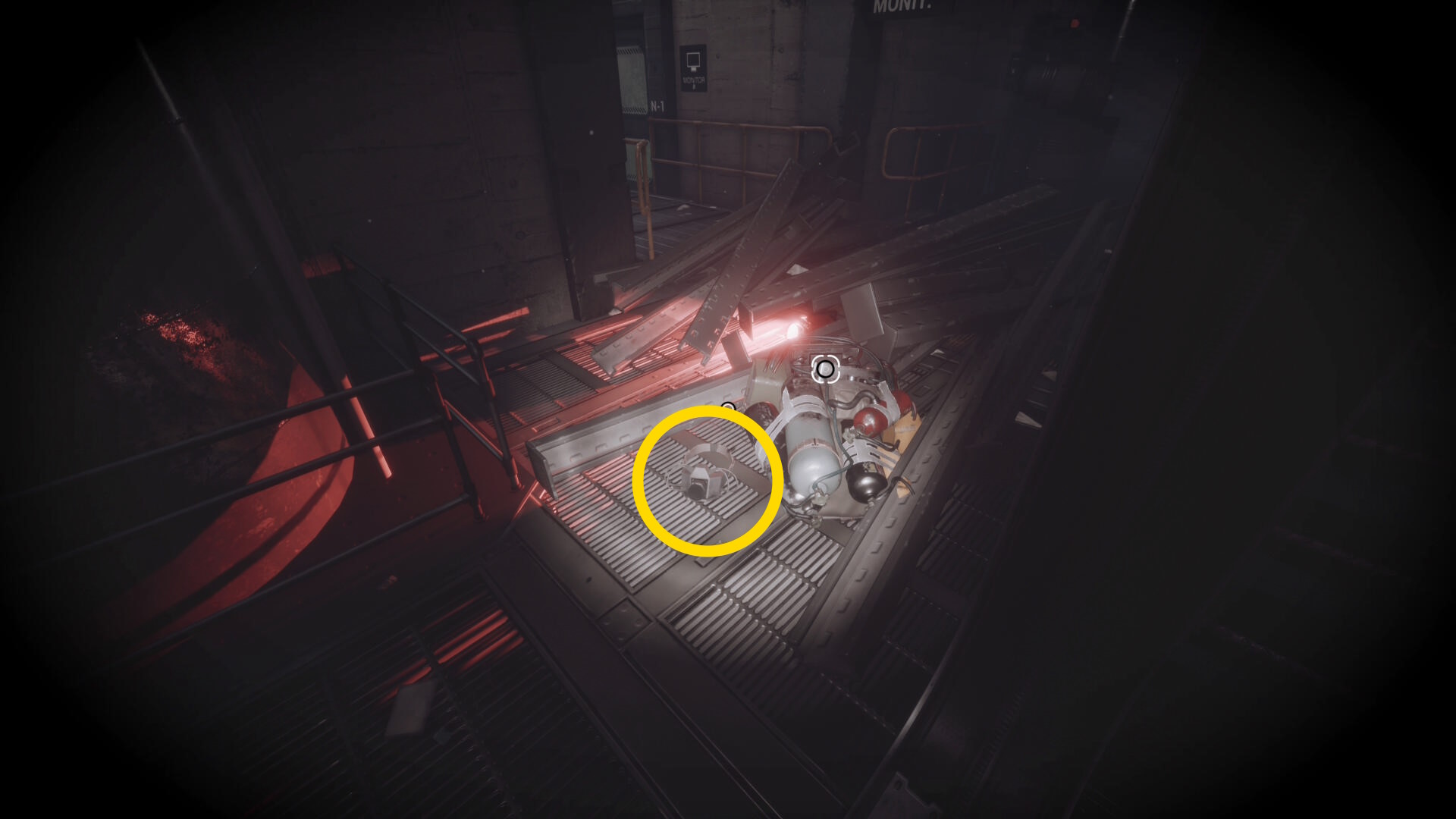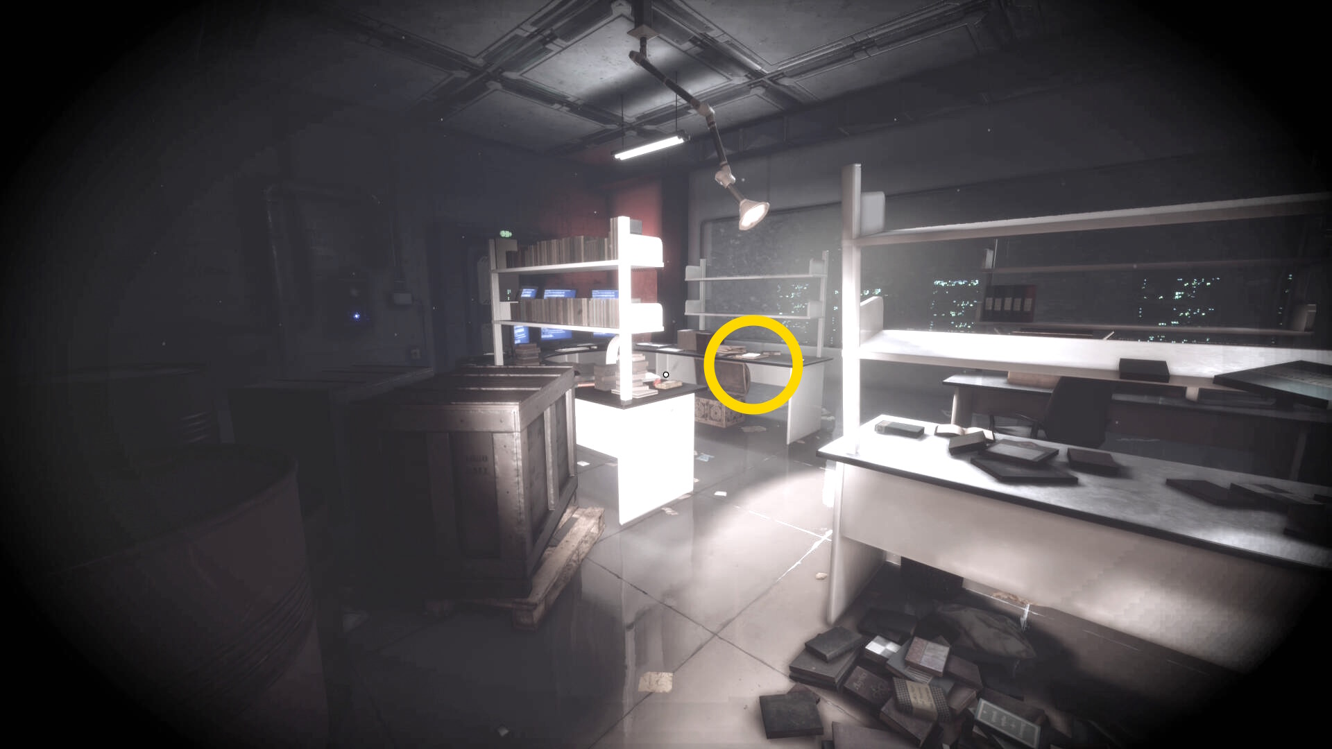 - 大きな棚が倒れて通路を塞いでいるが、暗視カメラを起動すれば通過できる