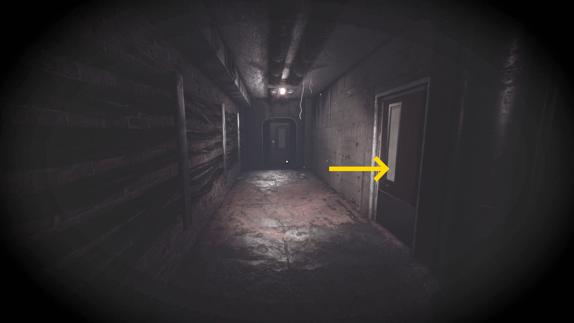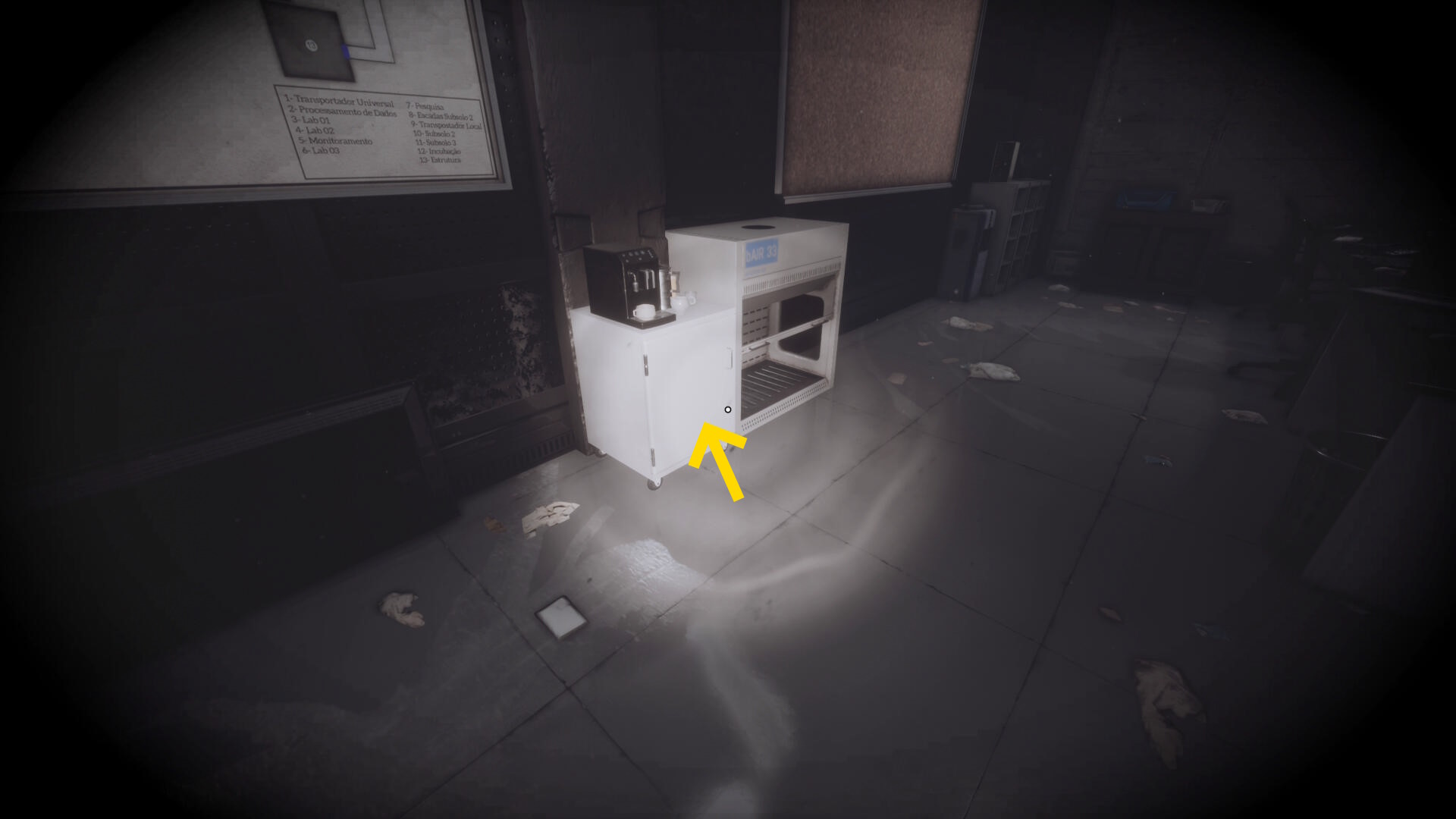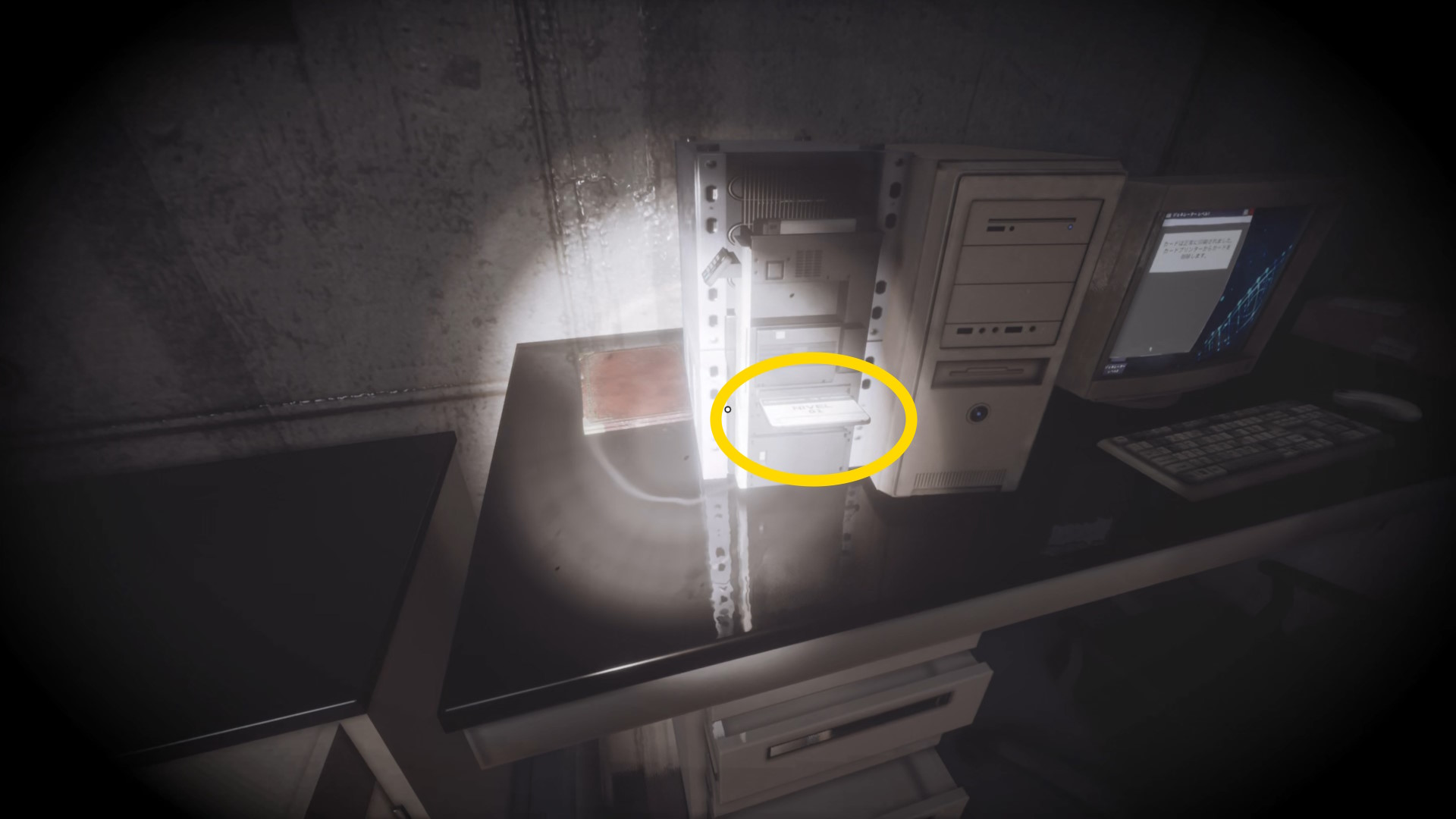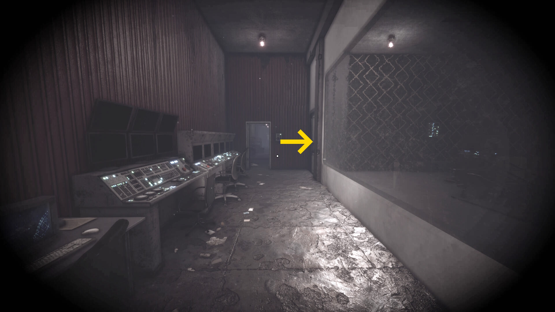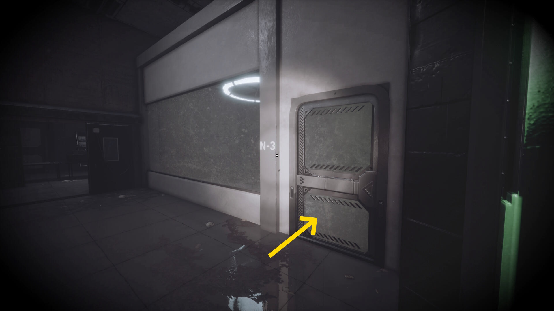 - 大きな棚が倒れて通路を塞いでいるが、暗視カメラを起動すれば通過できる