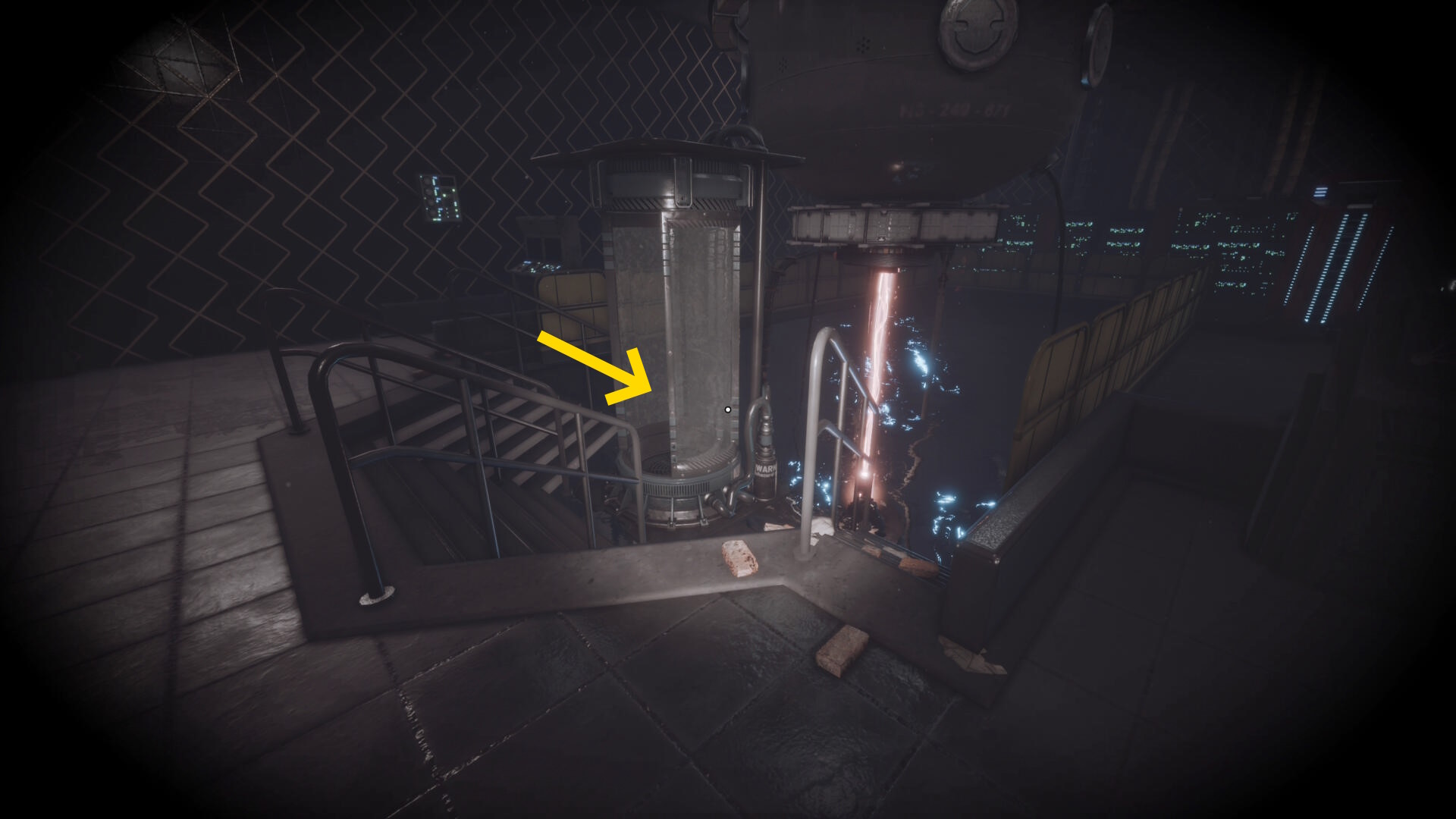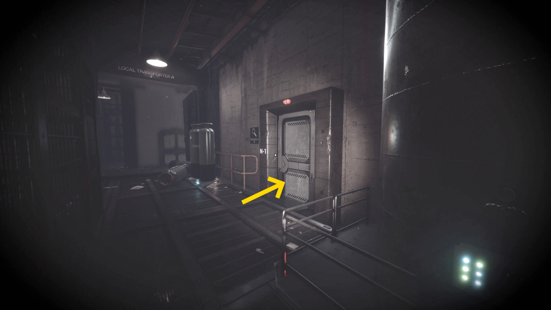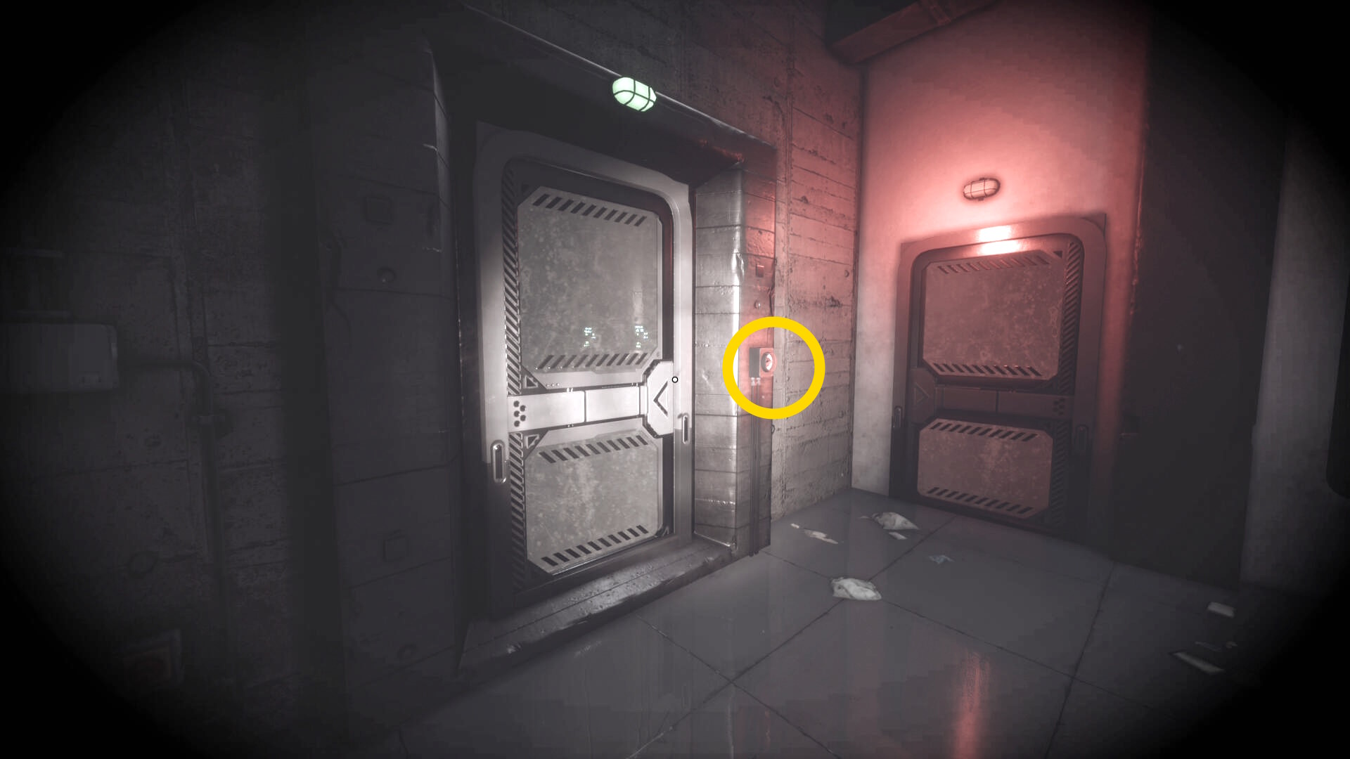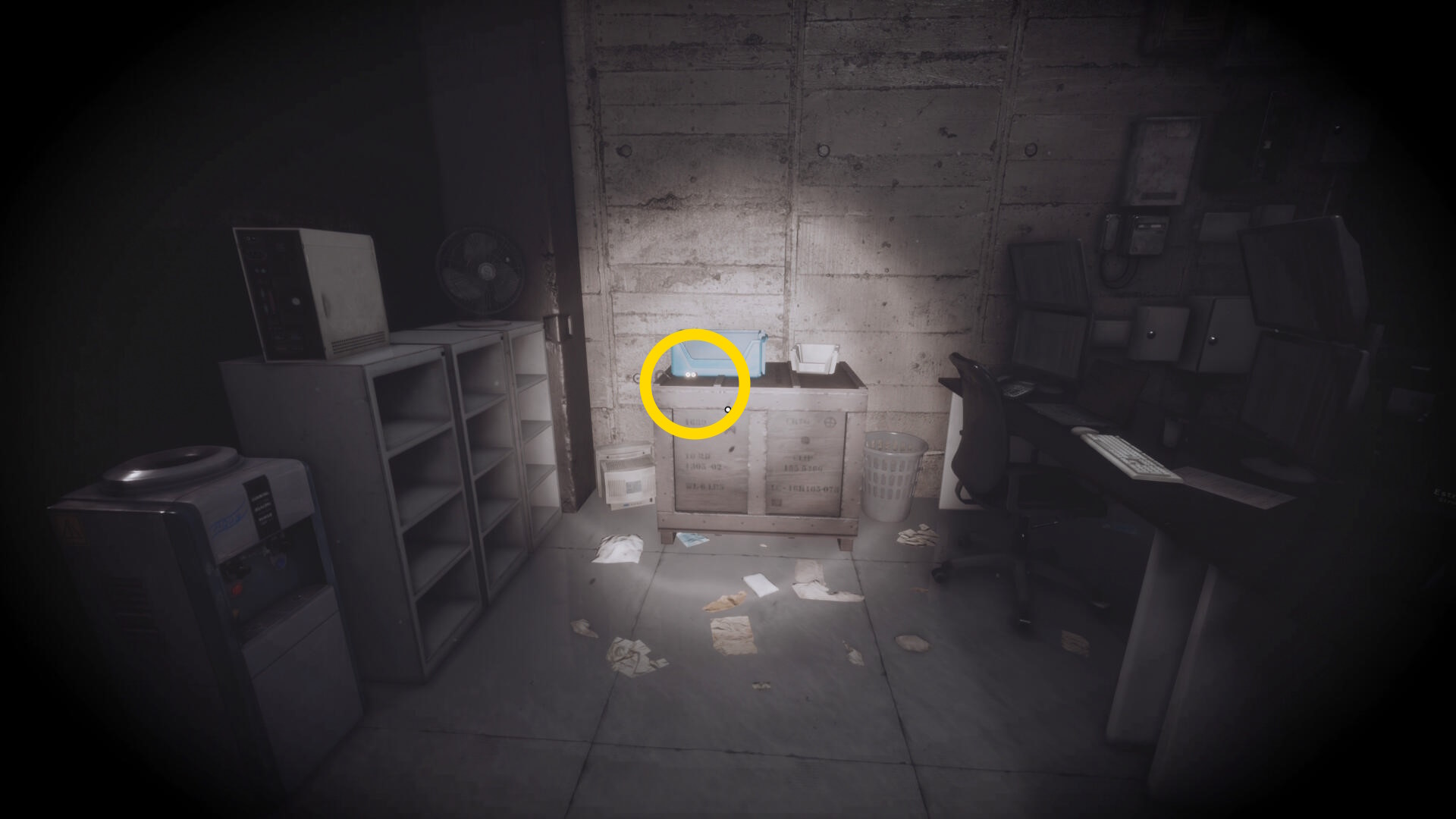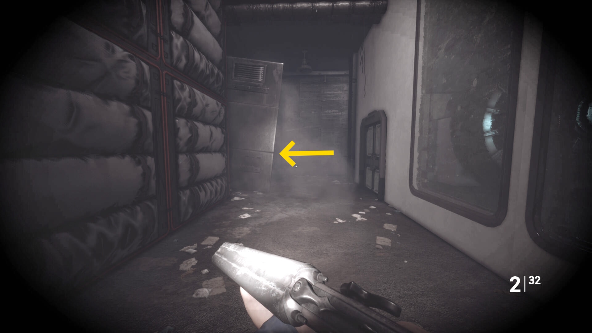 - 大きな棚が倒れて通路を塞いでいるが、暗視カメラを起動すれば通過できる