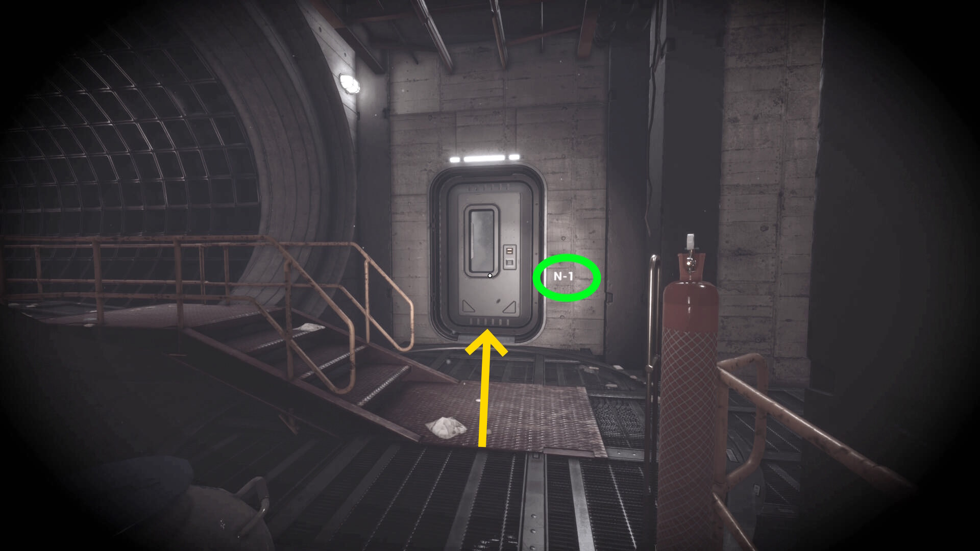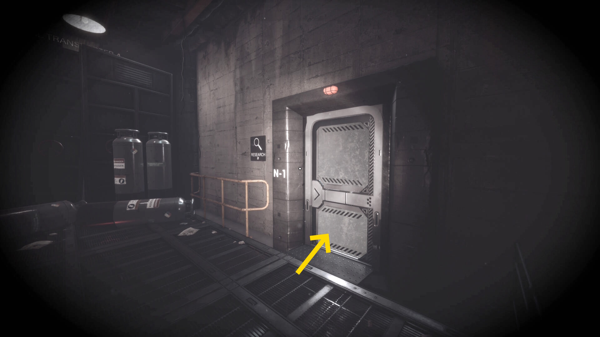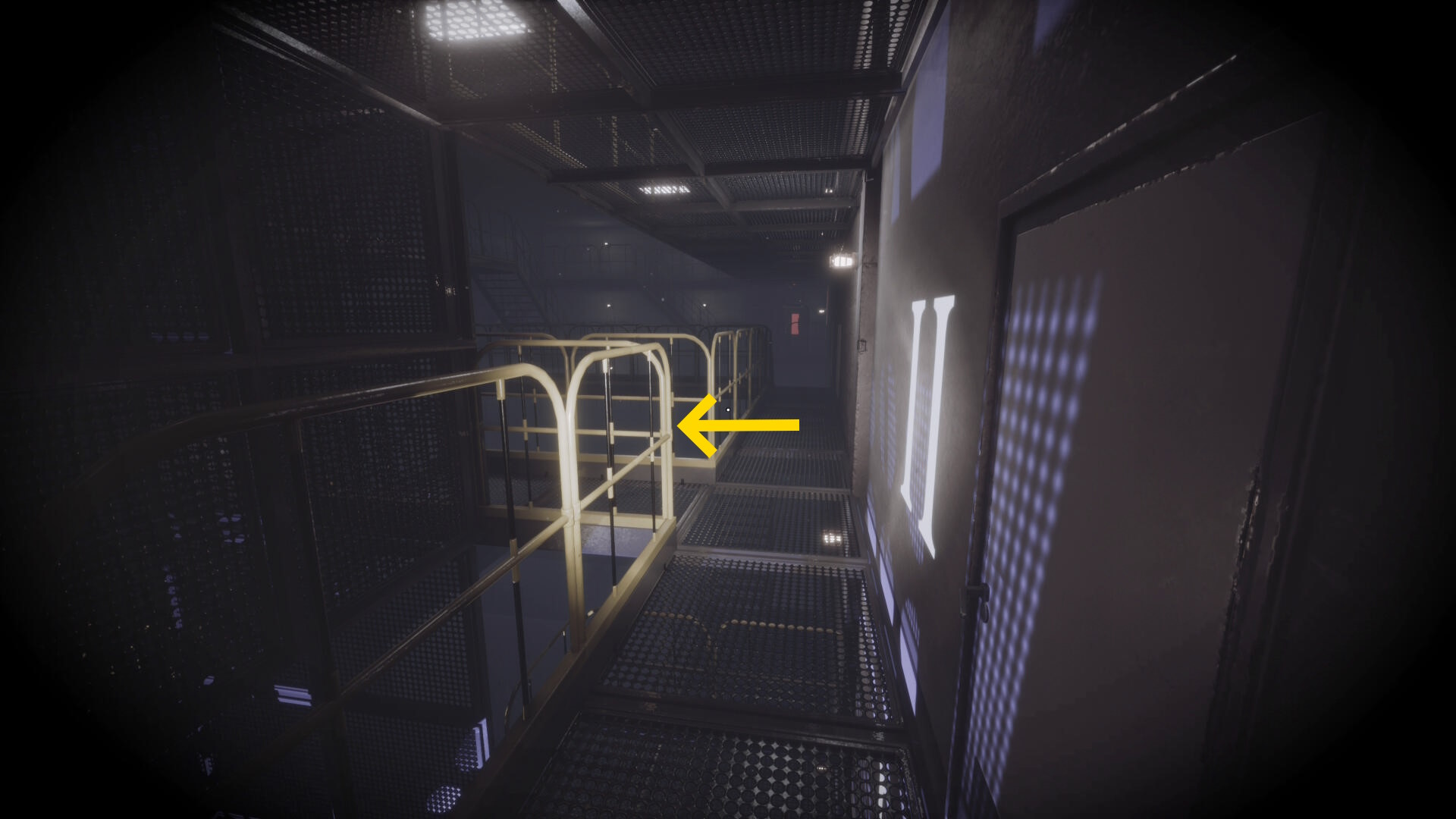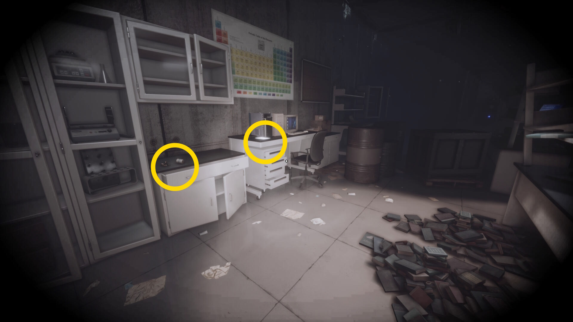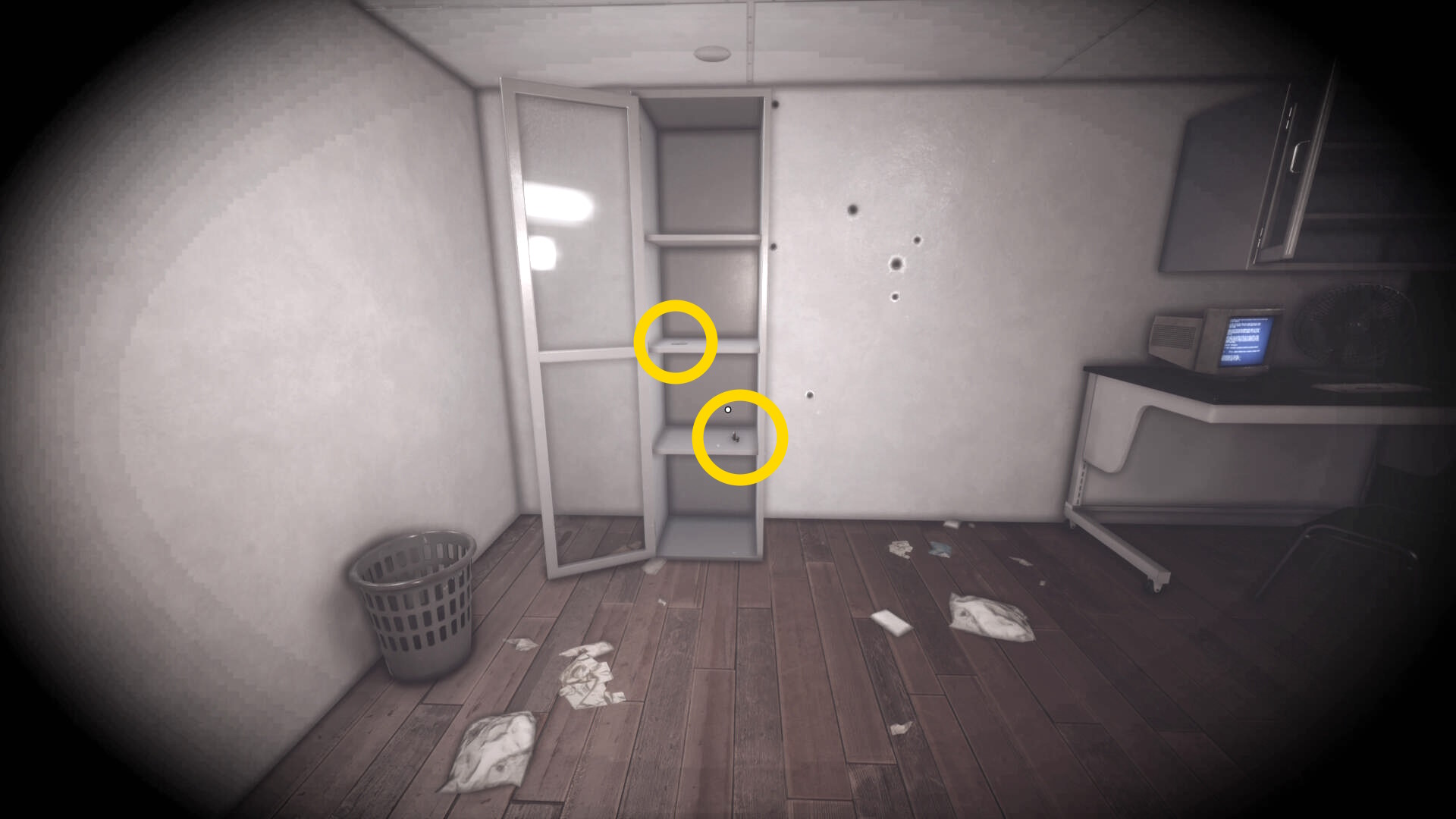 - 大きな棚が倒れて通路を塞いでいるが、暗視カメラを起動すれば通過できる
