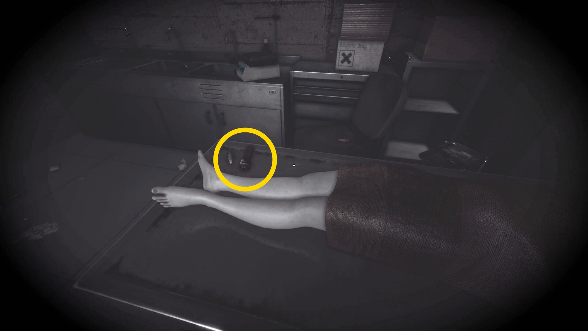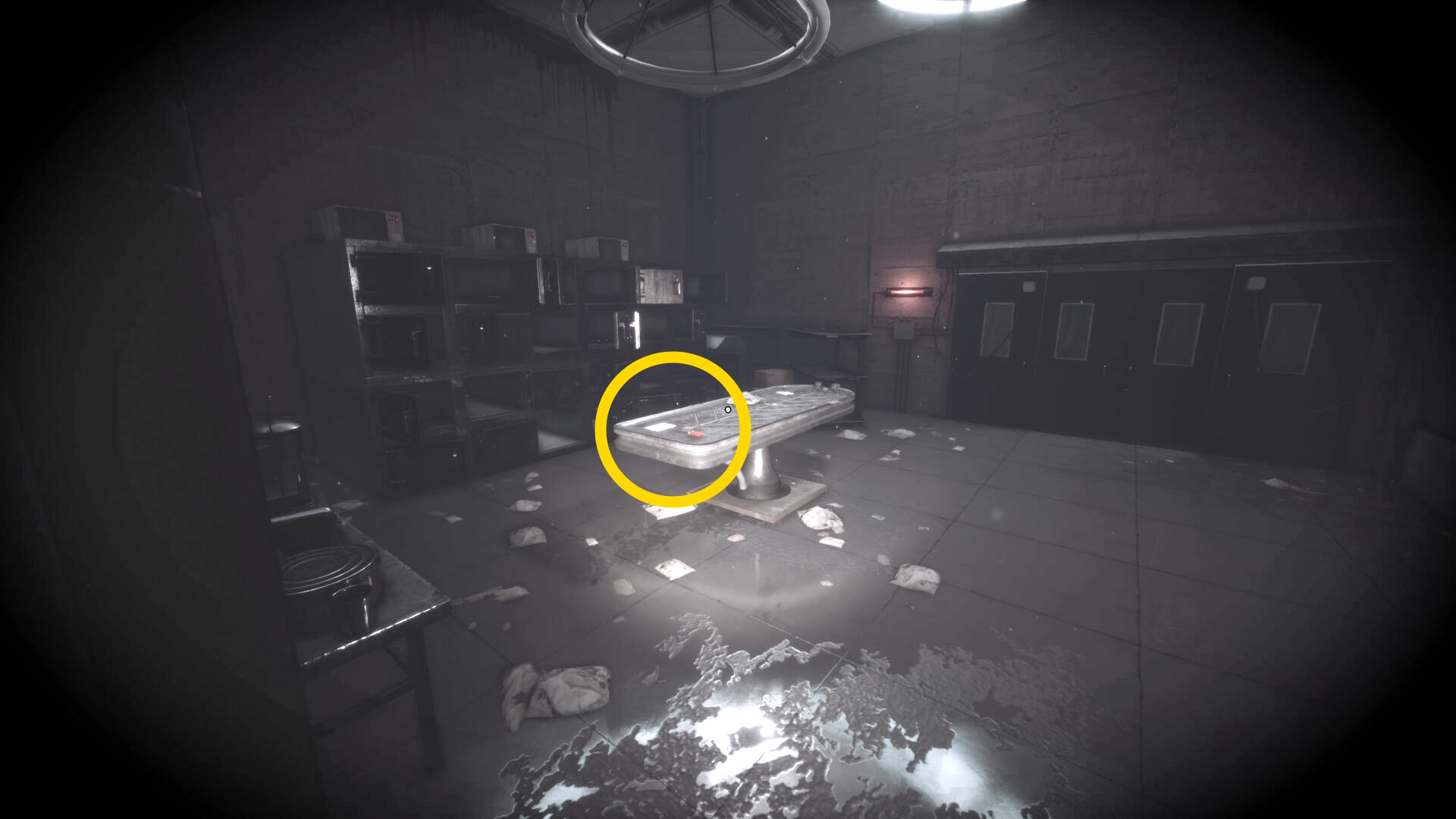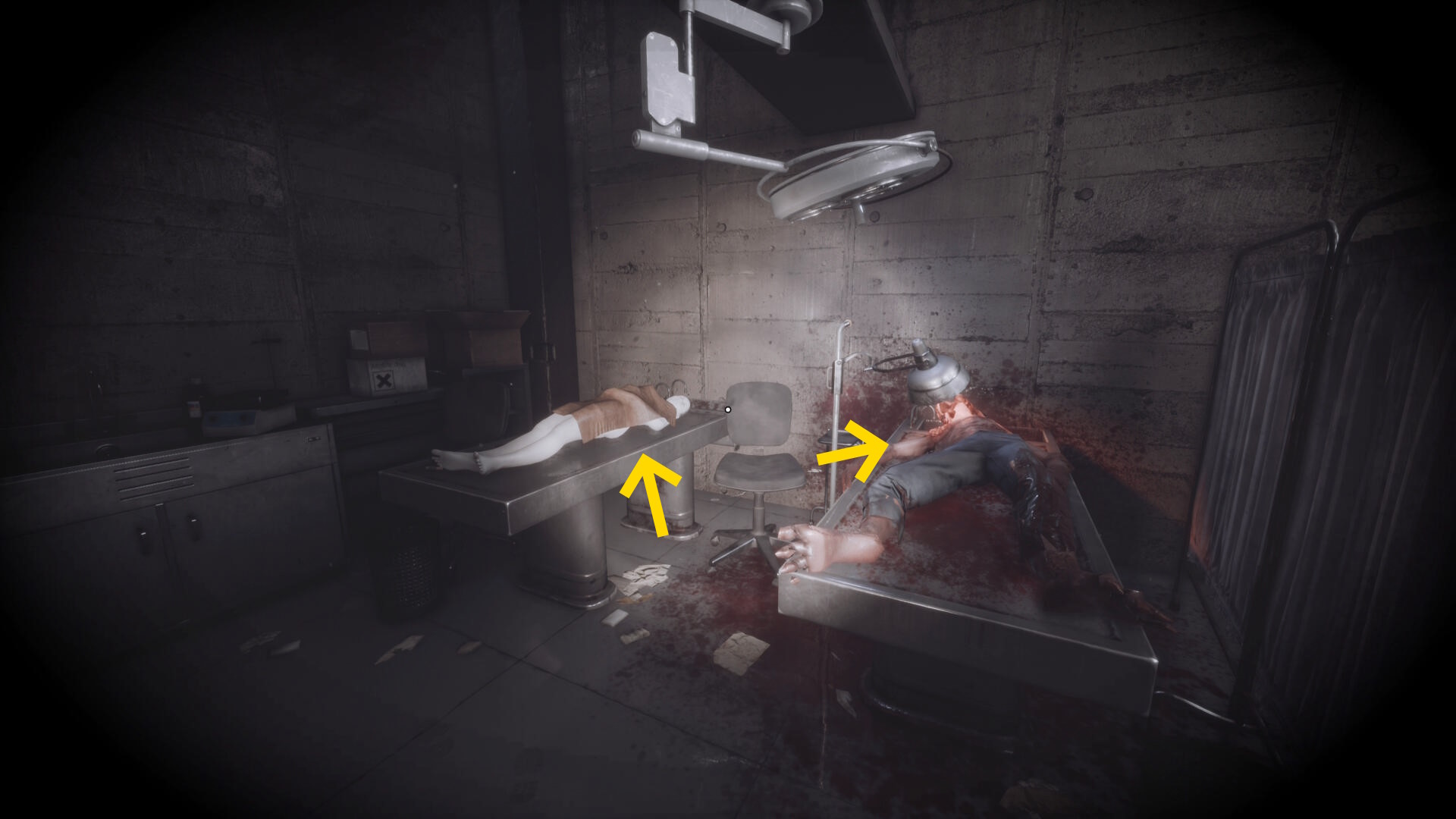 - 右の検死台の2体の死体を確認(動き出したりしないので安心して)