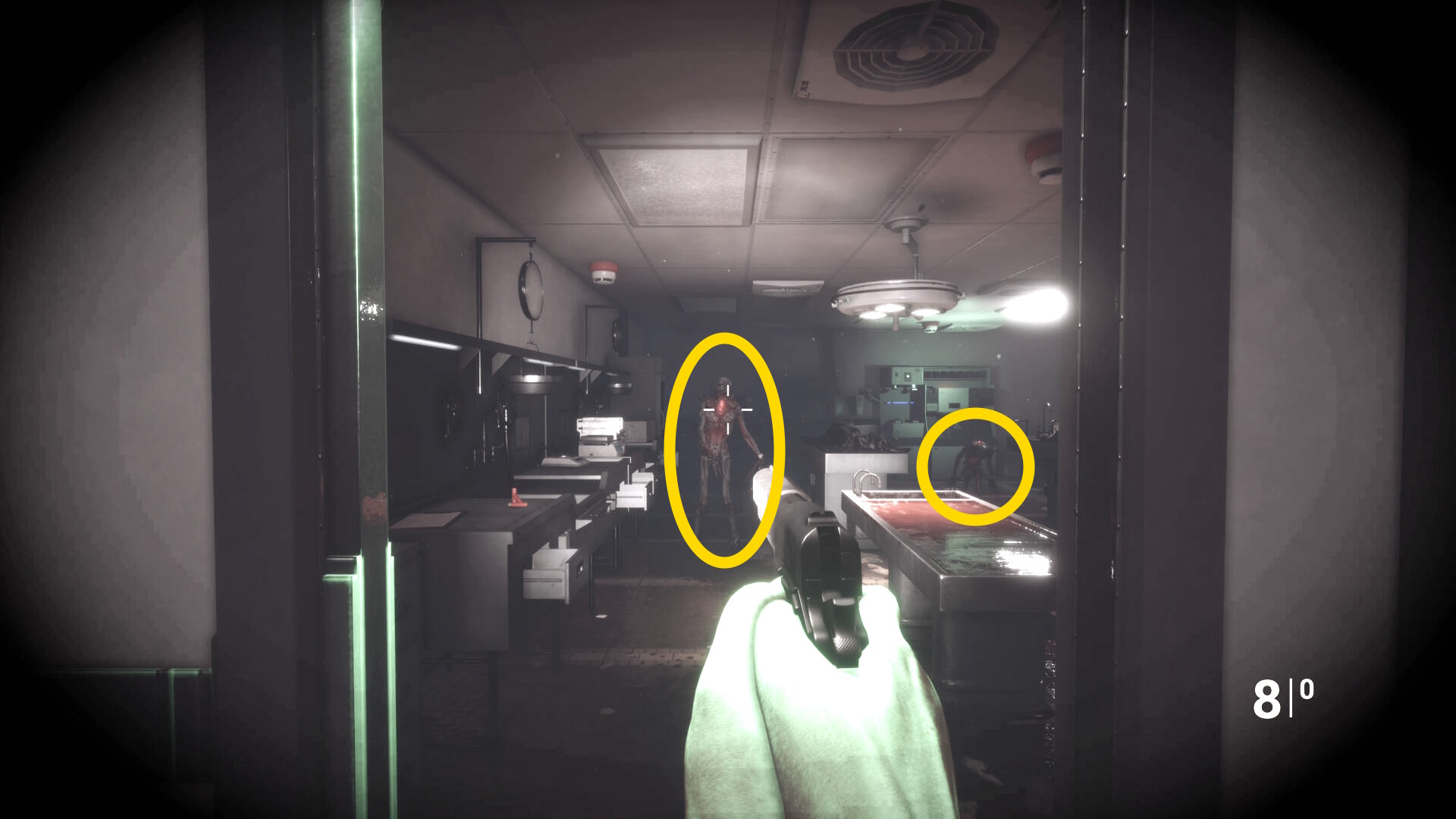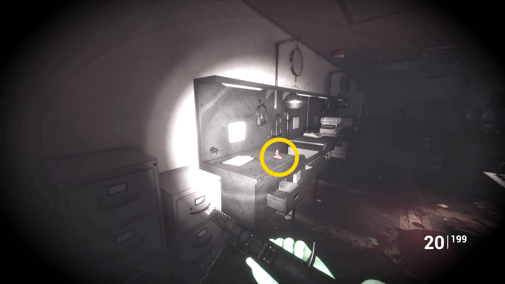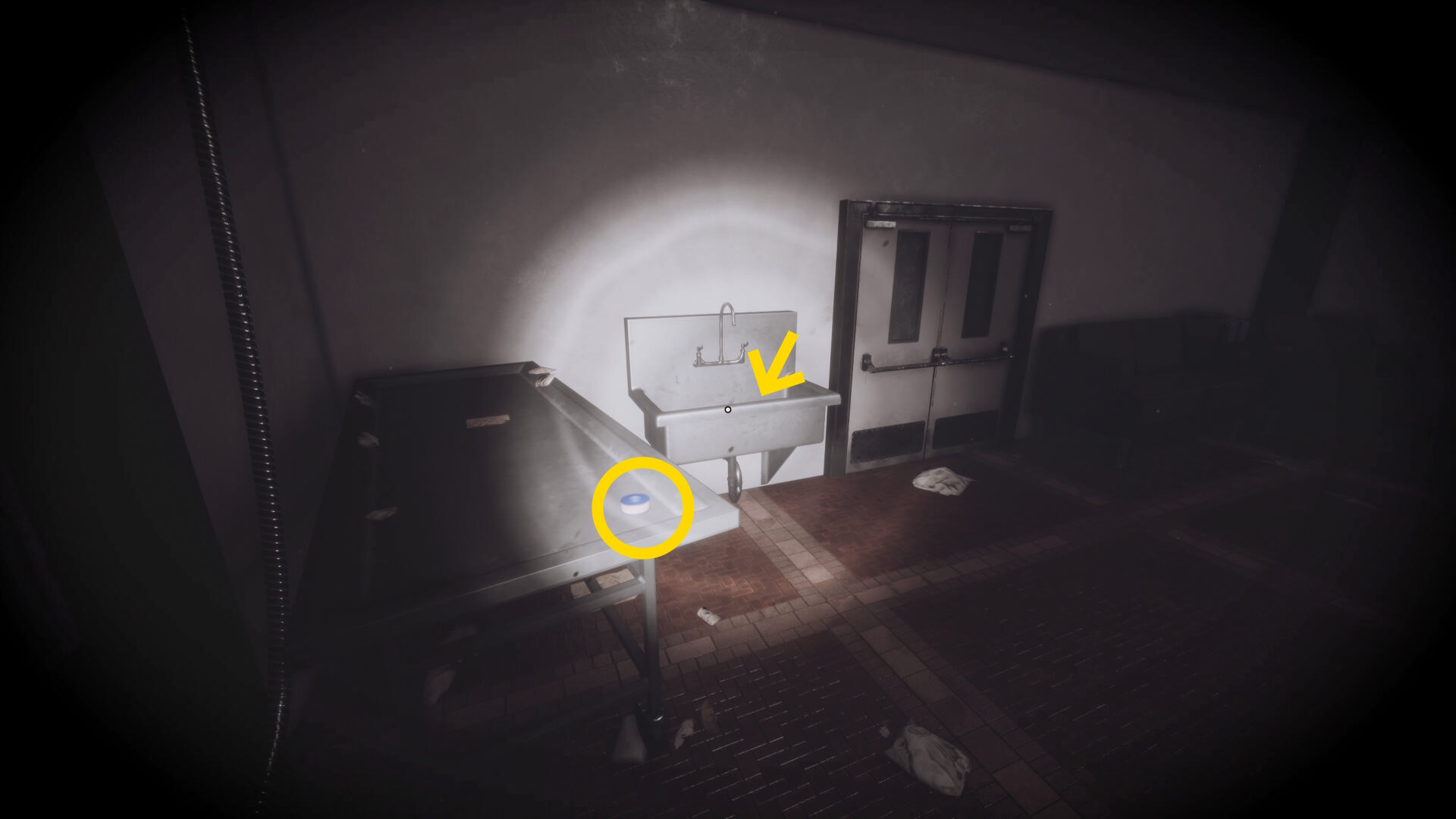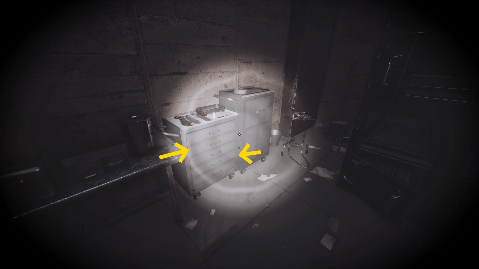 - 右の検死台の2体の死体を確認(動き出したりしないので安心して)