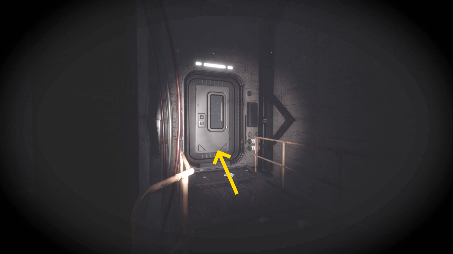 - 道なりに進んでいき、開かない両開きドアを過ぎたあとに右眼下に最後のトリガーが見えてくる