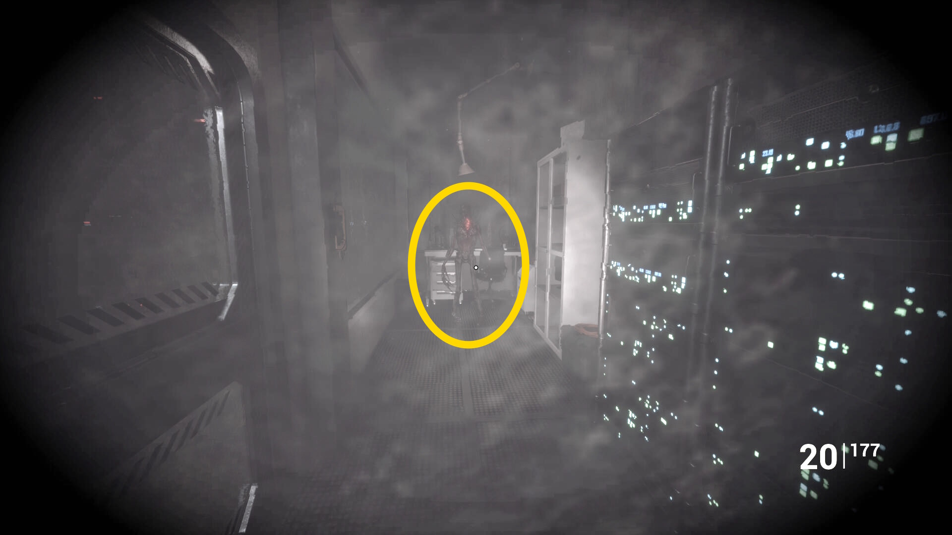 - 情報処理室に入ると正面奥に敵が1体いる(距離が離れているのでロペスには気づかないがキルしておこう)