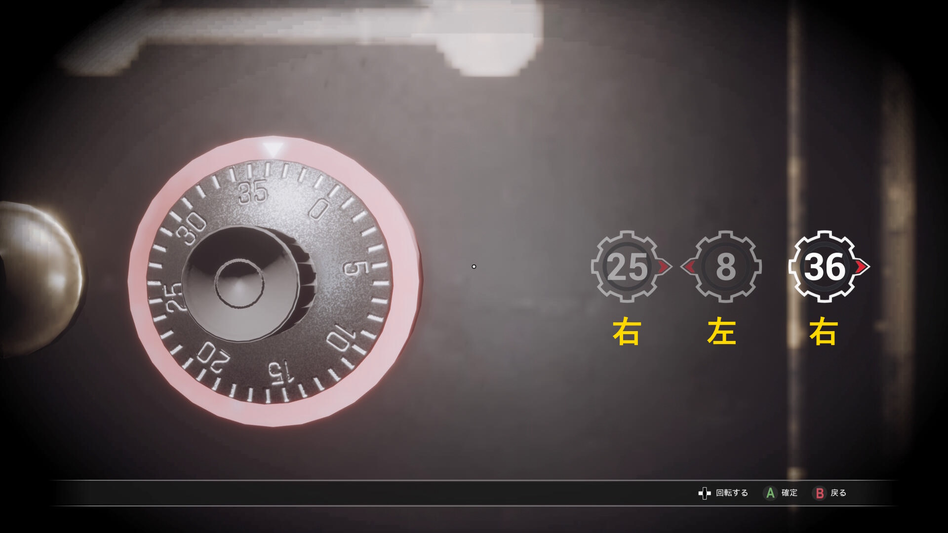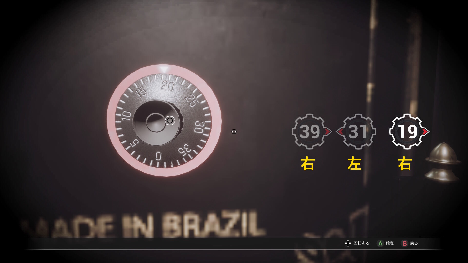 - あとは金庫のダイヤルを 39右 ⇒ 31左 ⇒ 19右 と回転させれば解錠