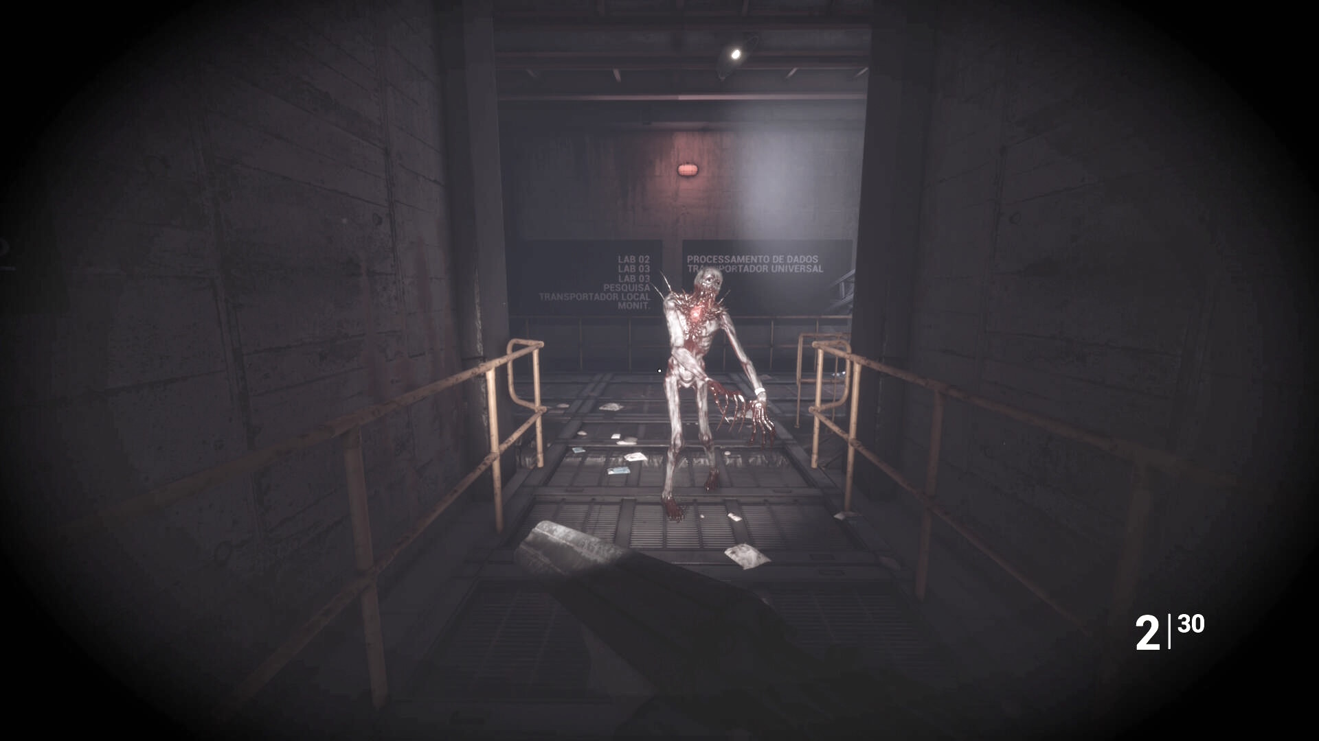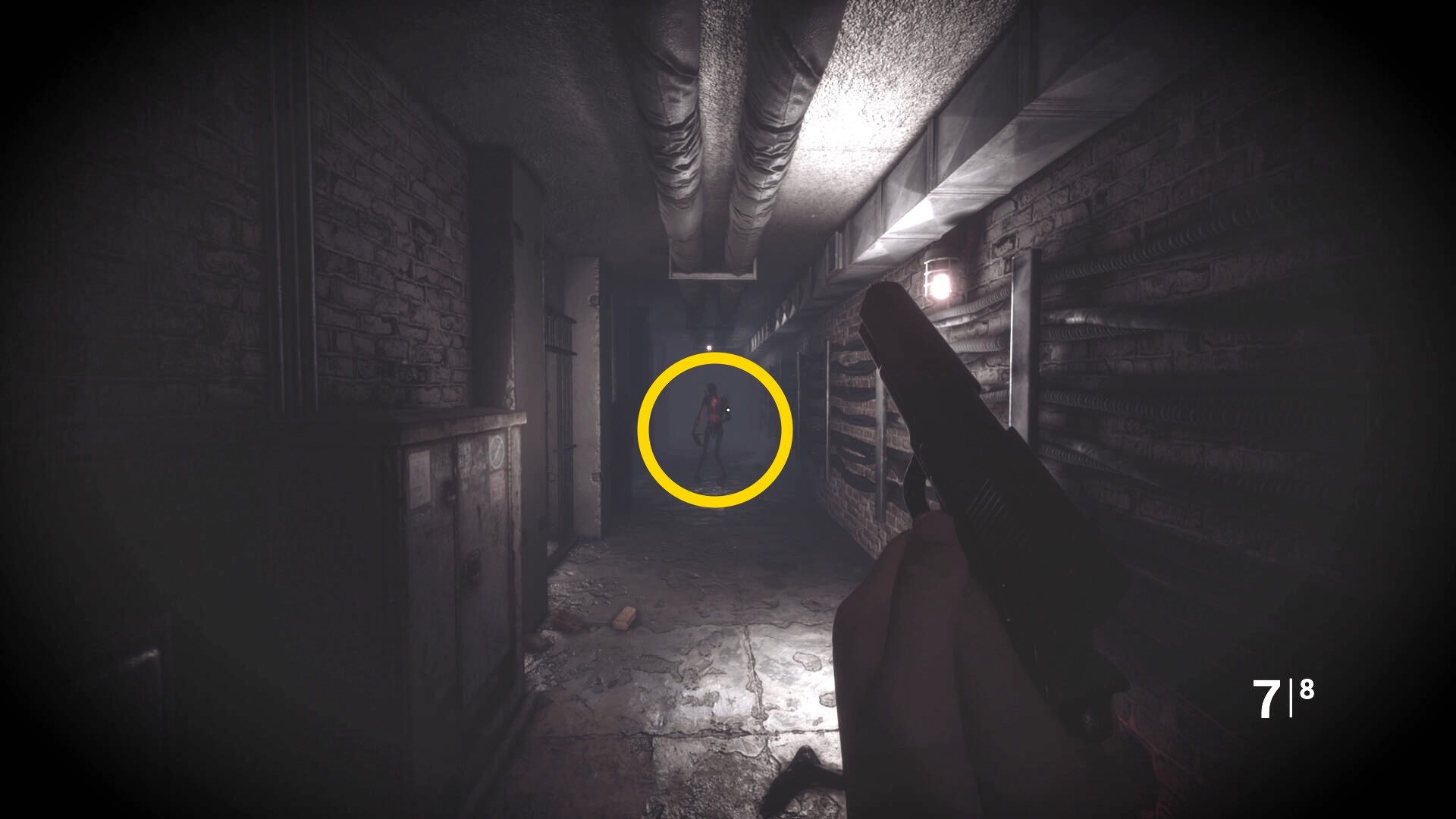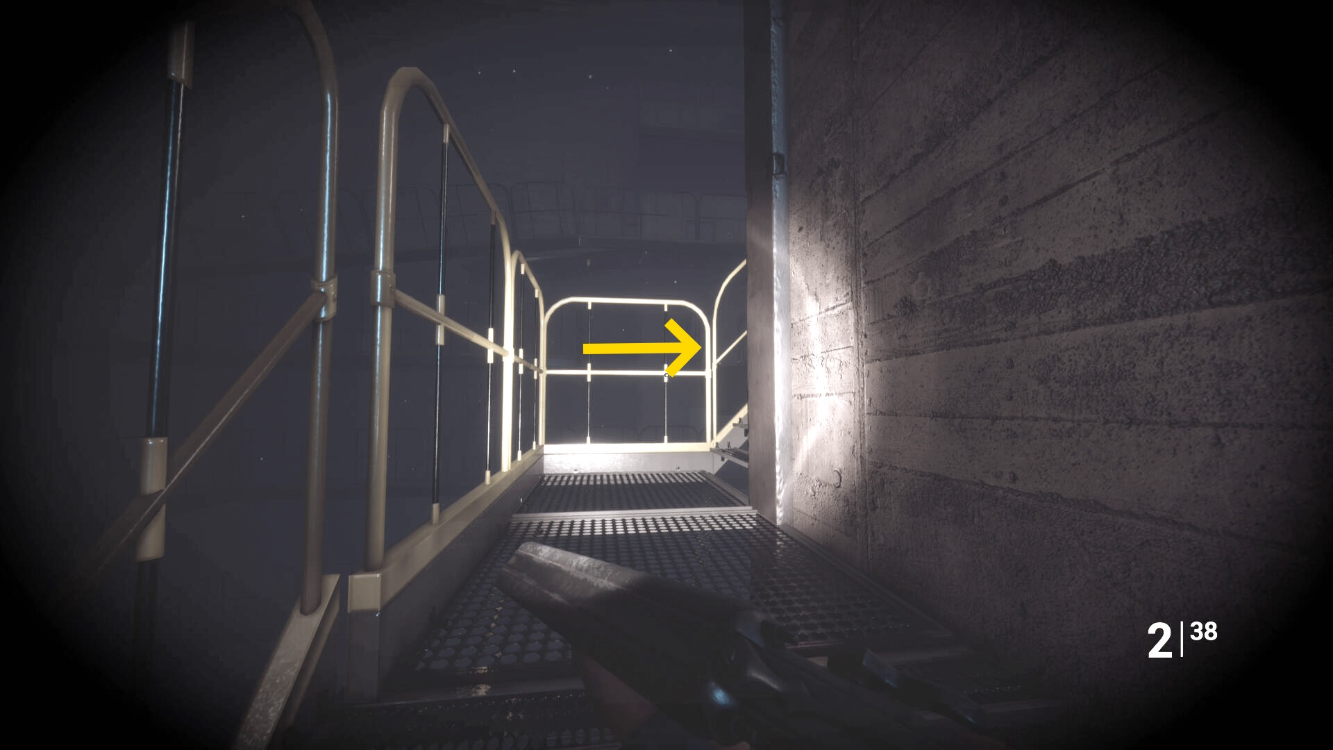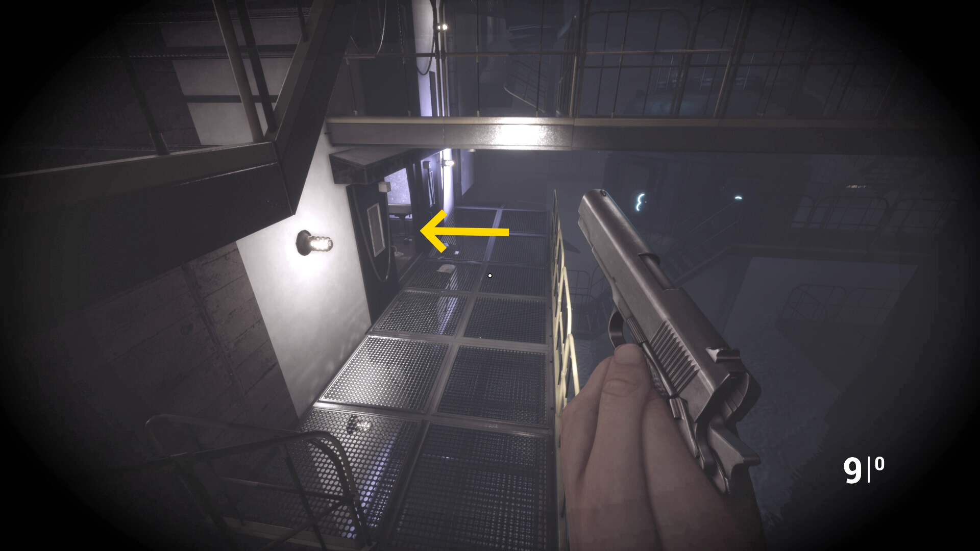 - さらに奥の階段を登るが、右に曲がったところの右壁にクモ型の敵がいるのでショットガンでエイムしたまま曲がってキルすることを推奨