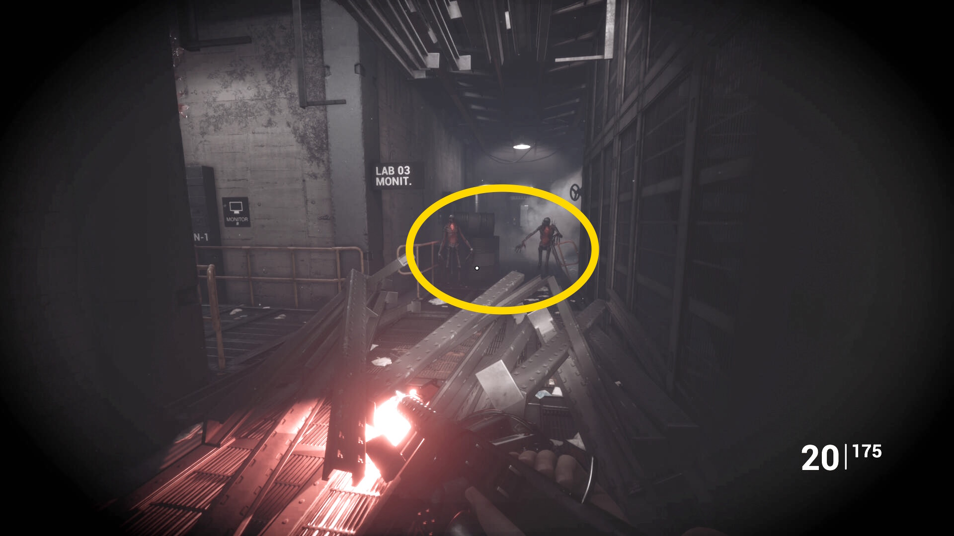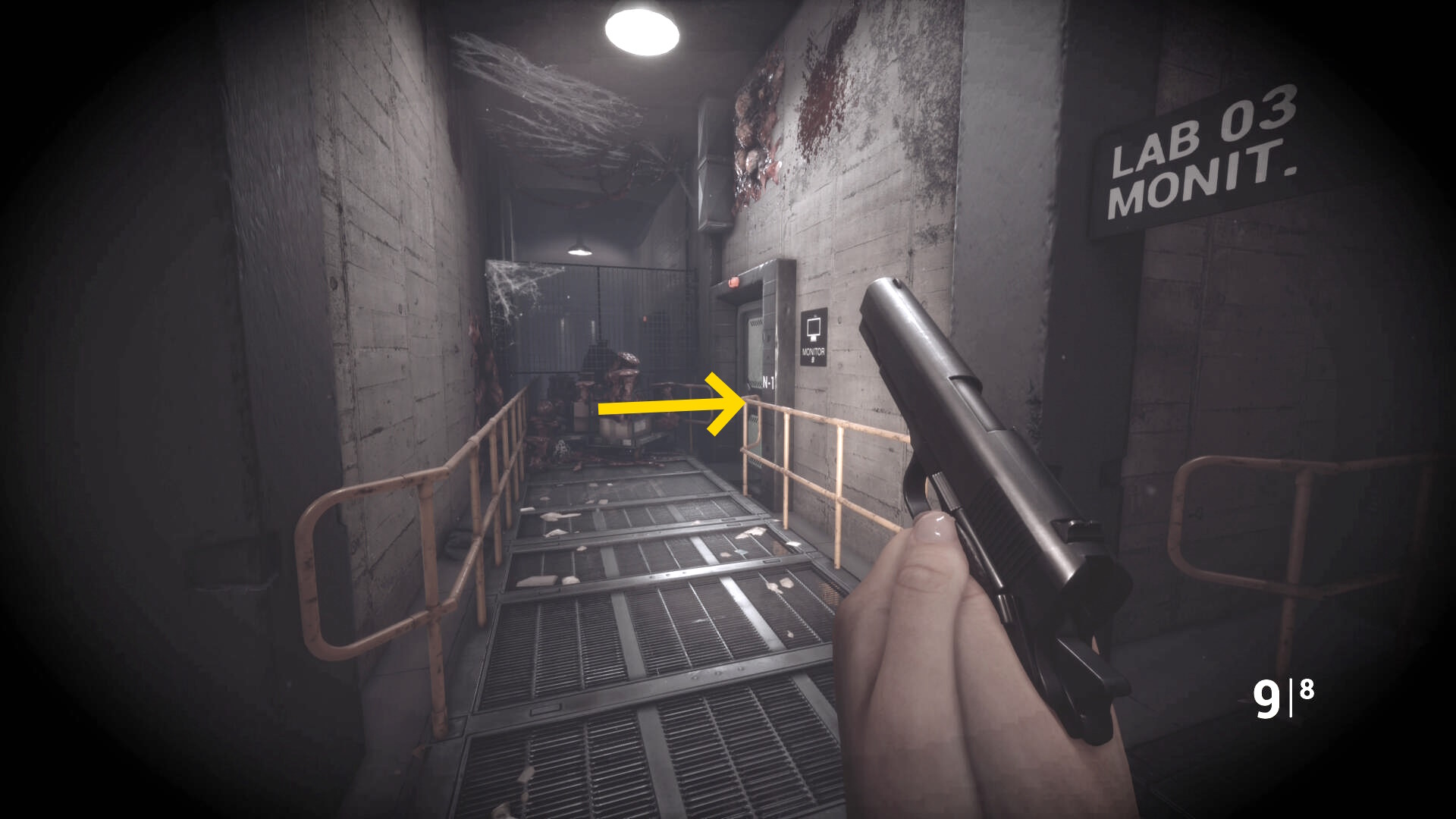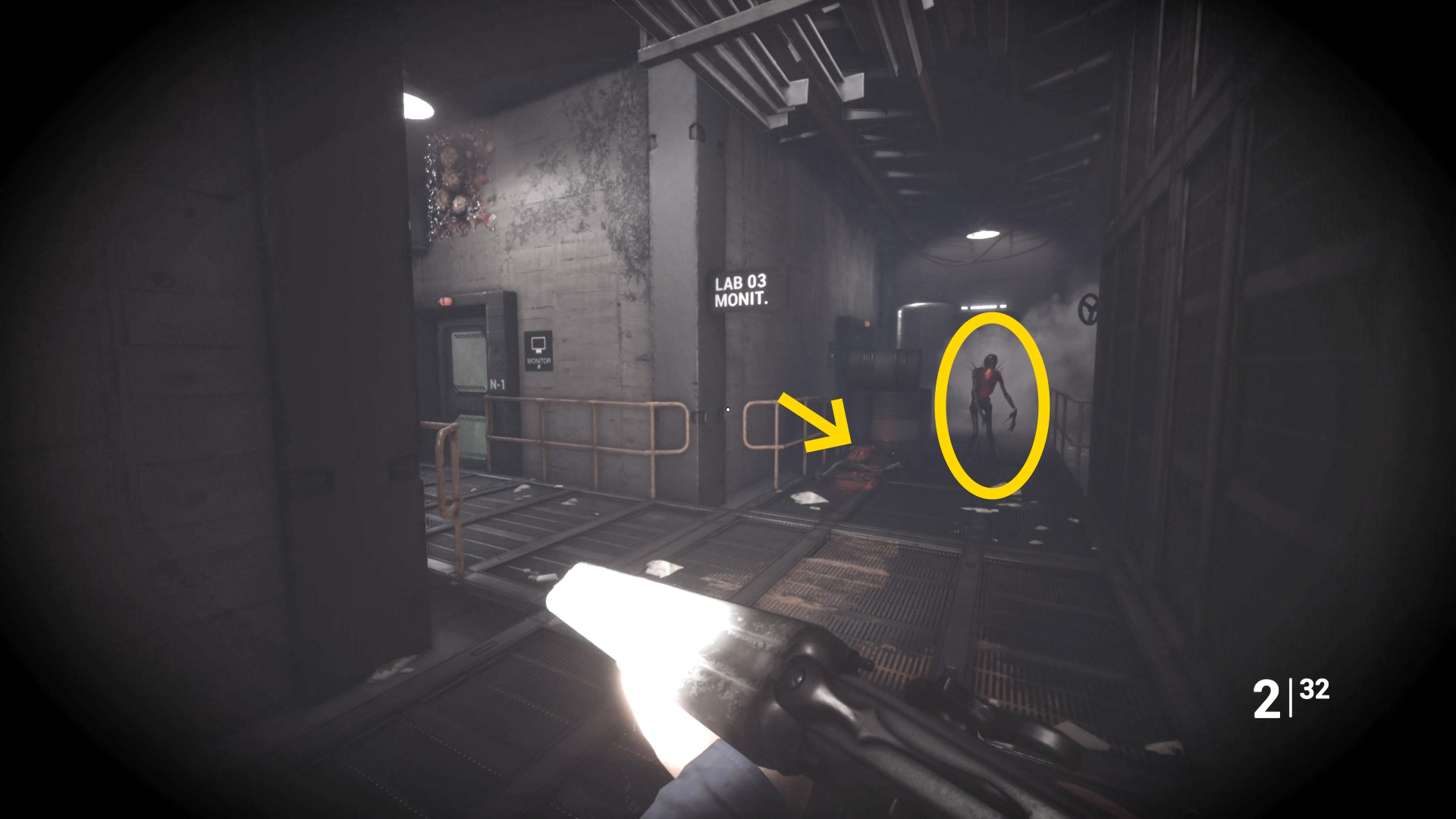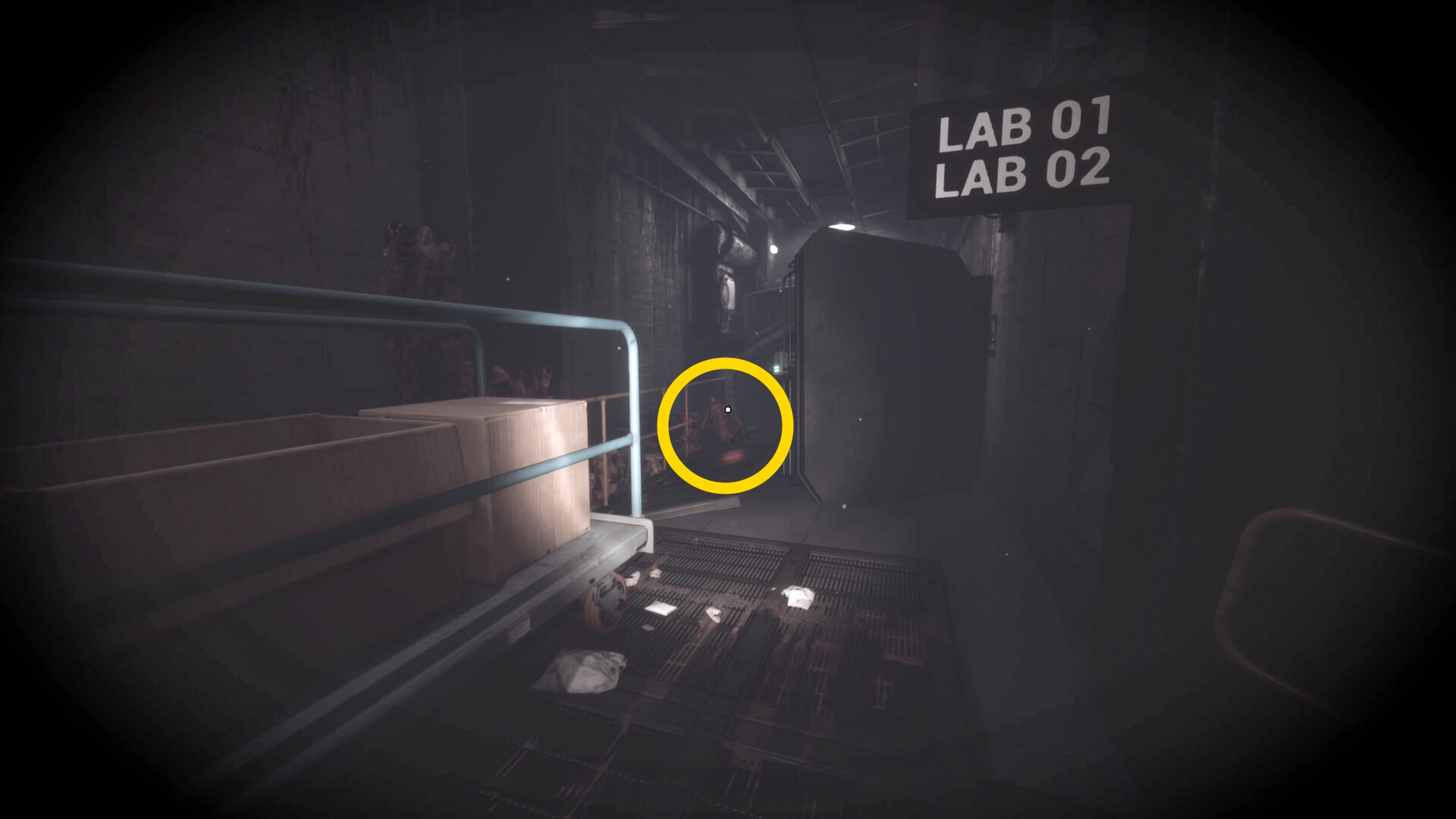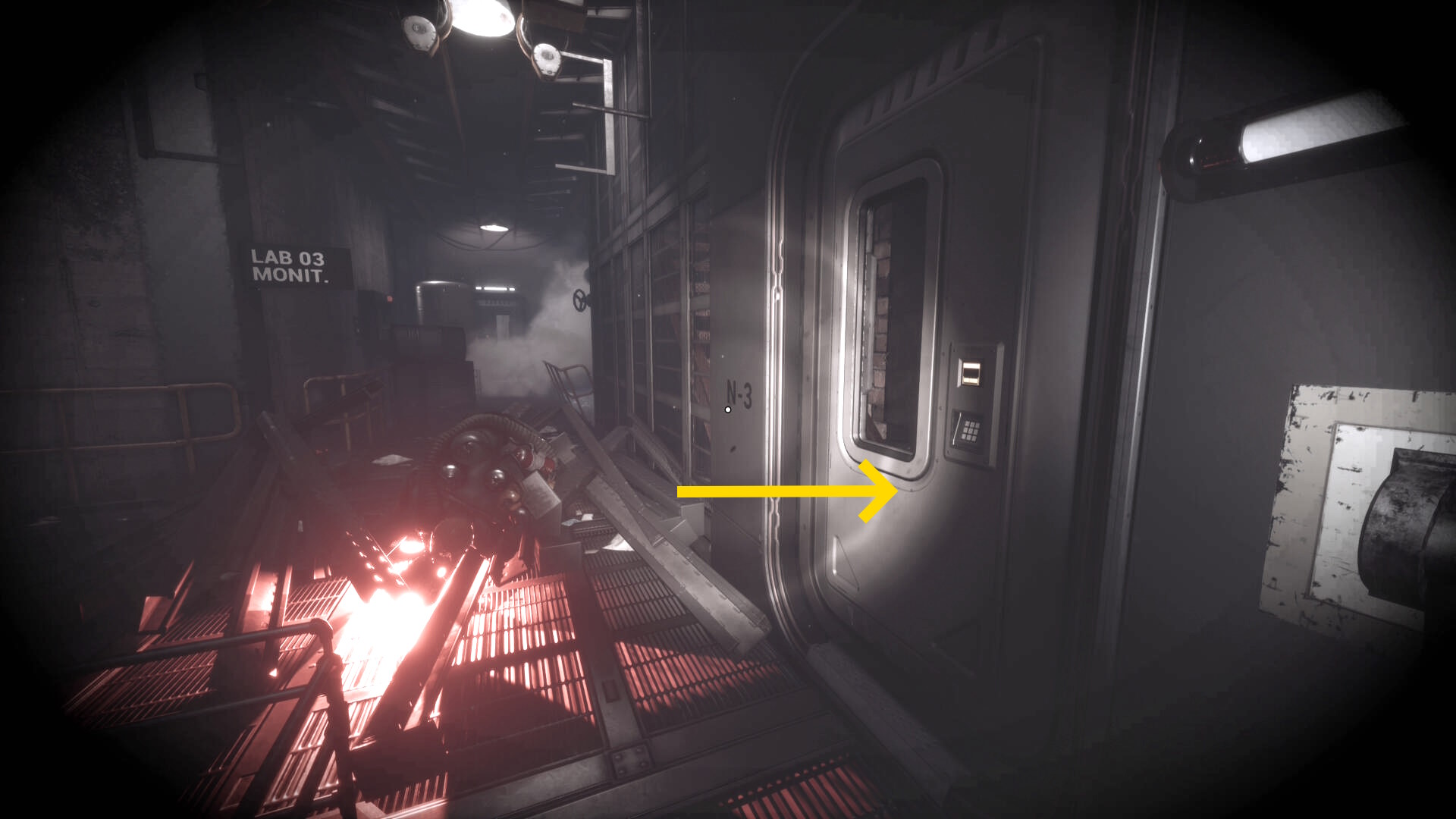 - クモ型の敵をキルしたら右奥の Lab03 のドアを開けて入る(以降、Lab 03 を研究所03と呼ぶ)