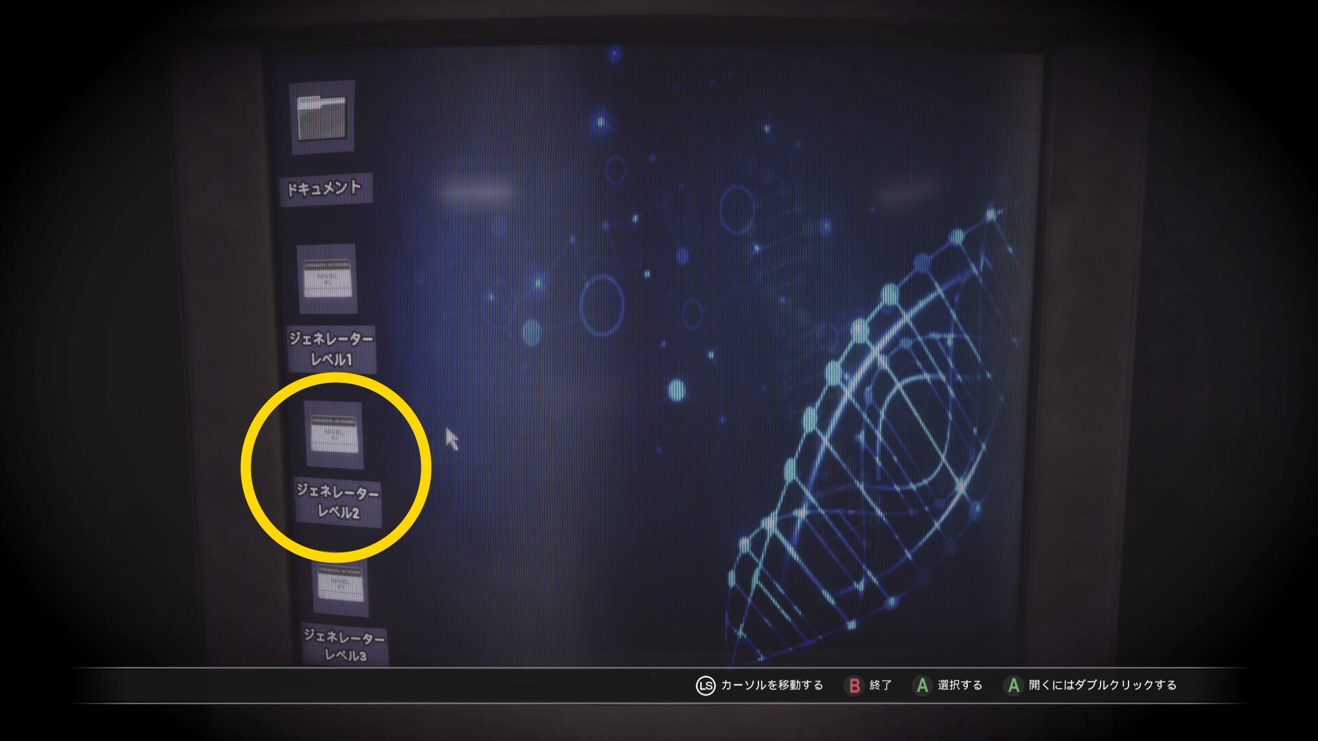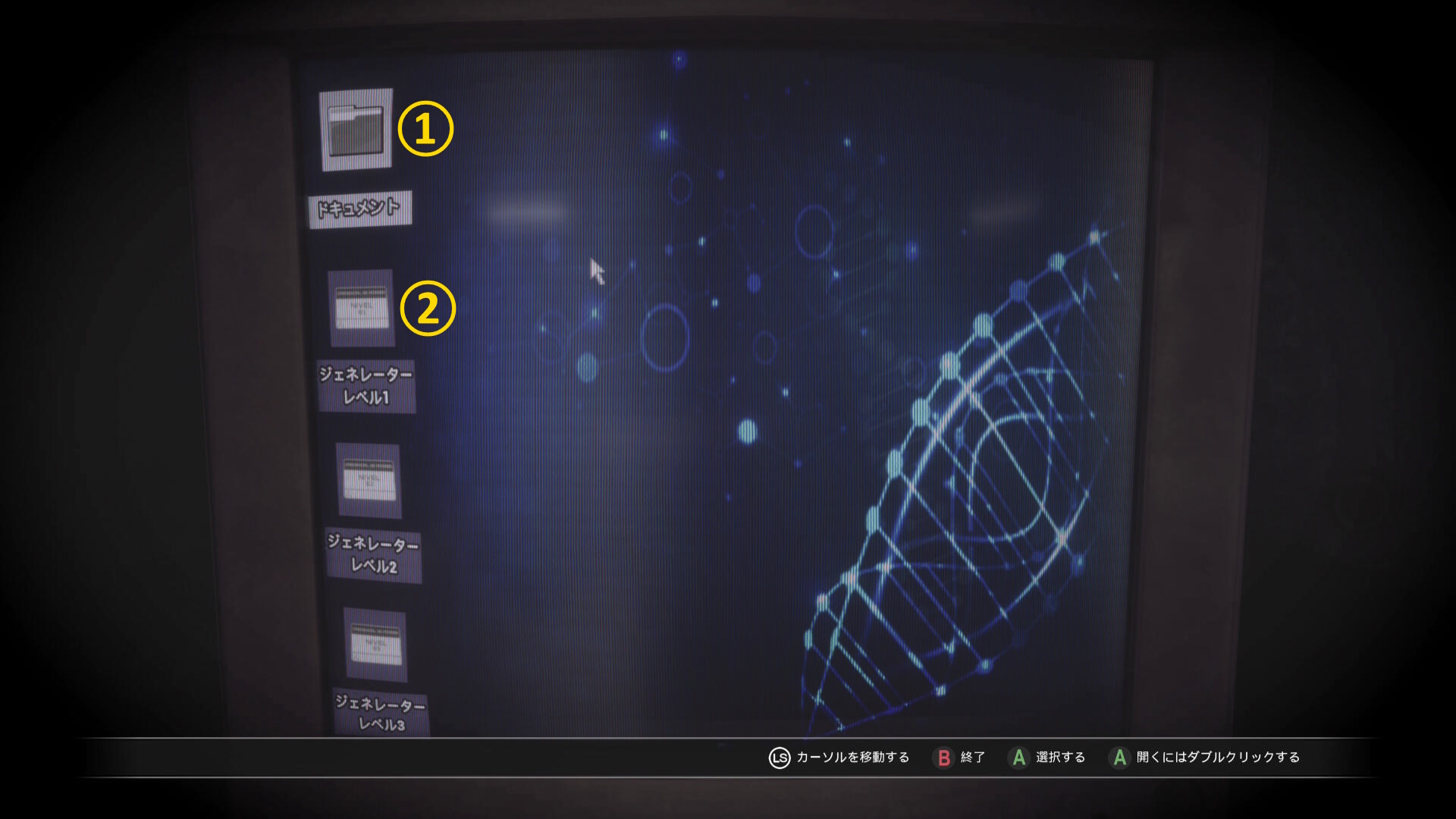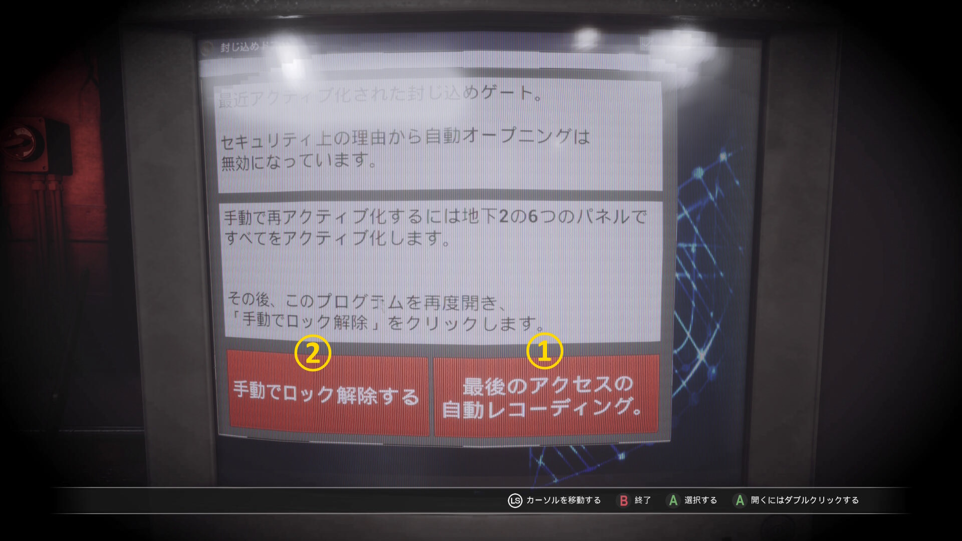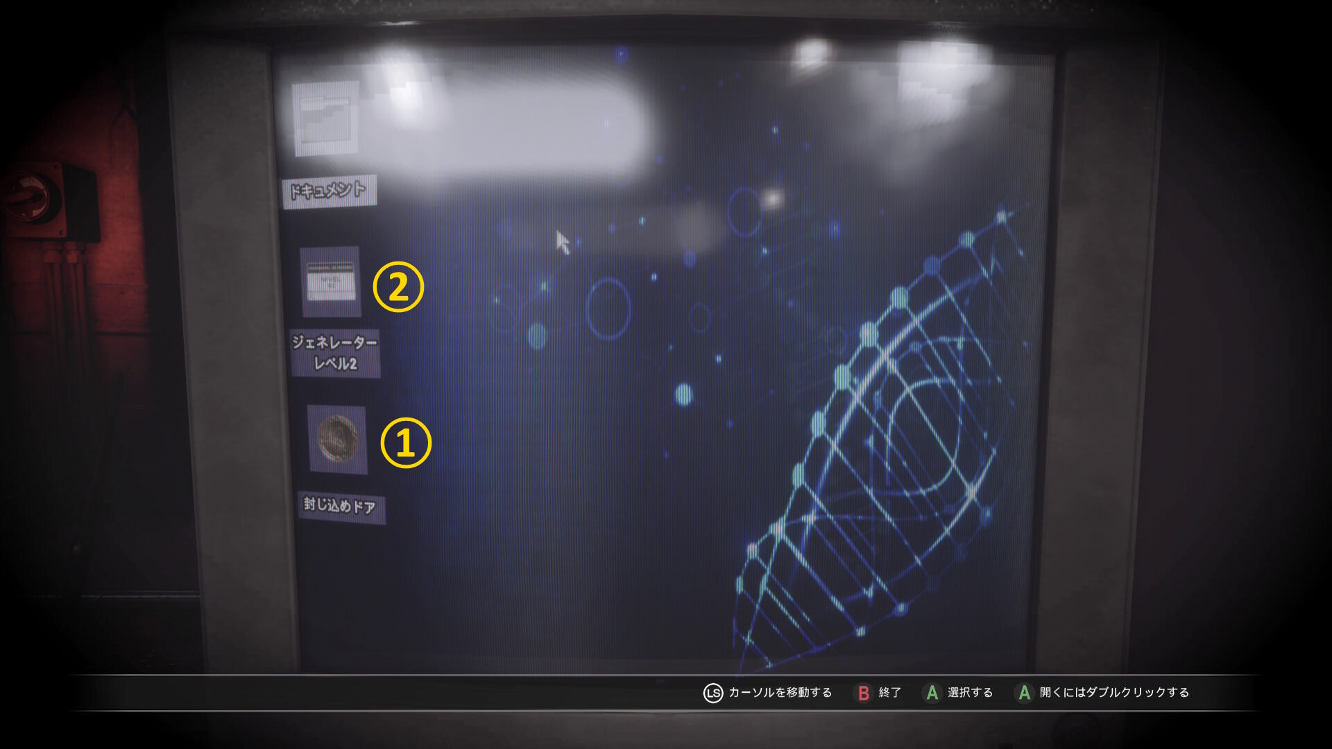 - カットシーン後、モニターを調べ一旦画面を閉じ、もう一度「封じ込めドアフォルダ」を開く