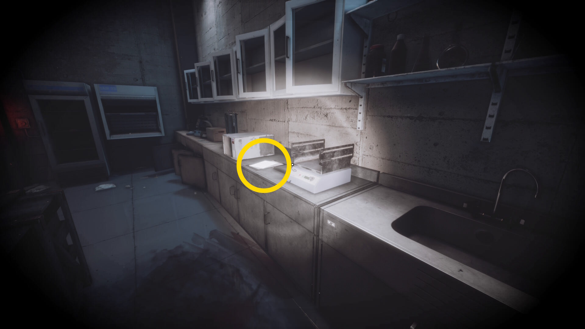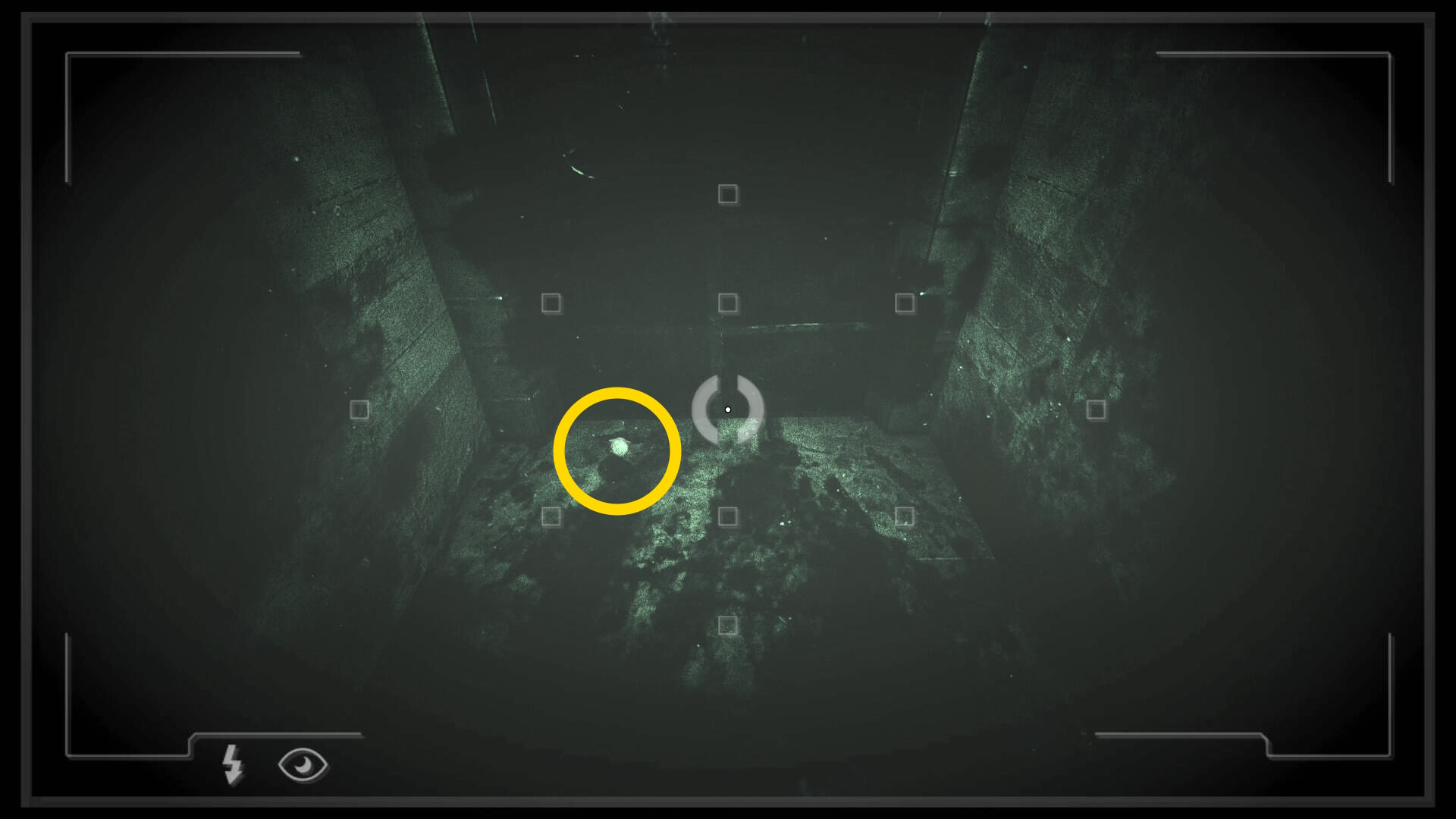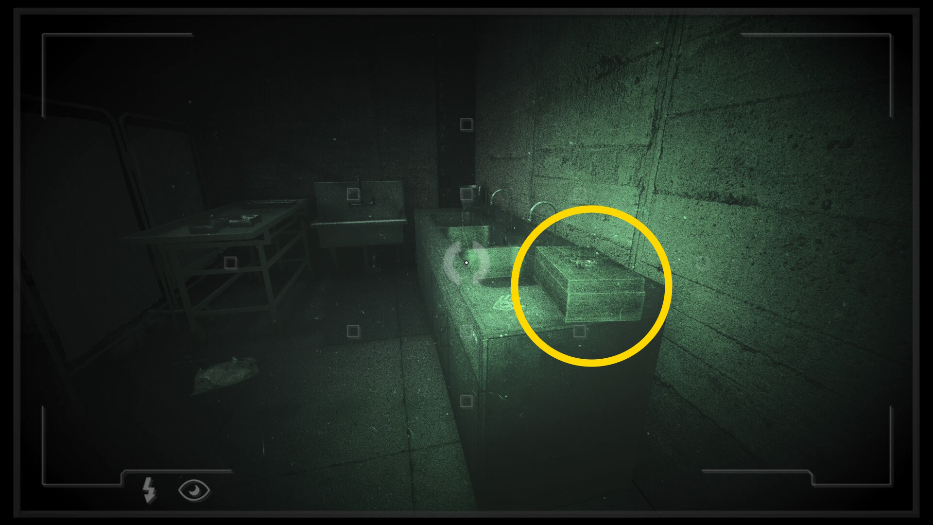 - ドアを通過したら暗視カメラを起動すると目の前のシンクに箱が出現する