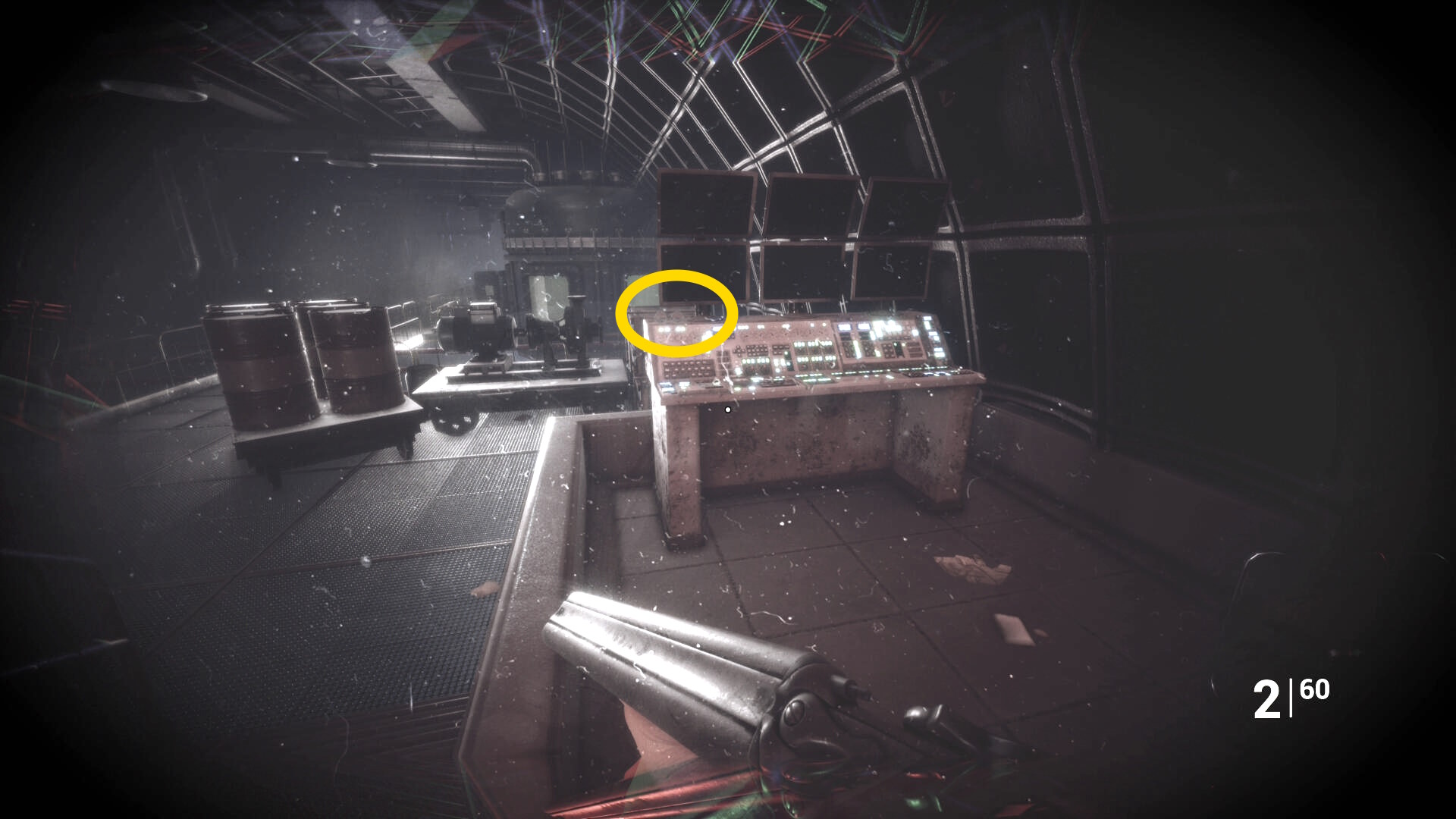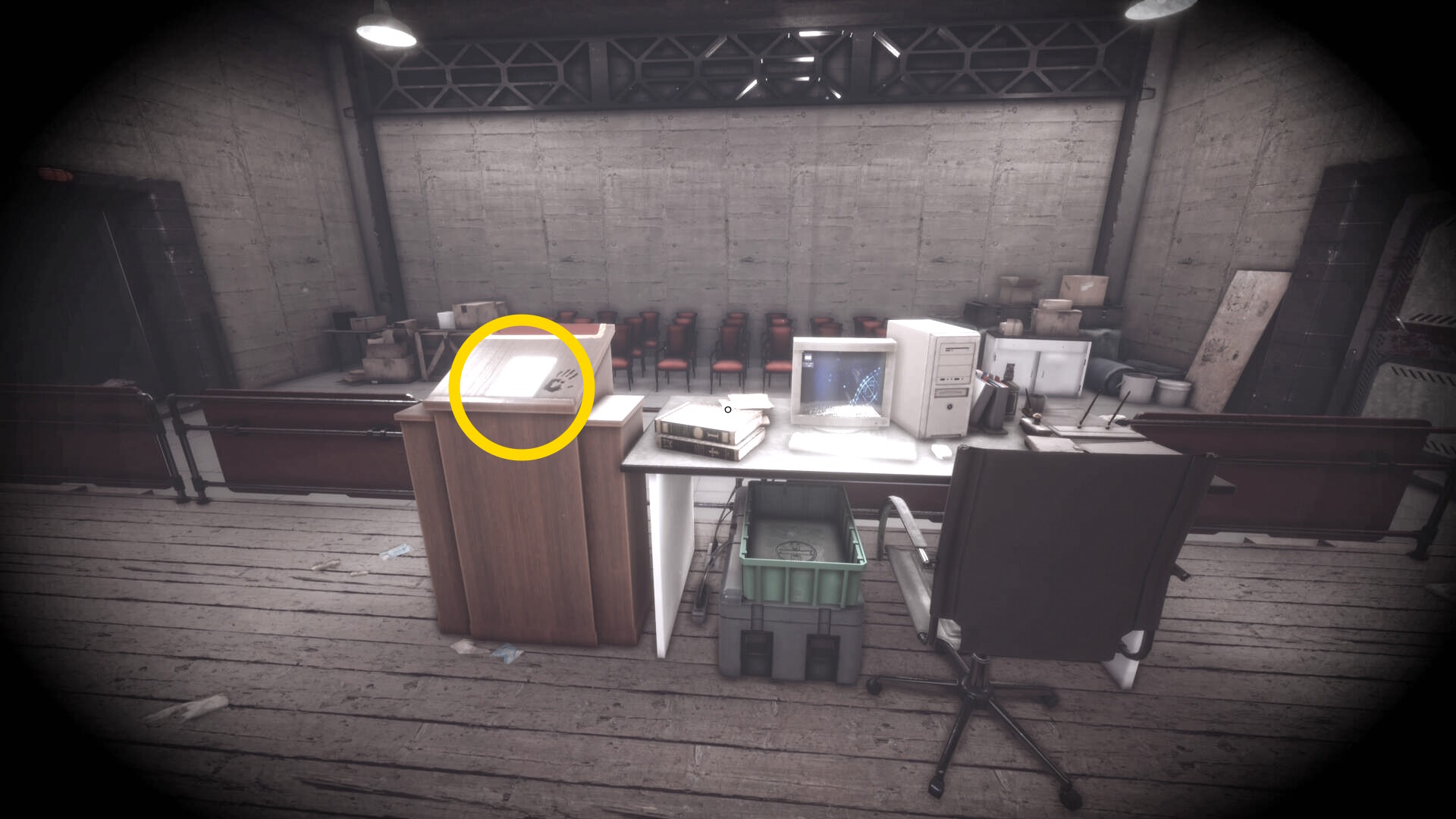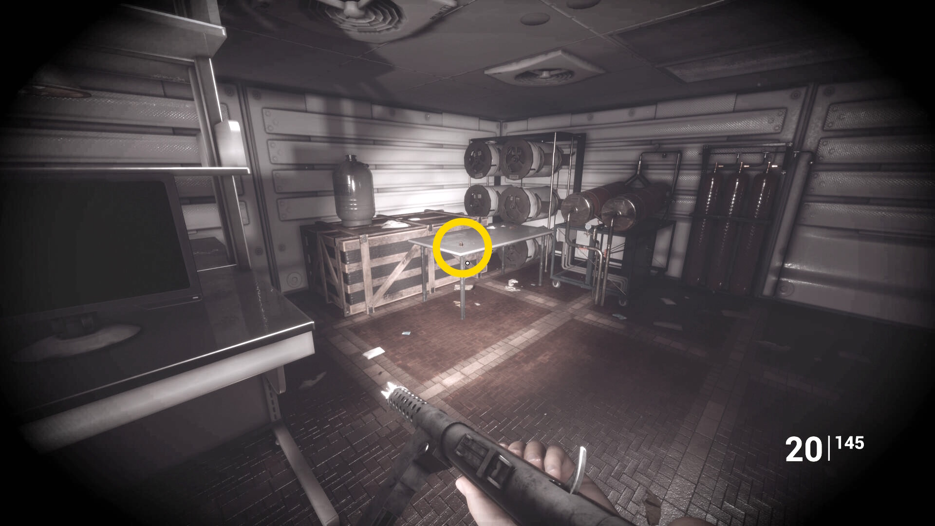 - この机の右に箱が2つあり、それぞれから マシンガン弾薬、ピストル弾薬、ショットガンシェル が回収できる