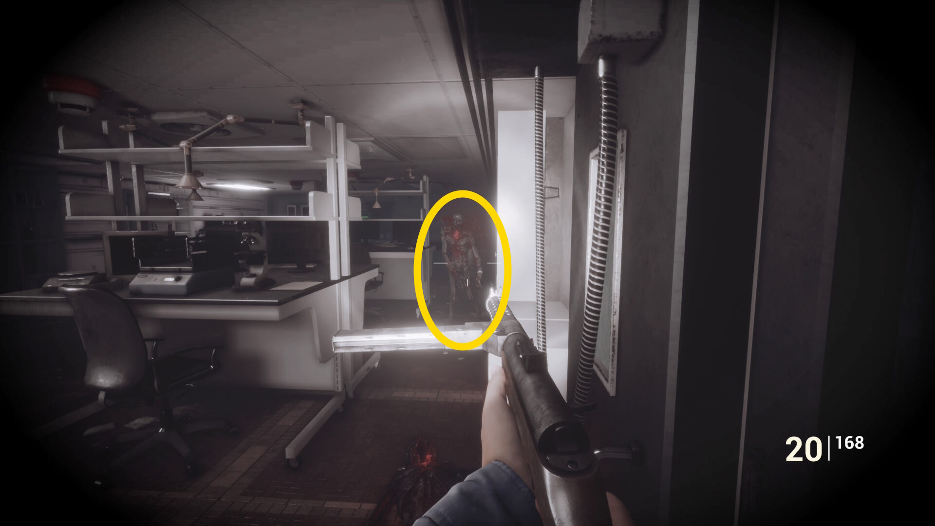 - ドアを開けて中に入るが、中には敵が1体いるのでマシンガン or ショットガンを構えて入ることを強く推奨