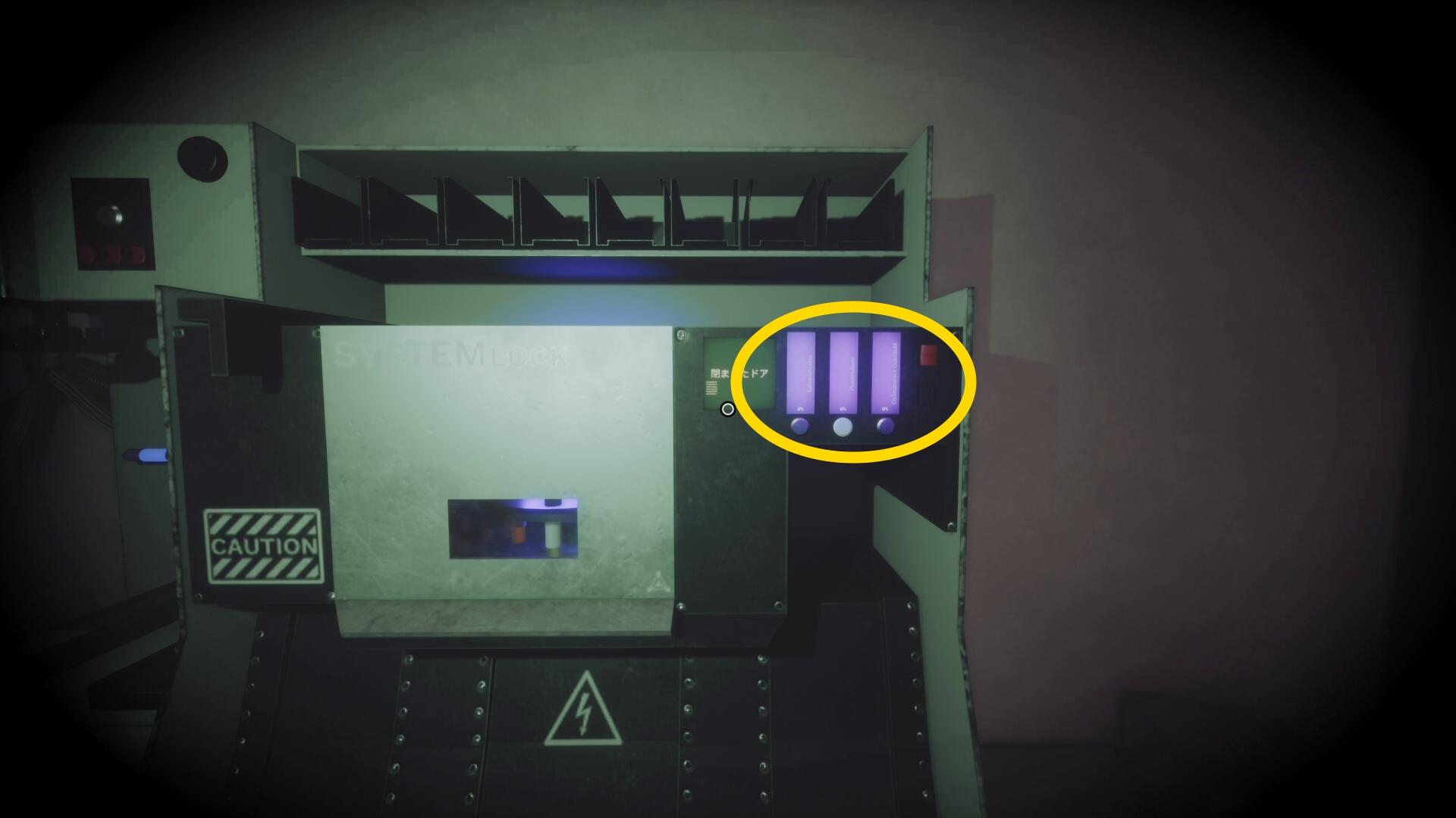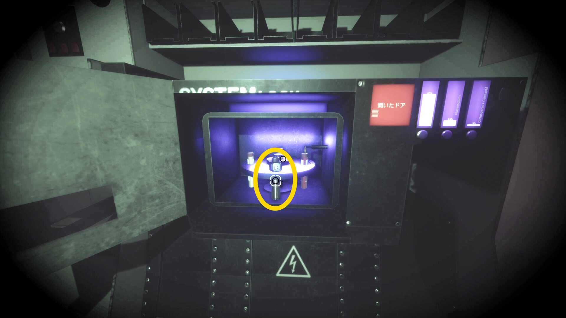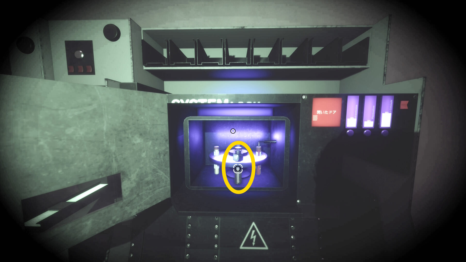 - モニターを調べ「封じ込めドア」を開き、もう一度「手動でロック解除する」を押す