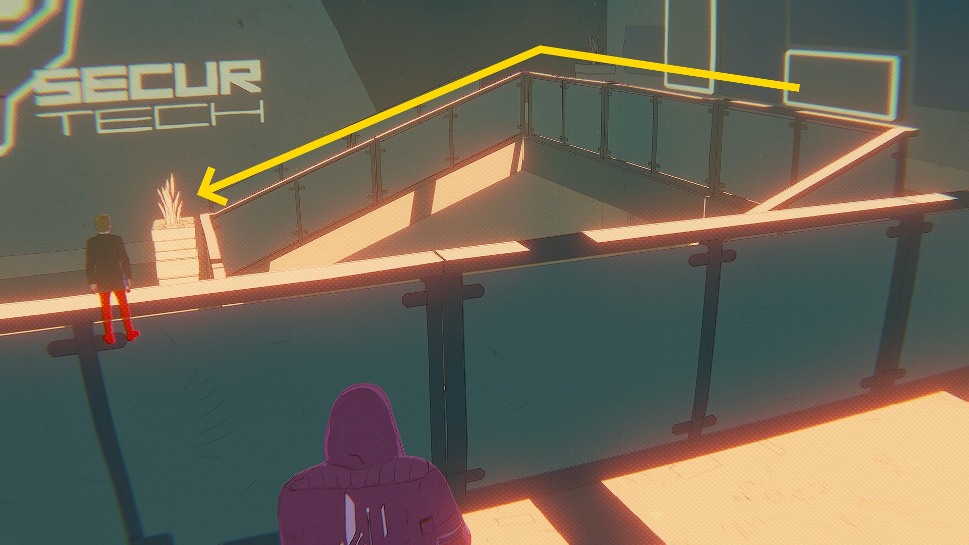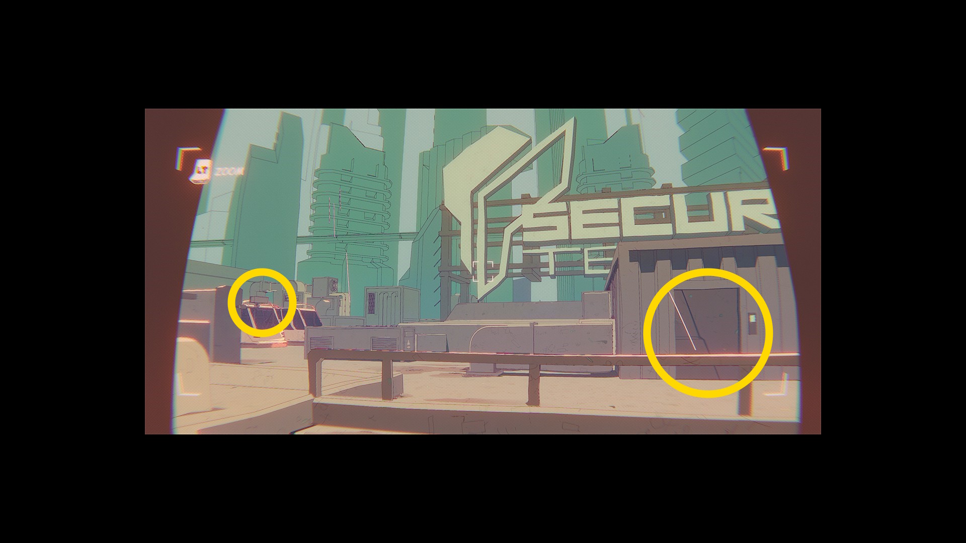 • 敵との距離が少し離れていてもインプラントハッキングは可能なため(アイコンが表示される)、植え込みのところからそれを行う