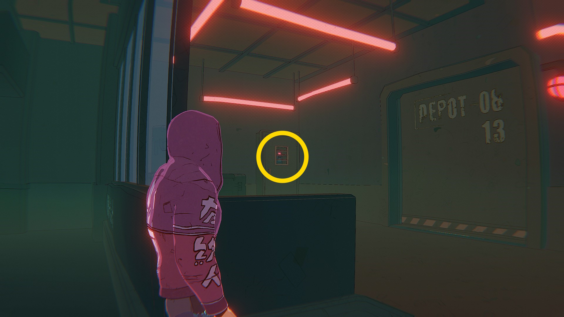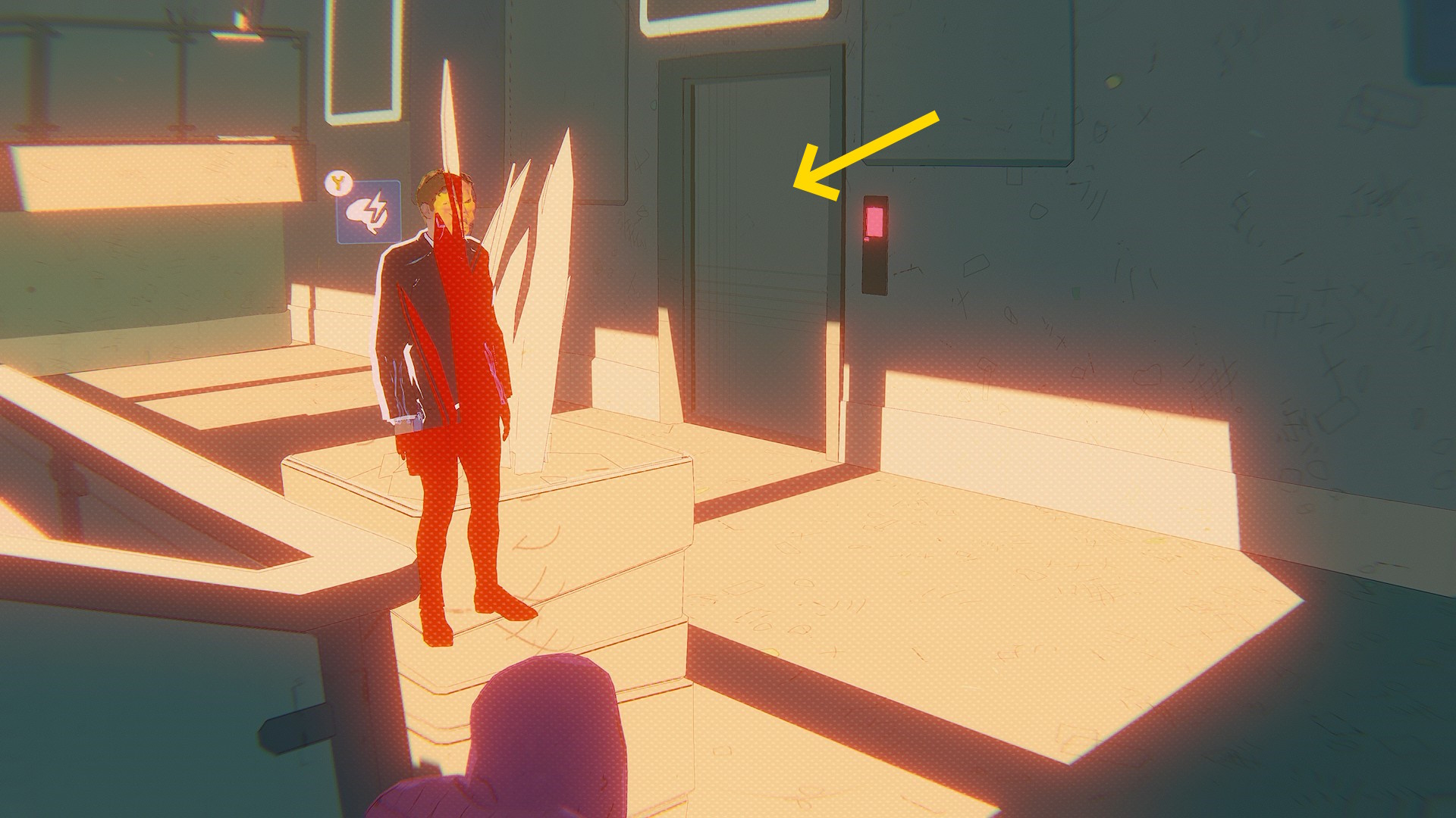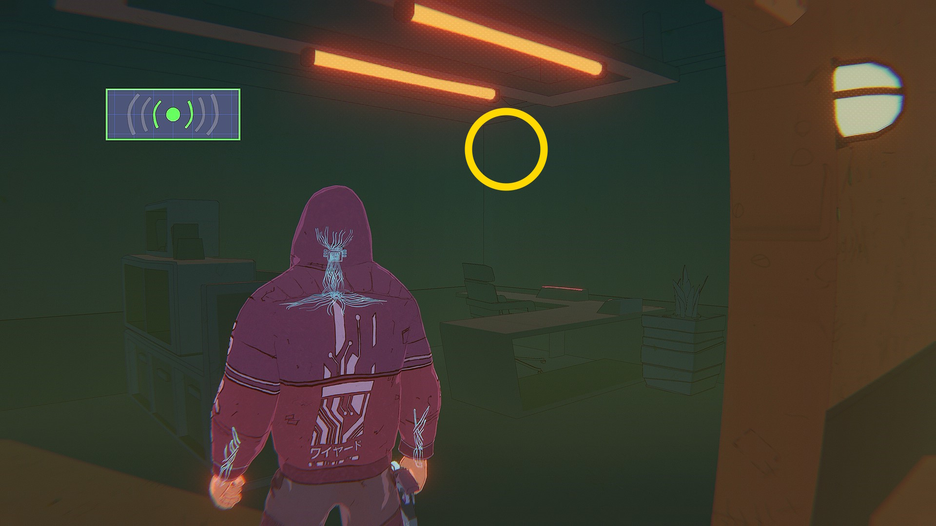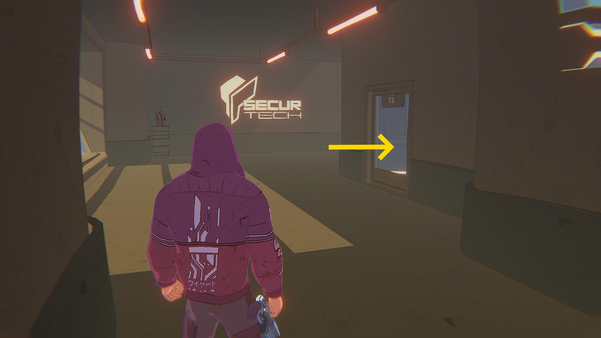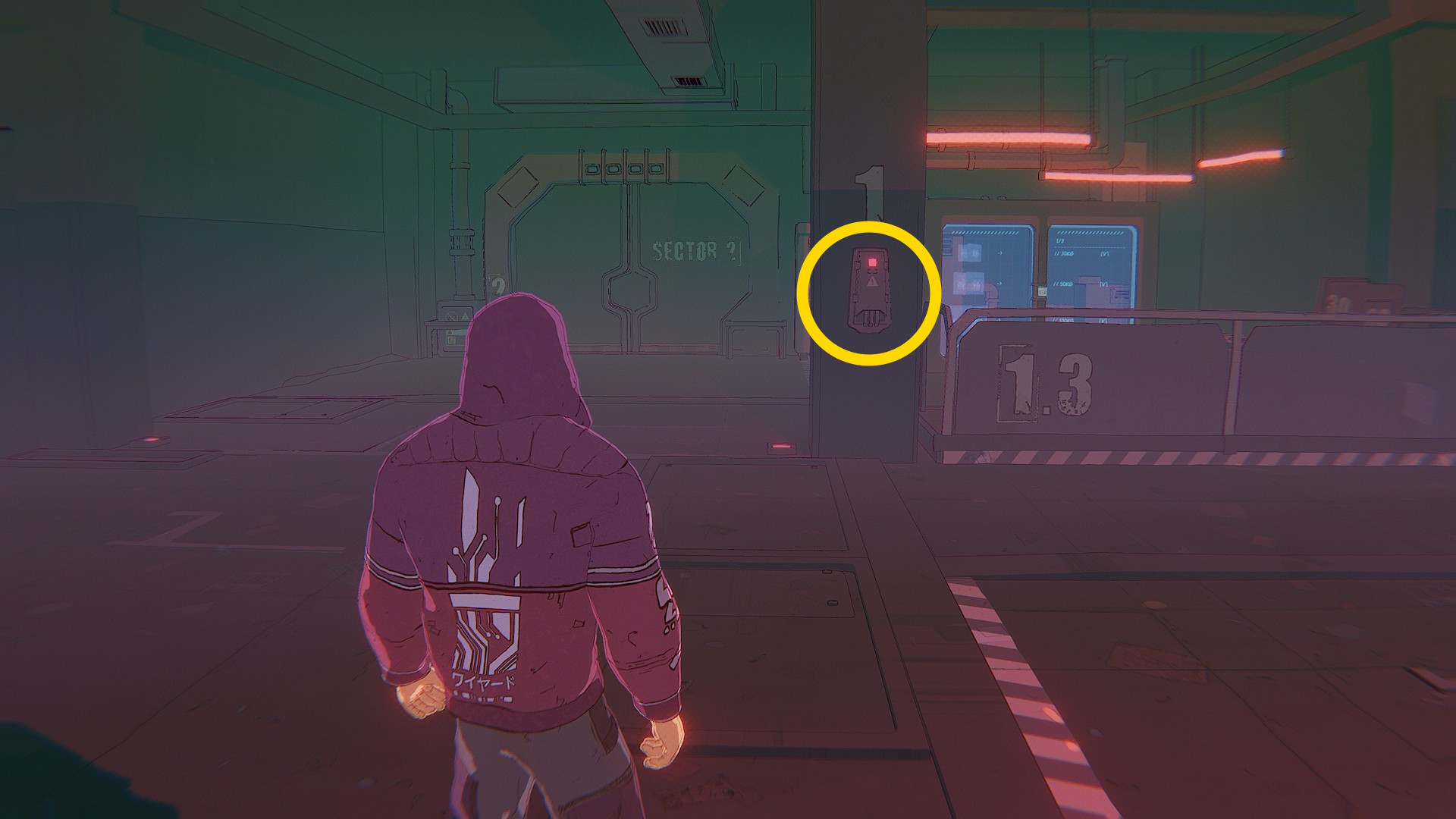 • インプラントハッキングを終えたら、その先の階段は下りずに近くのドアパネルをハッキングして中に入る