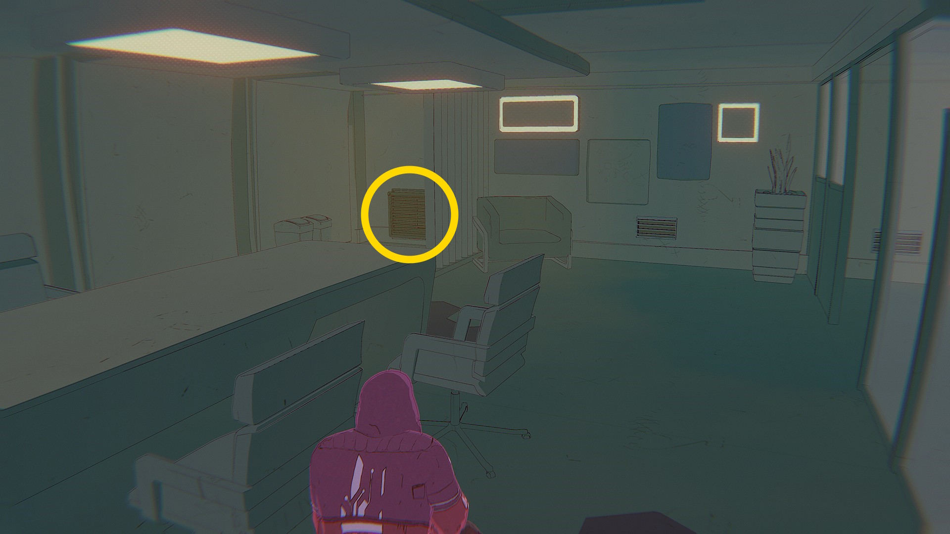 • 入って右奥にダクトカバーがあるのでハッキングして通気ダクトへ