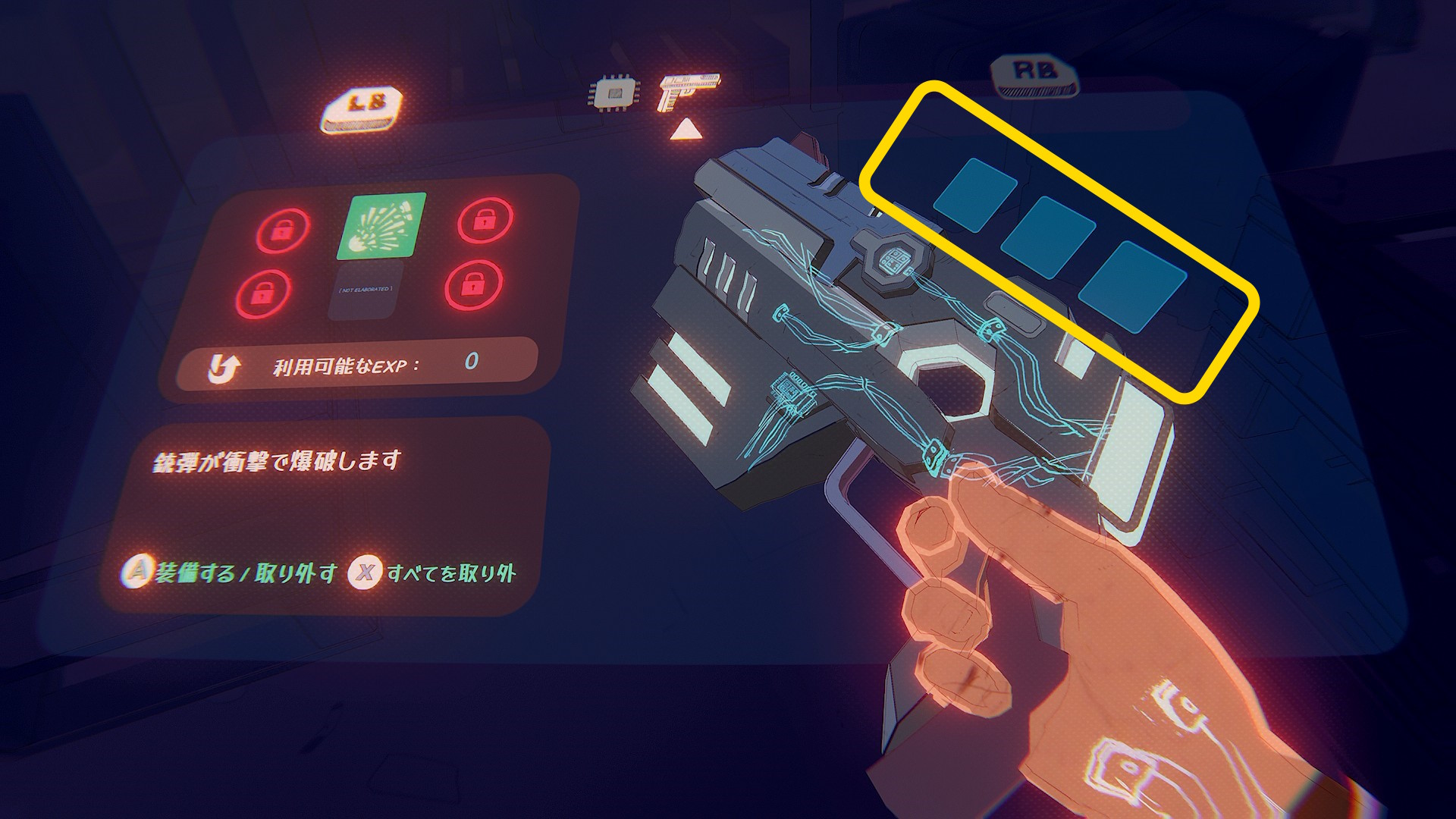• インプラントメニューを開き、共生銃の画面にしたら EXP ポイントを使ってみよう