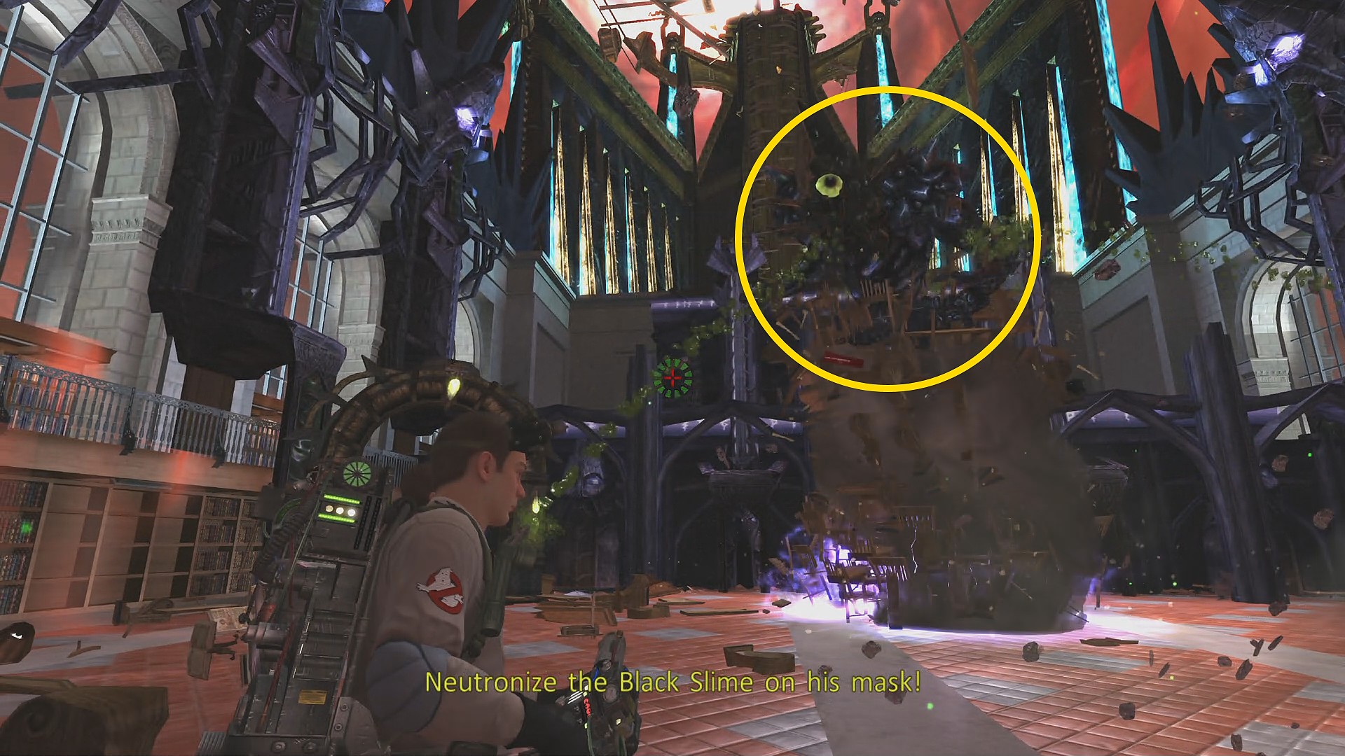 • ブラックスライムが剥がれたら Ray が「 It’s Clear 」と言うので、ブラストしながら LB を押して仮面を掴み、LT で外す。なお、Ego と Ray が1人でもダウンしていると仮面を外すことができないので回復させること
