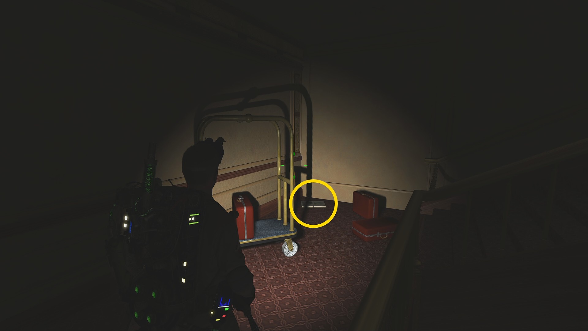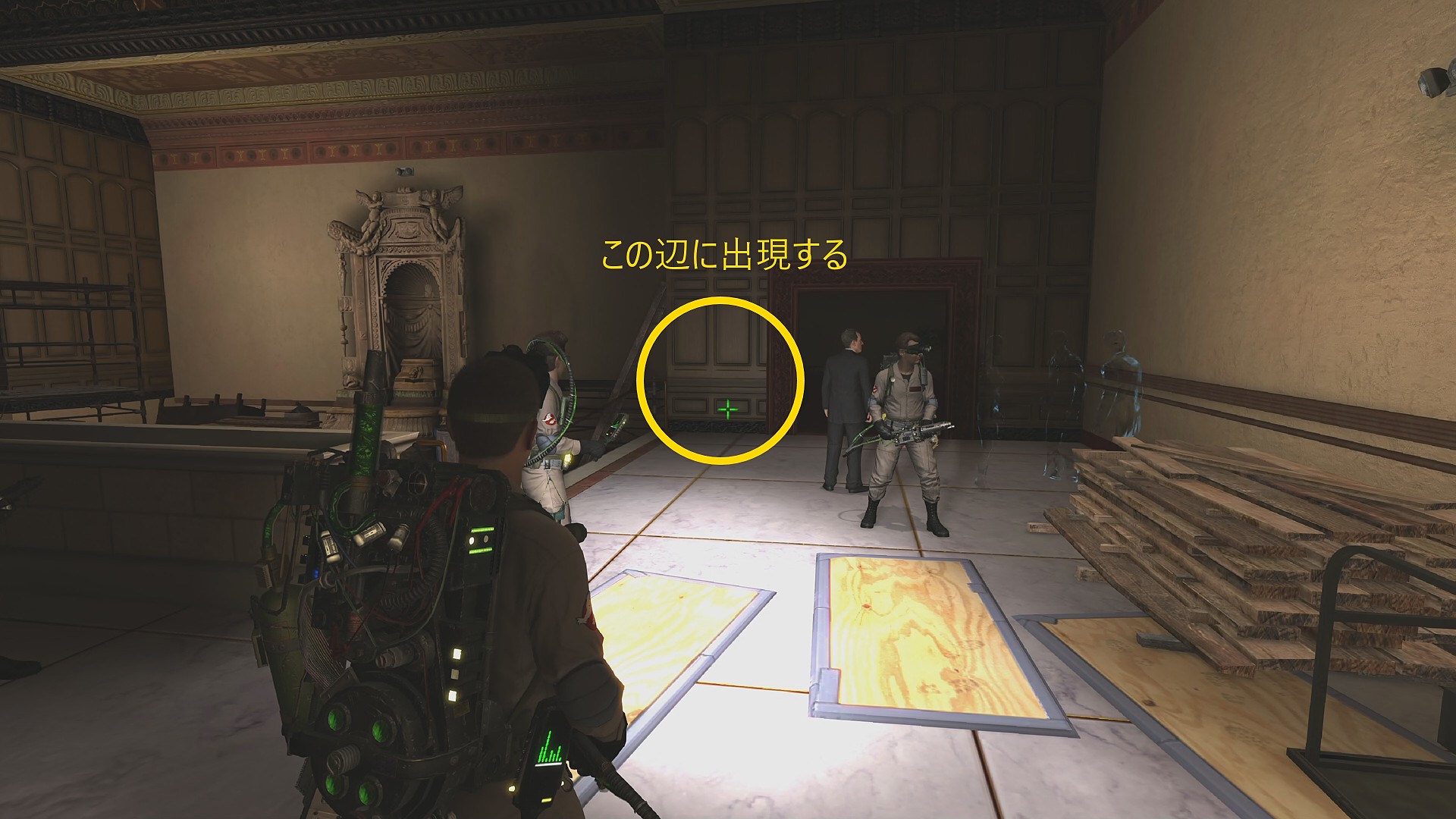 - ゴーストは支配人の左側に出現するのであらかじめ PKE を構えておくとよい。とはいえ、全部で10体出てくるのでスキャンするチャンスはあるので大丈夫