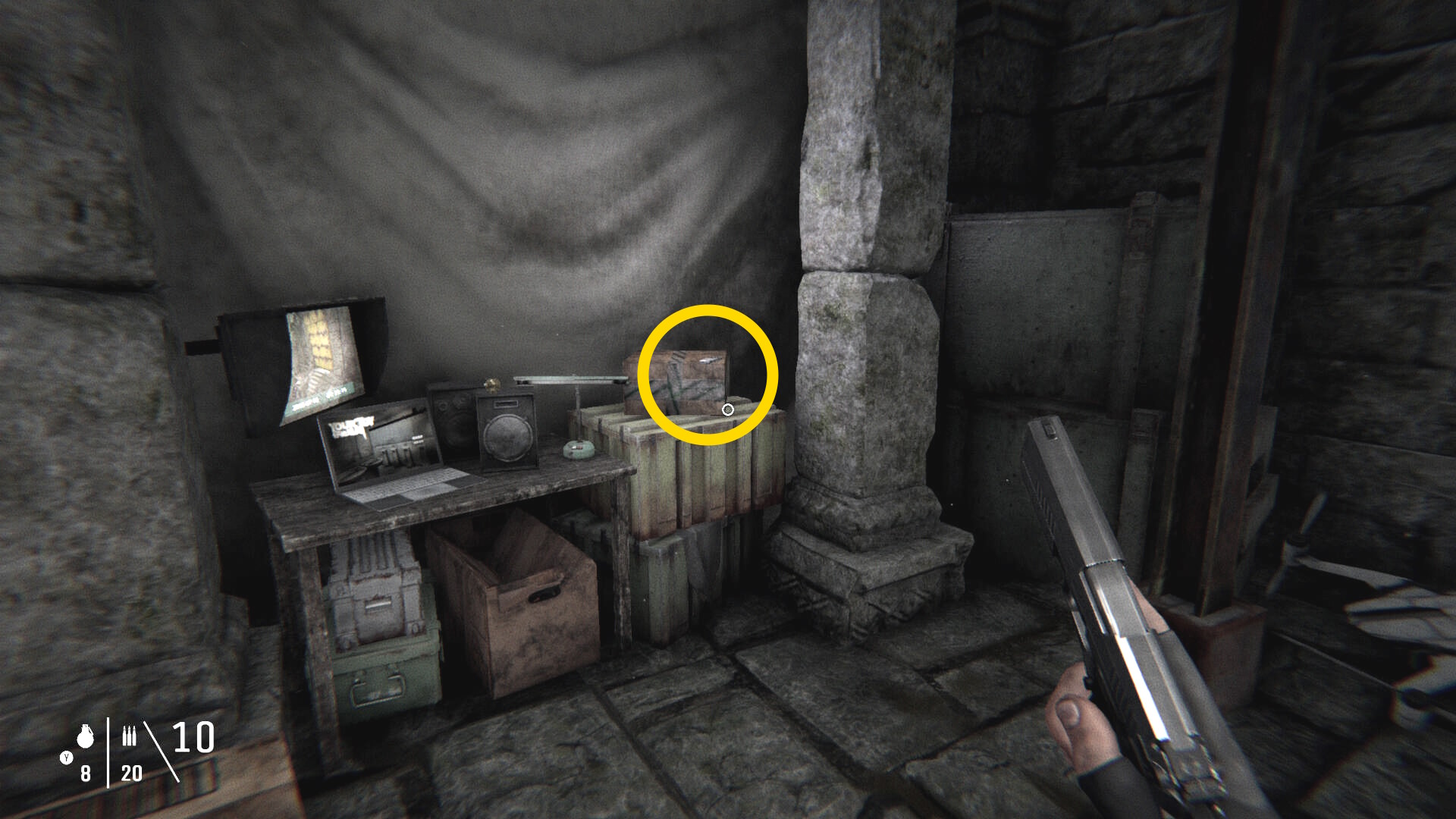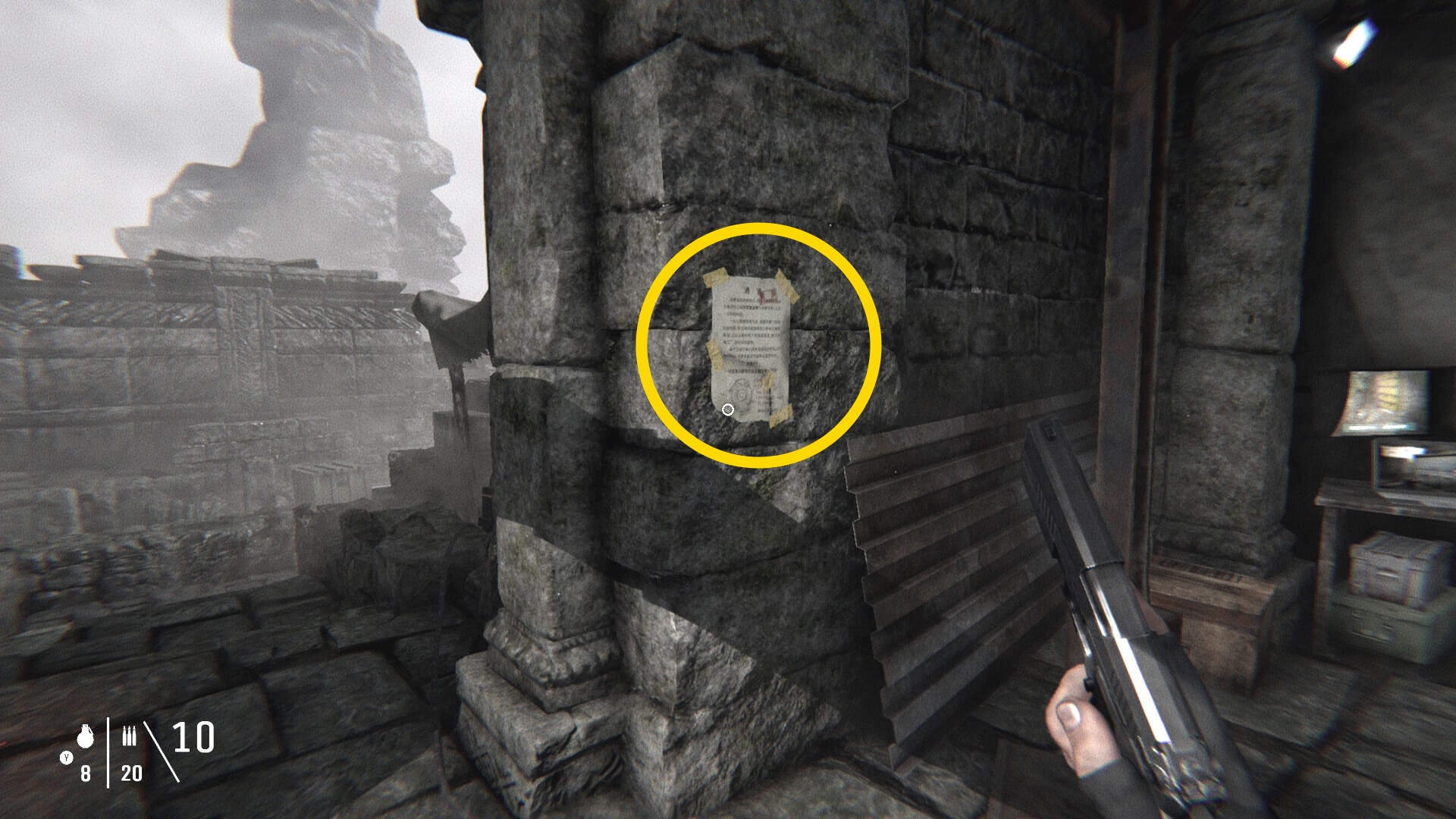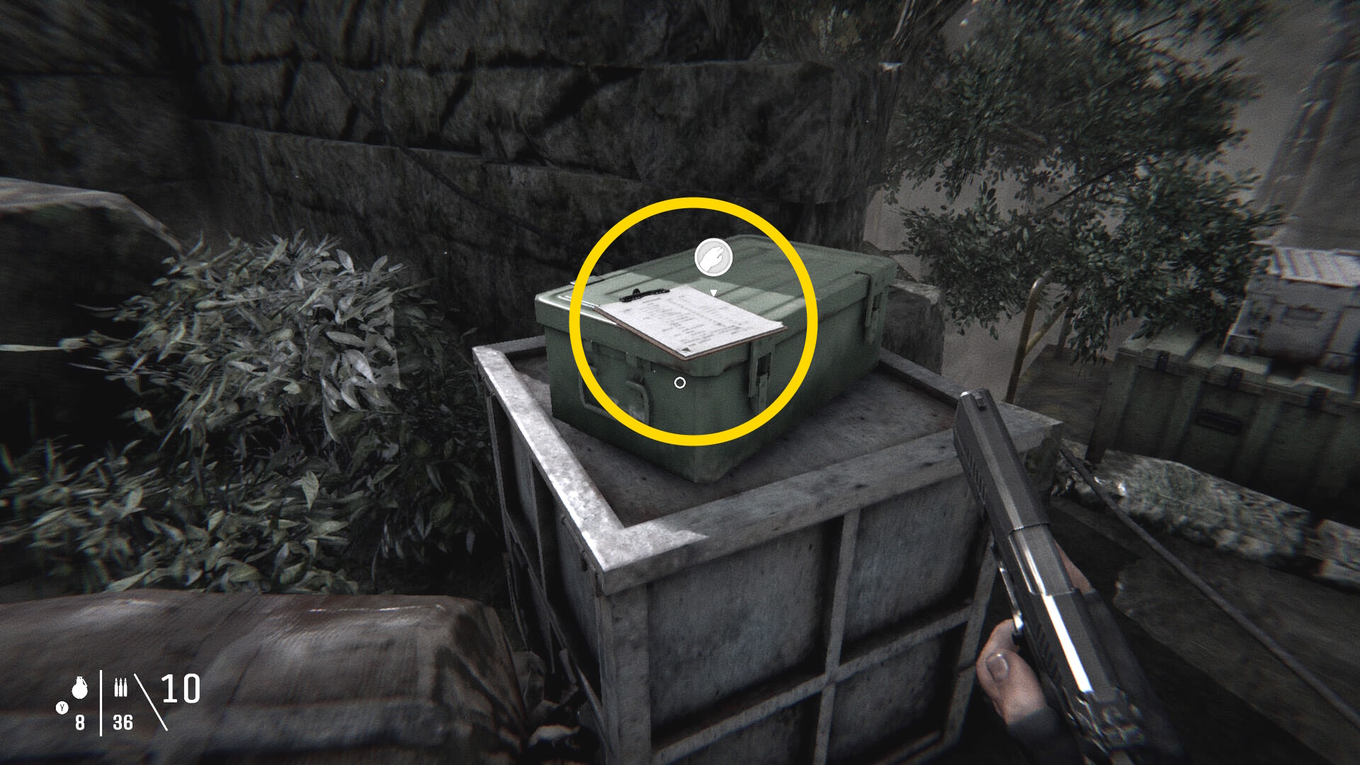 - ピストル持ちをキルしたところ、前方のコンテナ上に 記録文書(5/15)