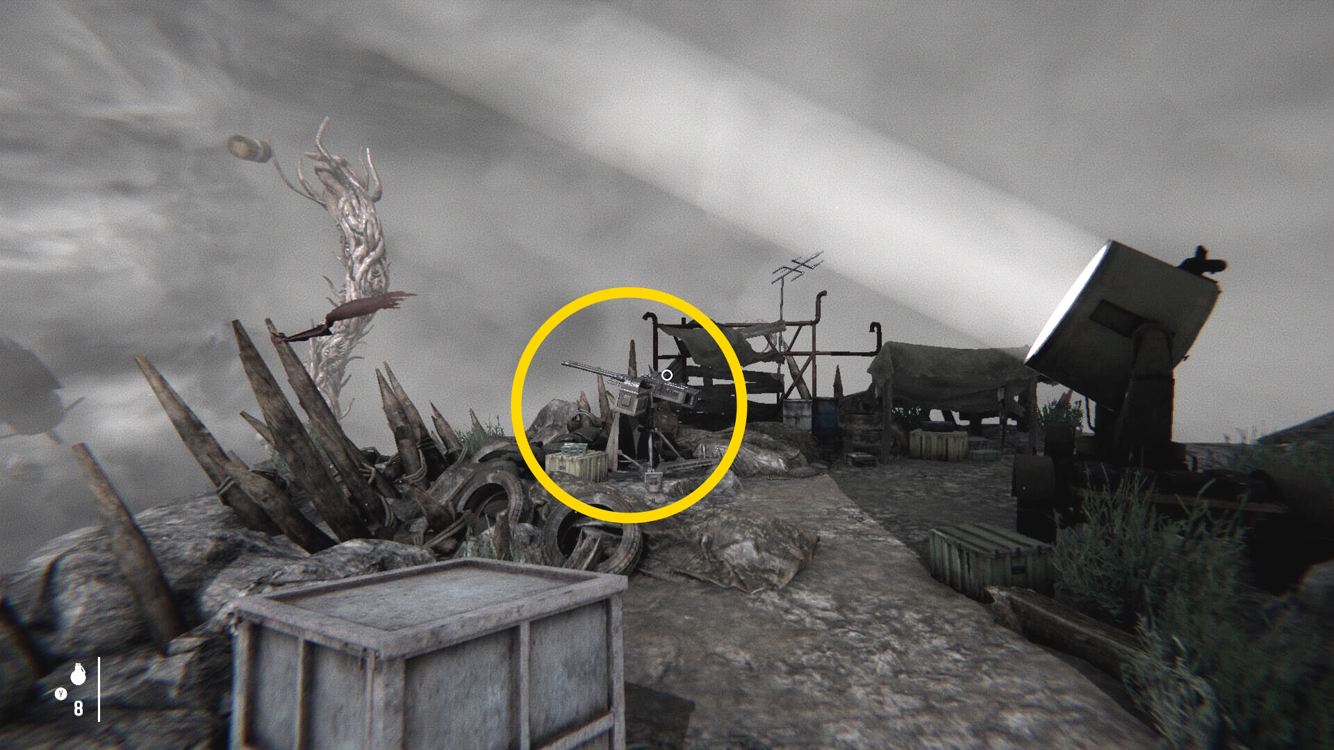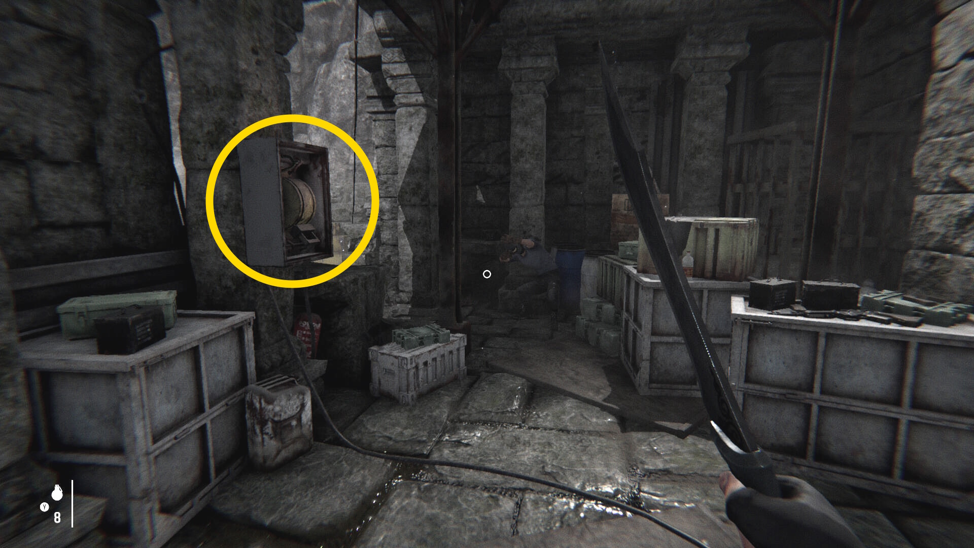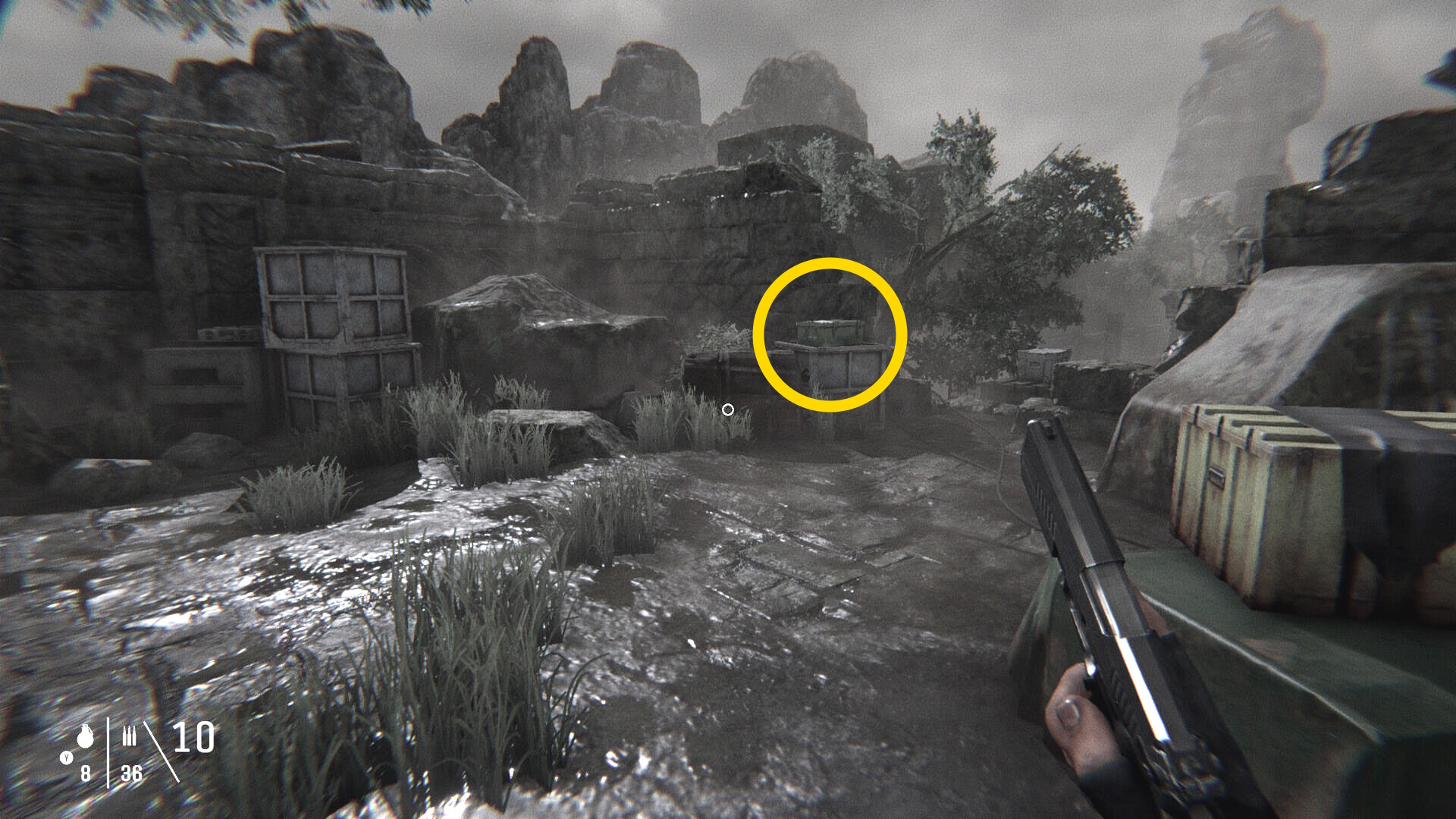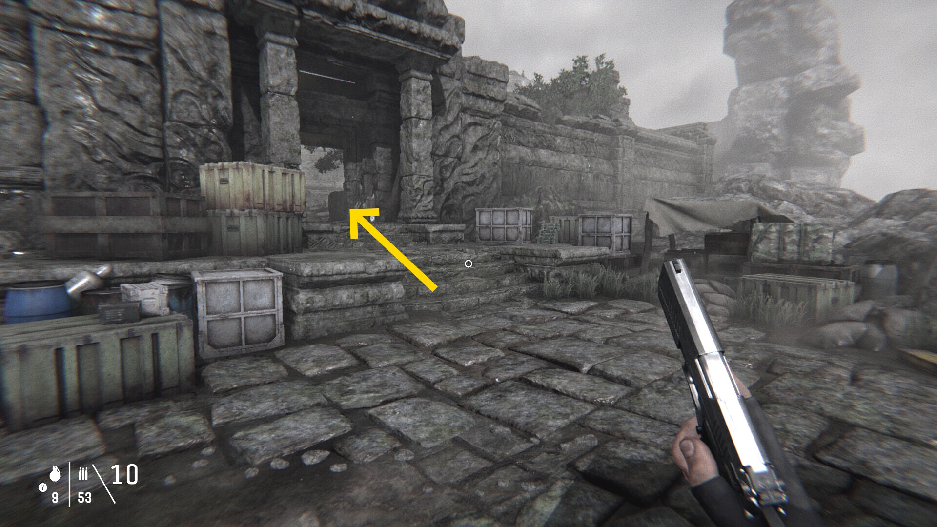 - ピストル持ちをキルしたところ、前方のコンテナ上に 記録文書(5/15)
