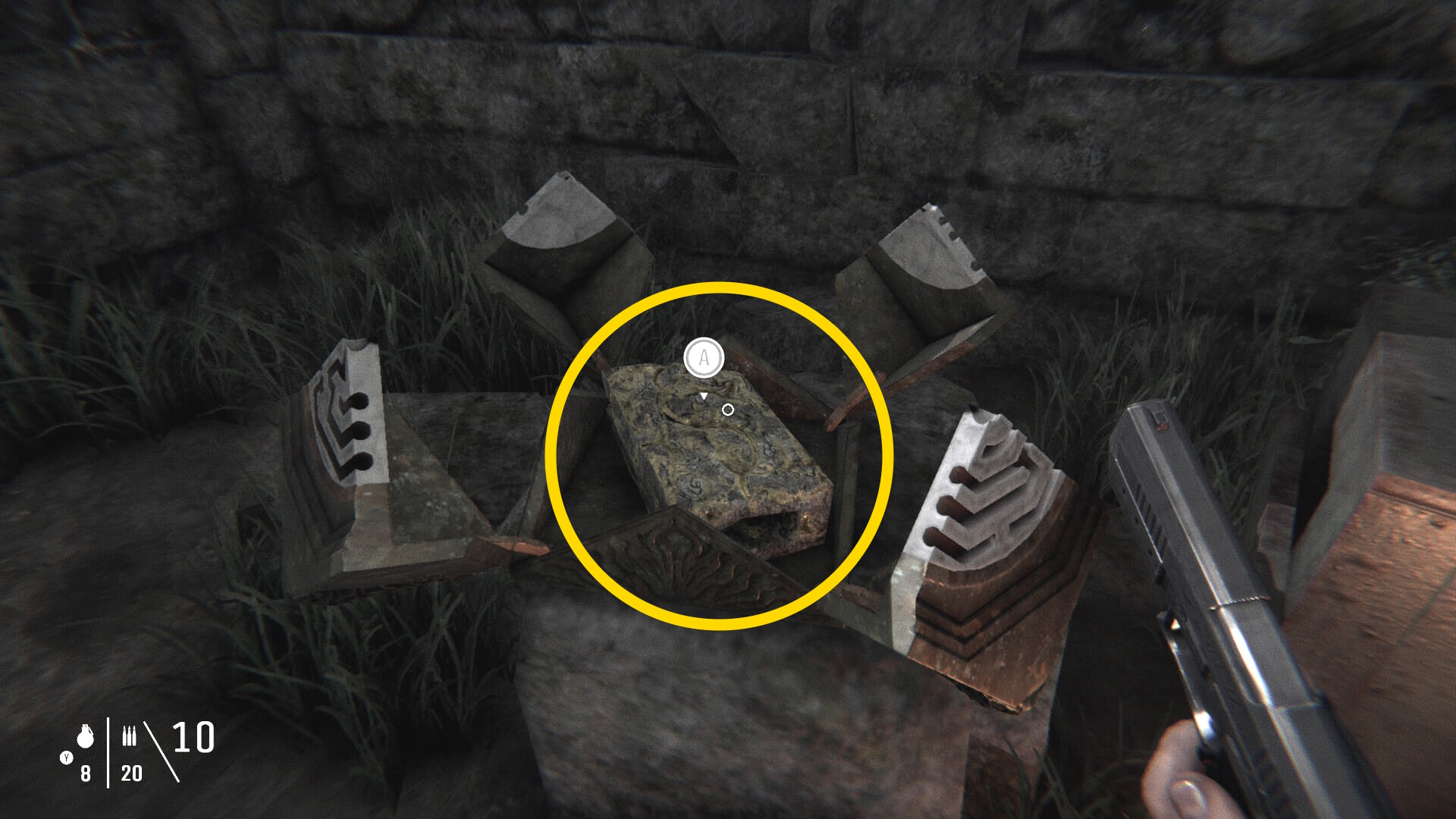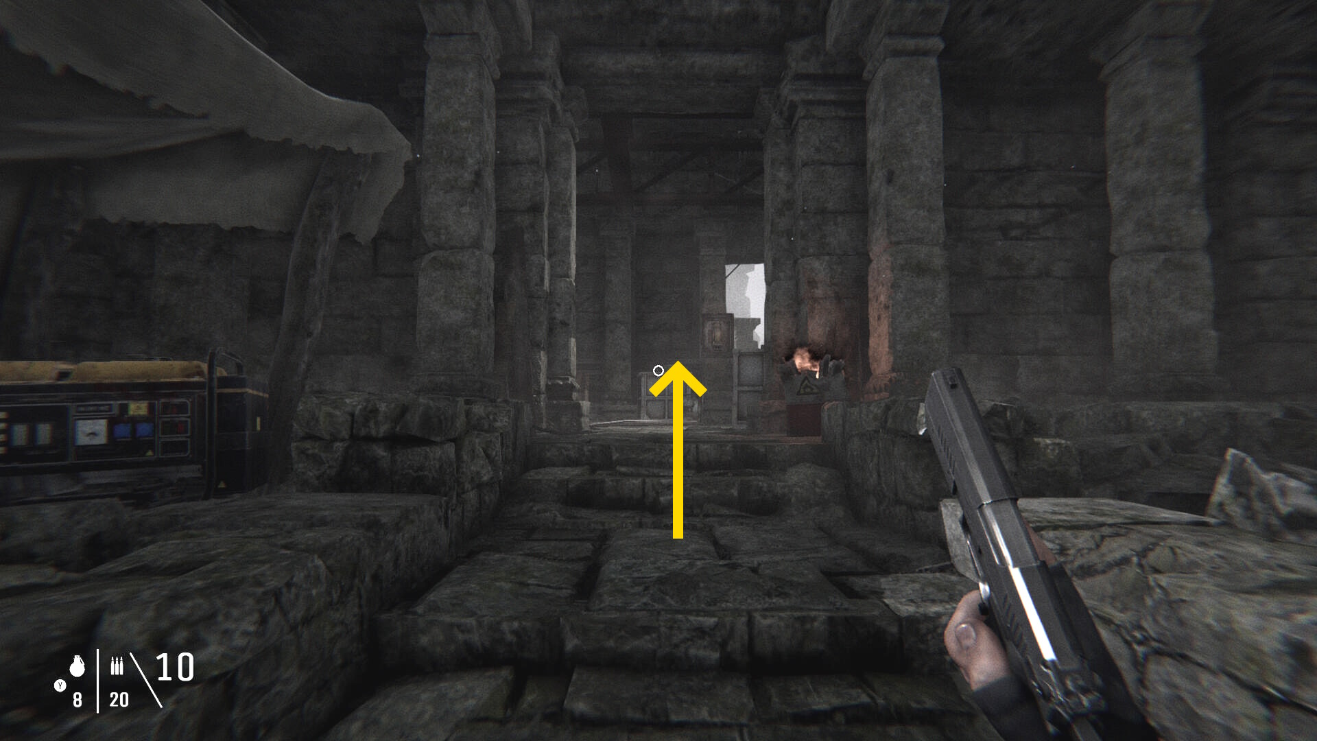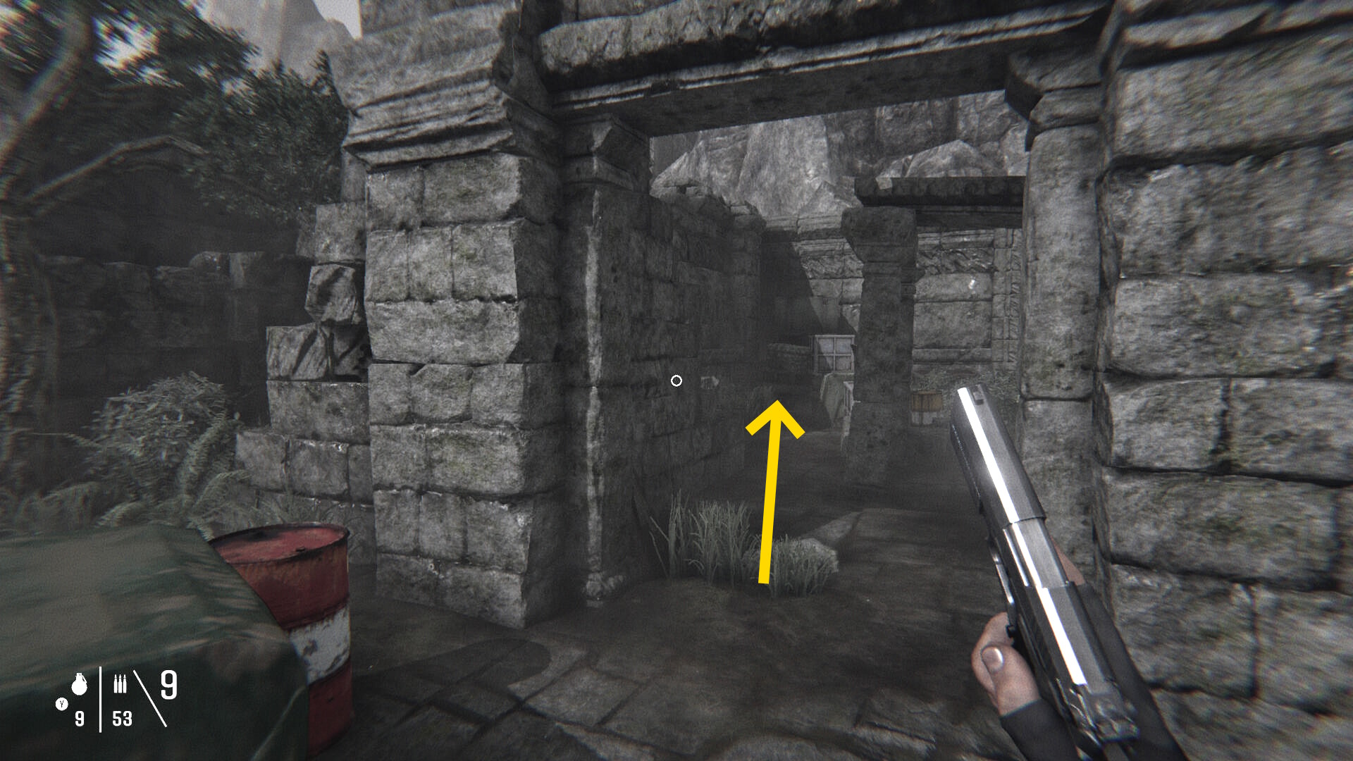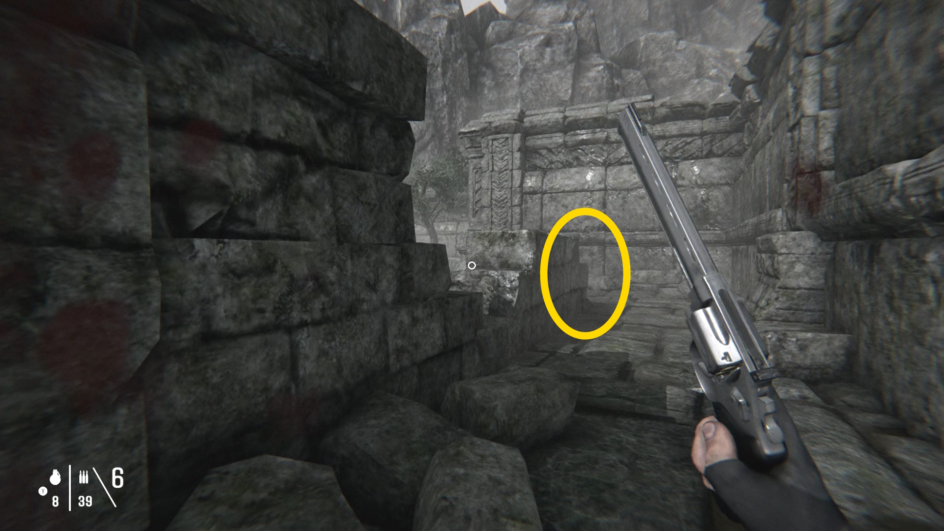 - 玉転がしパズルを解き、遺物を回収したら、ショットガンナーの死体のほうに戻る