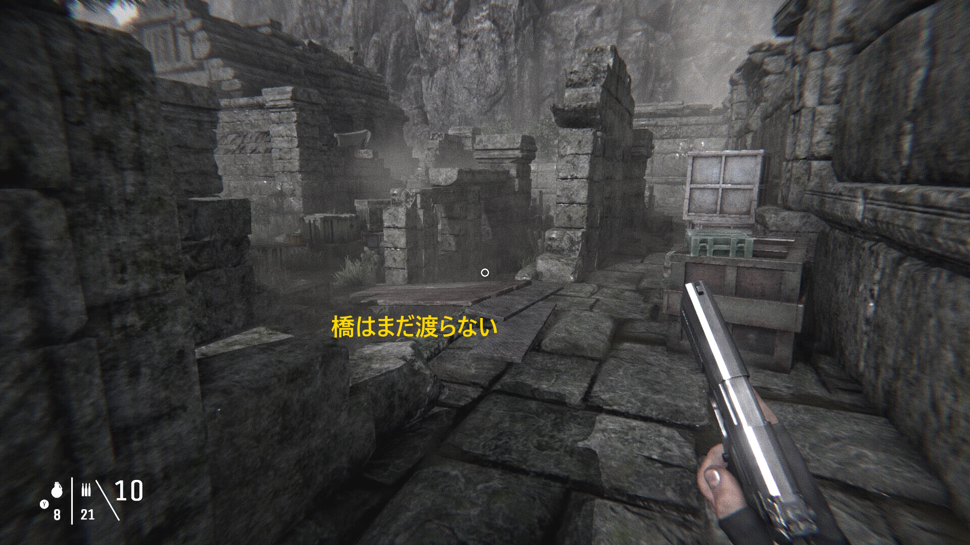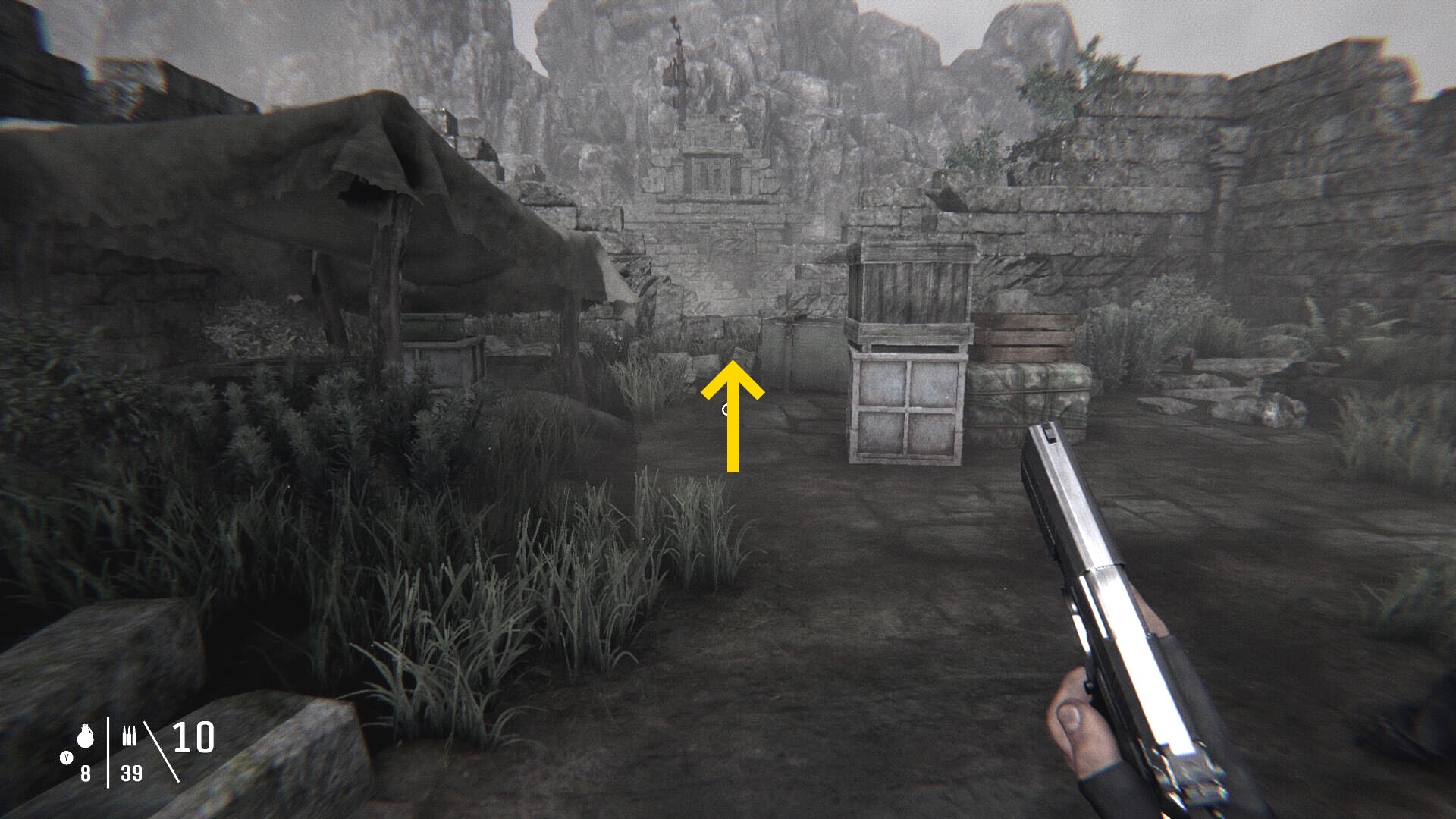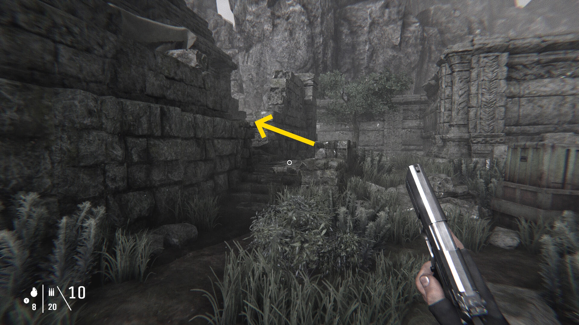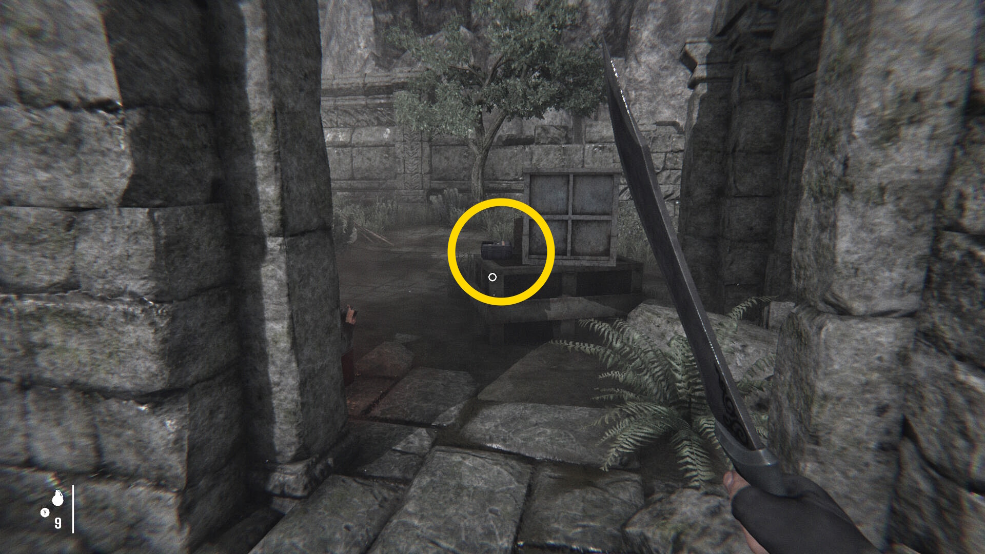- 玉転がしパズルを解き、遺物を回収したら、ショットガンナーの死体のほうに戻る