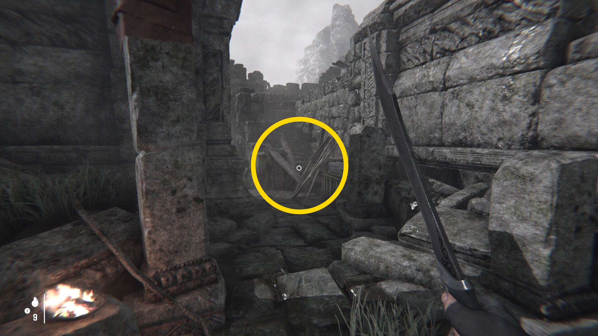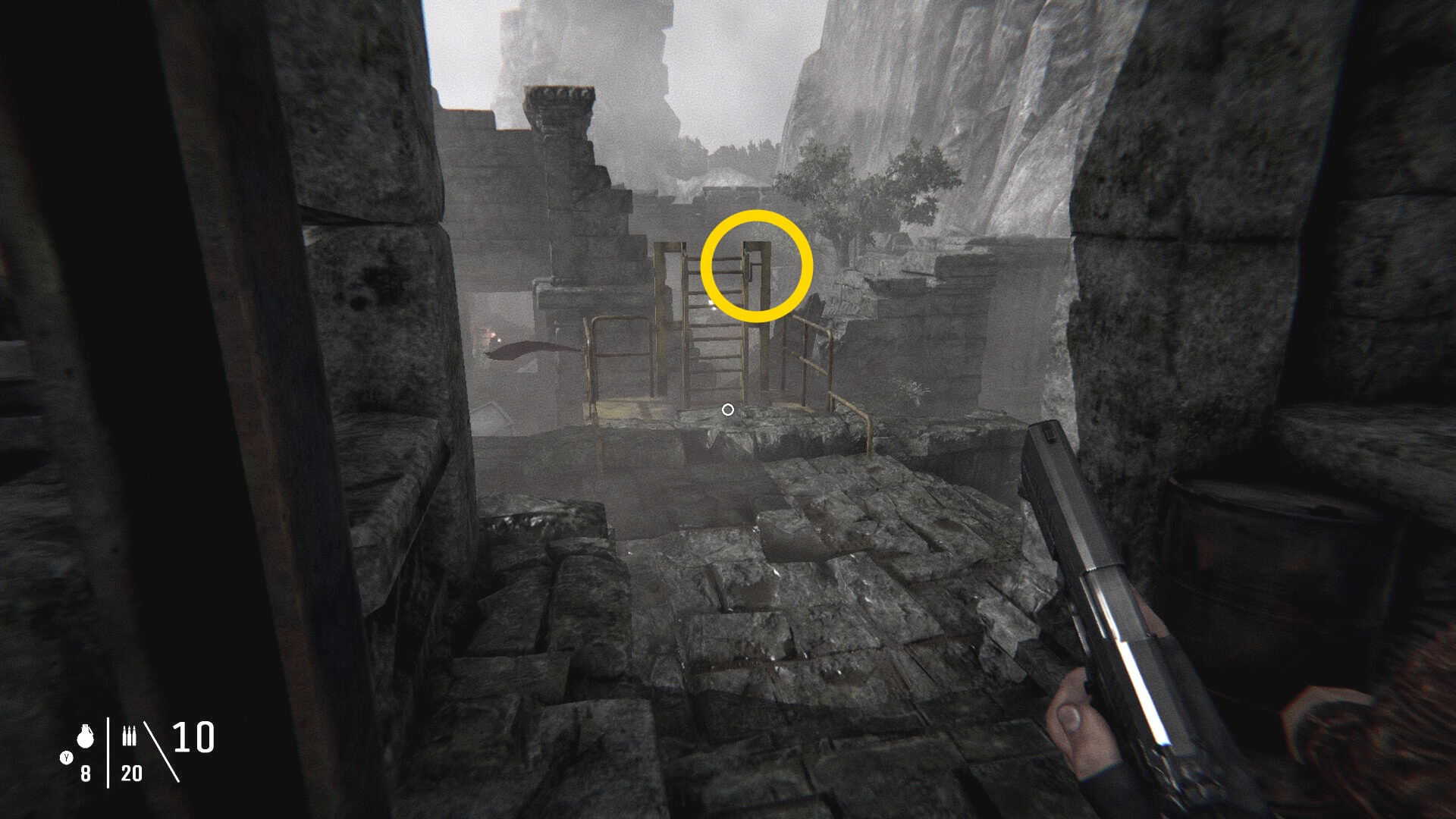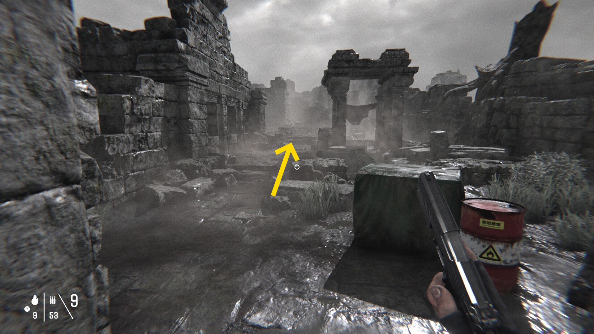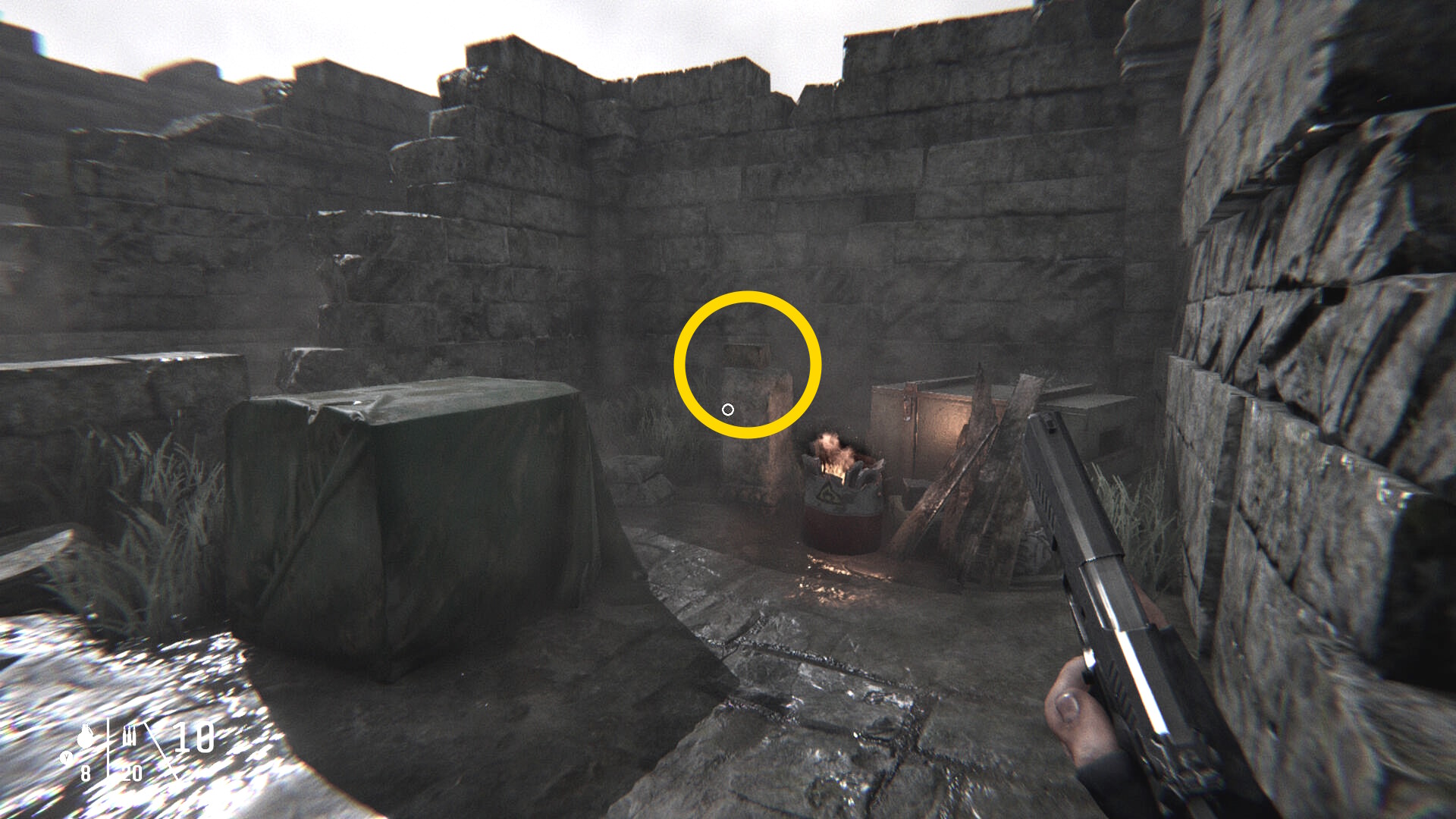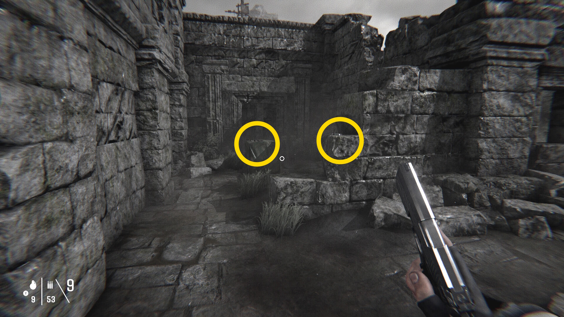 - 玉転がしパズルを解き、遺物を回収したら、ショットガンナーの死体のほうに戻る