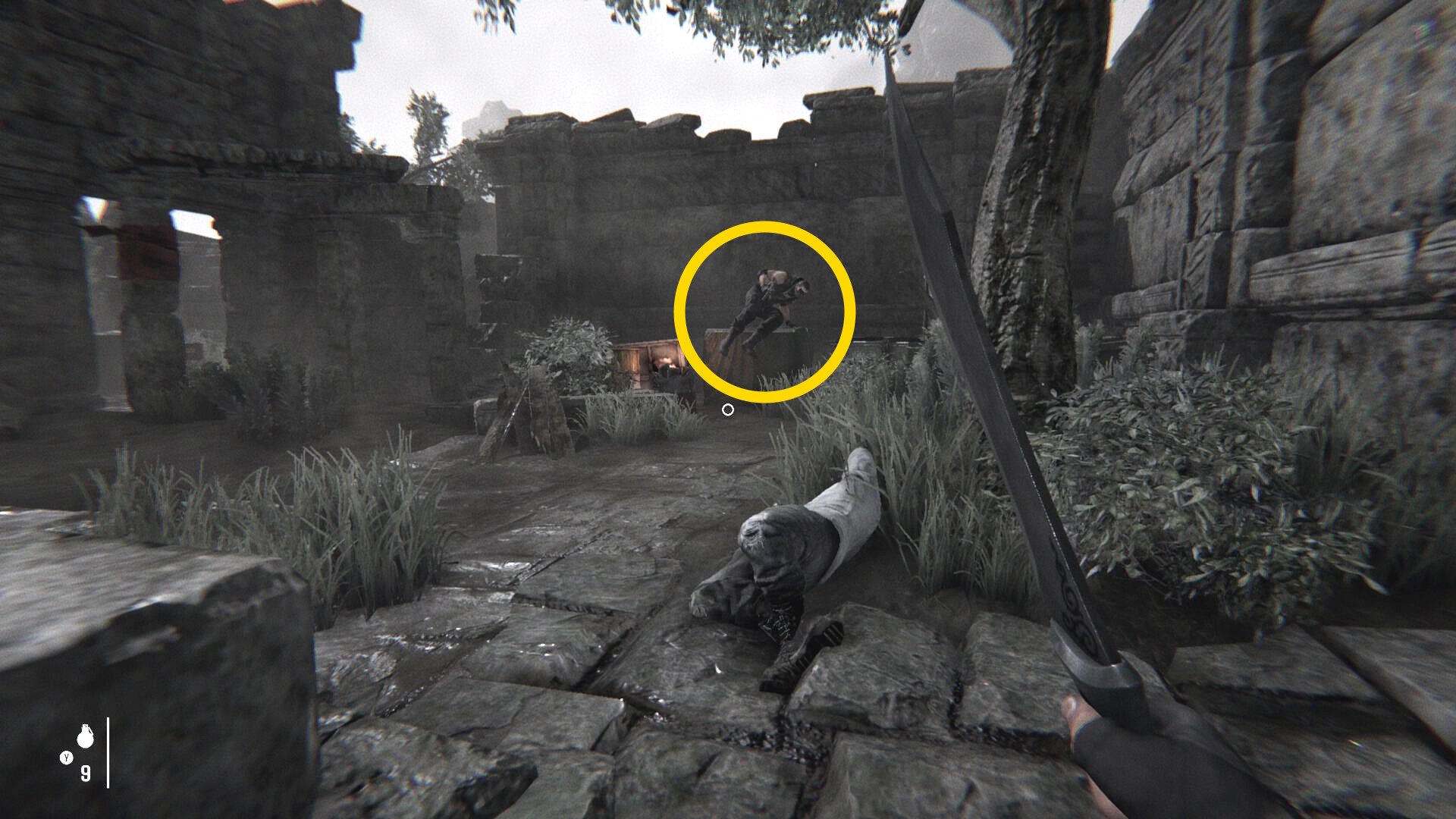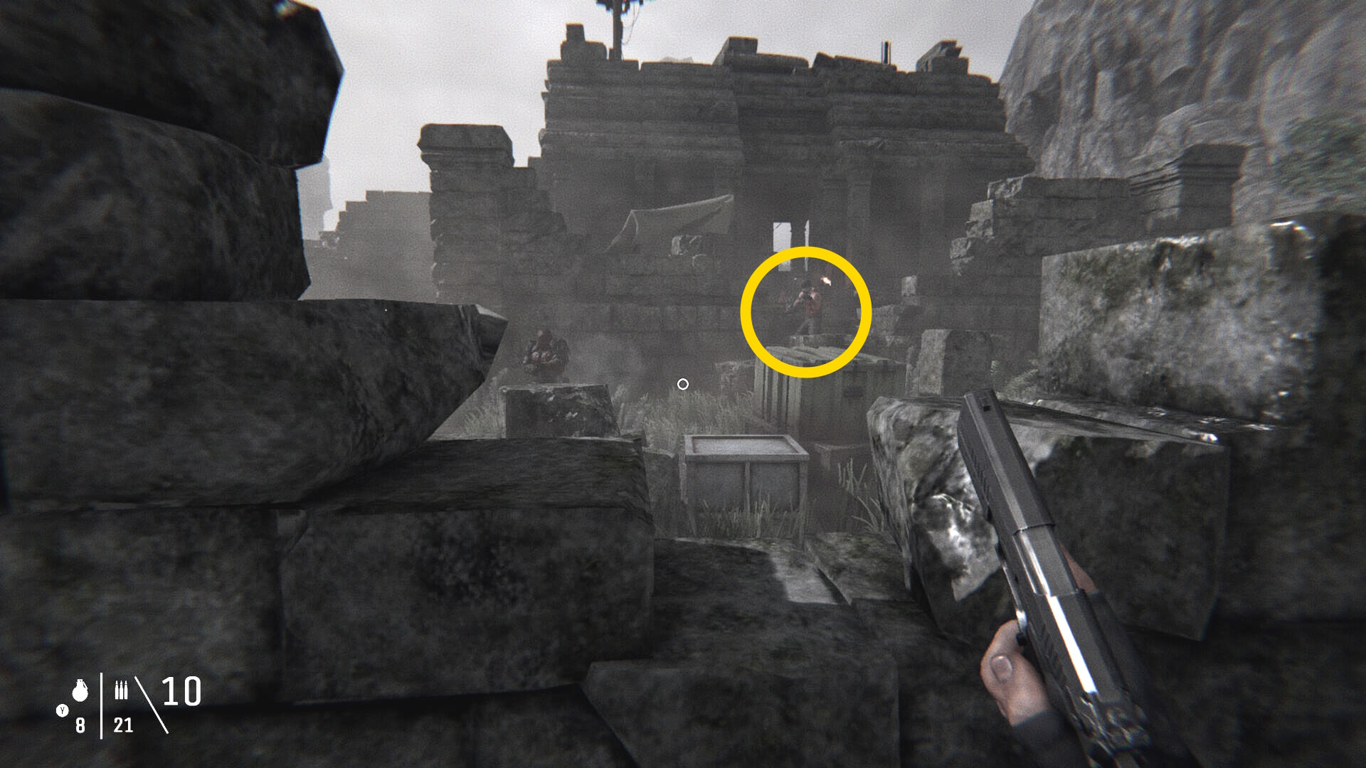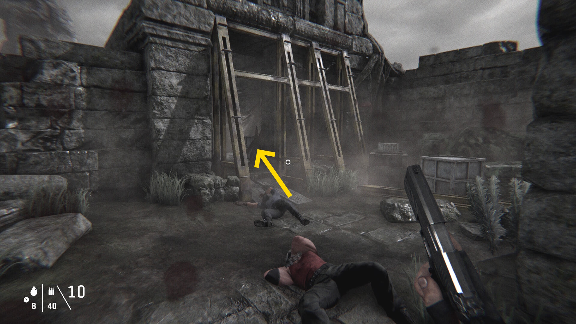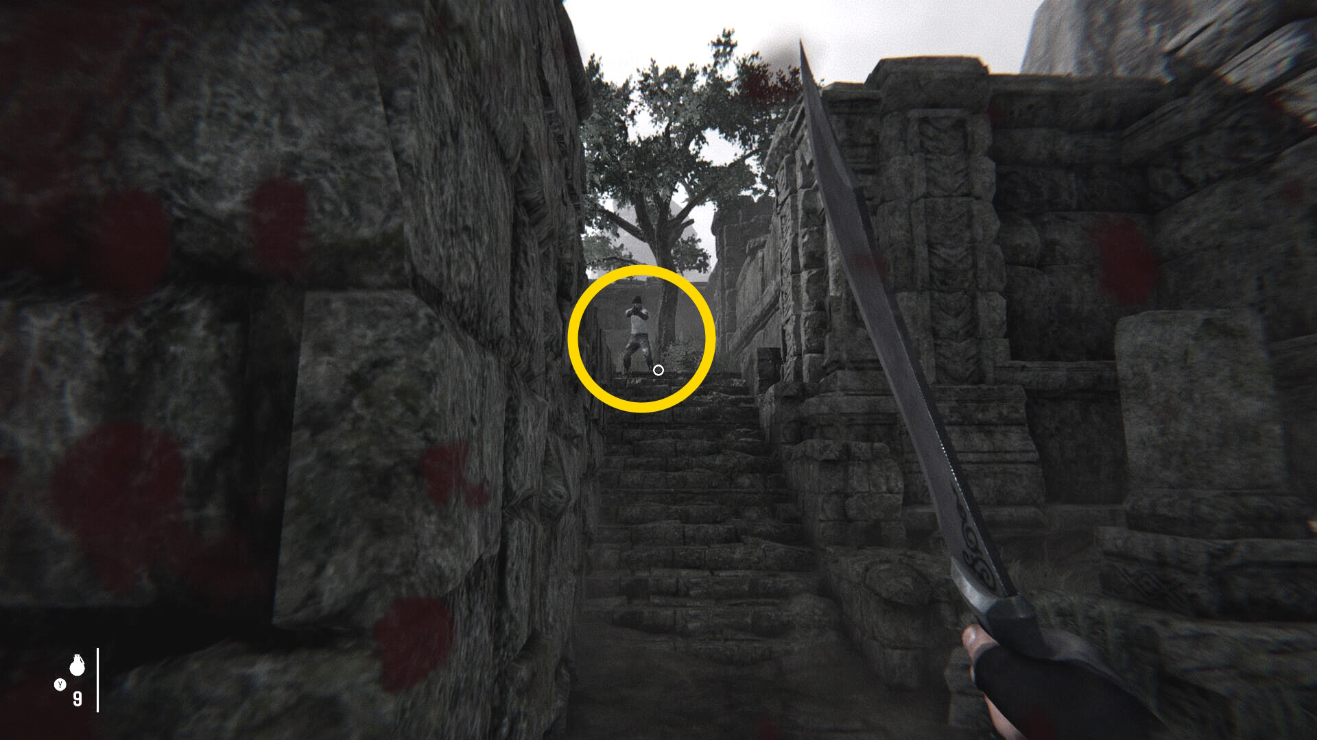 - その奥にもう1人敵がいるがピストル持ちなのでナイフ四撃でキルできる