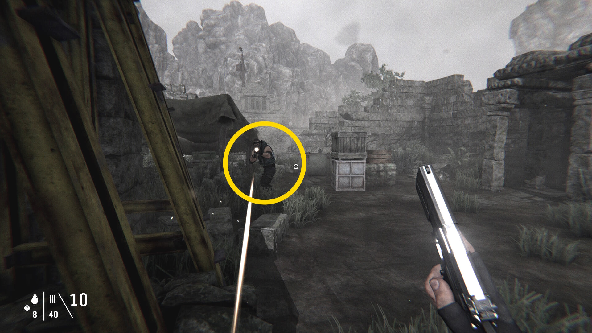 - 特に左に戻って止まった時に当てやすい(リボルバーを推奨:ヘッドショット10発でキルできる)