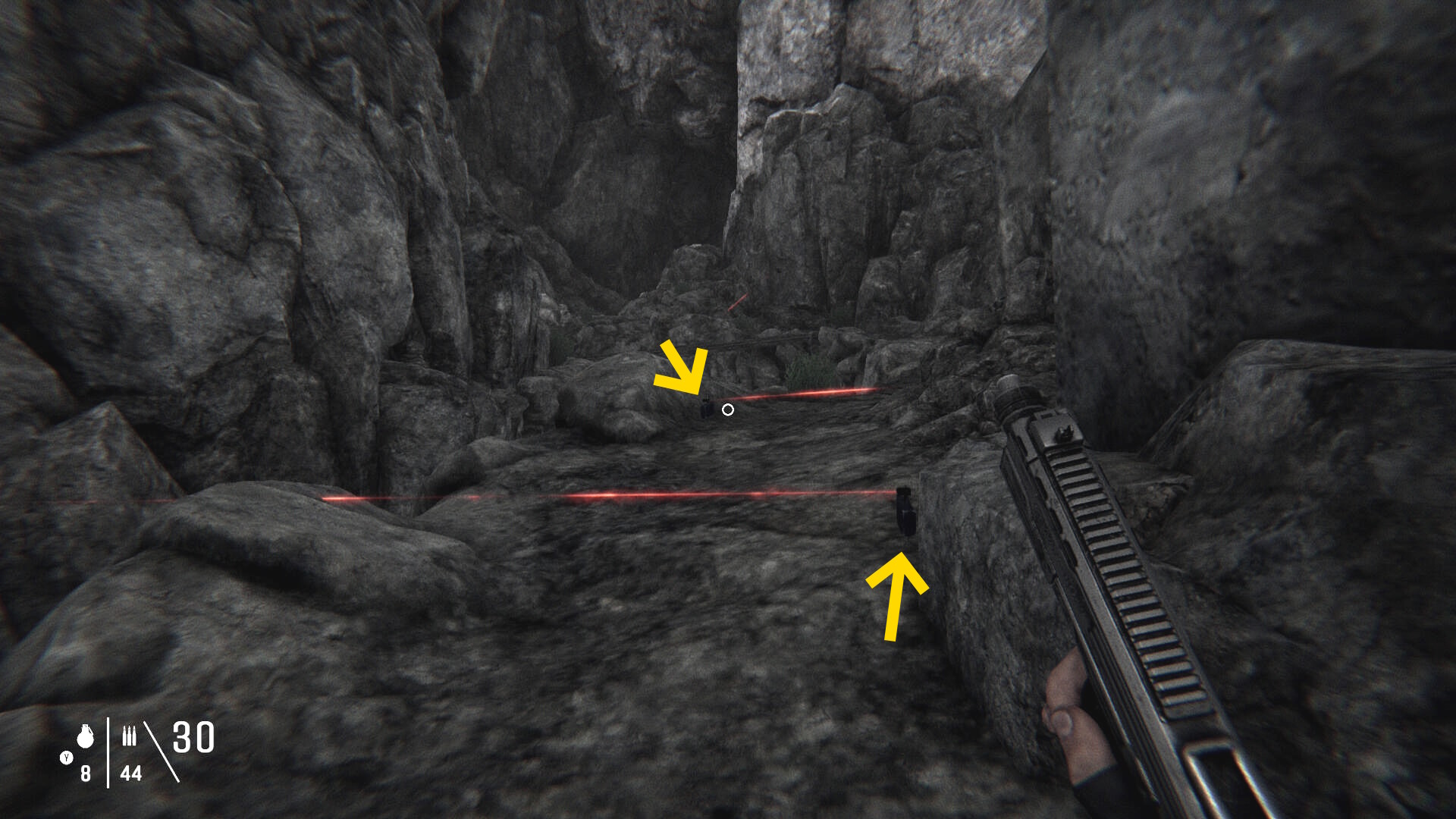 - 少し進むと地雷設置ゾーン(全3箇所)