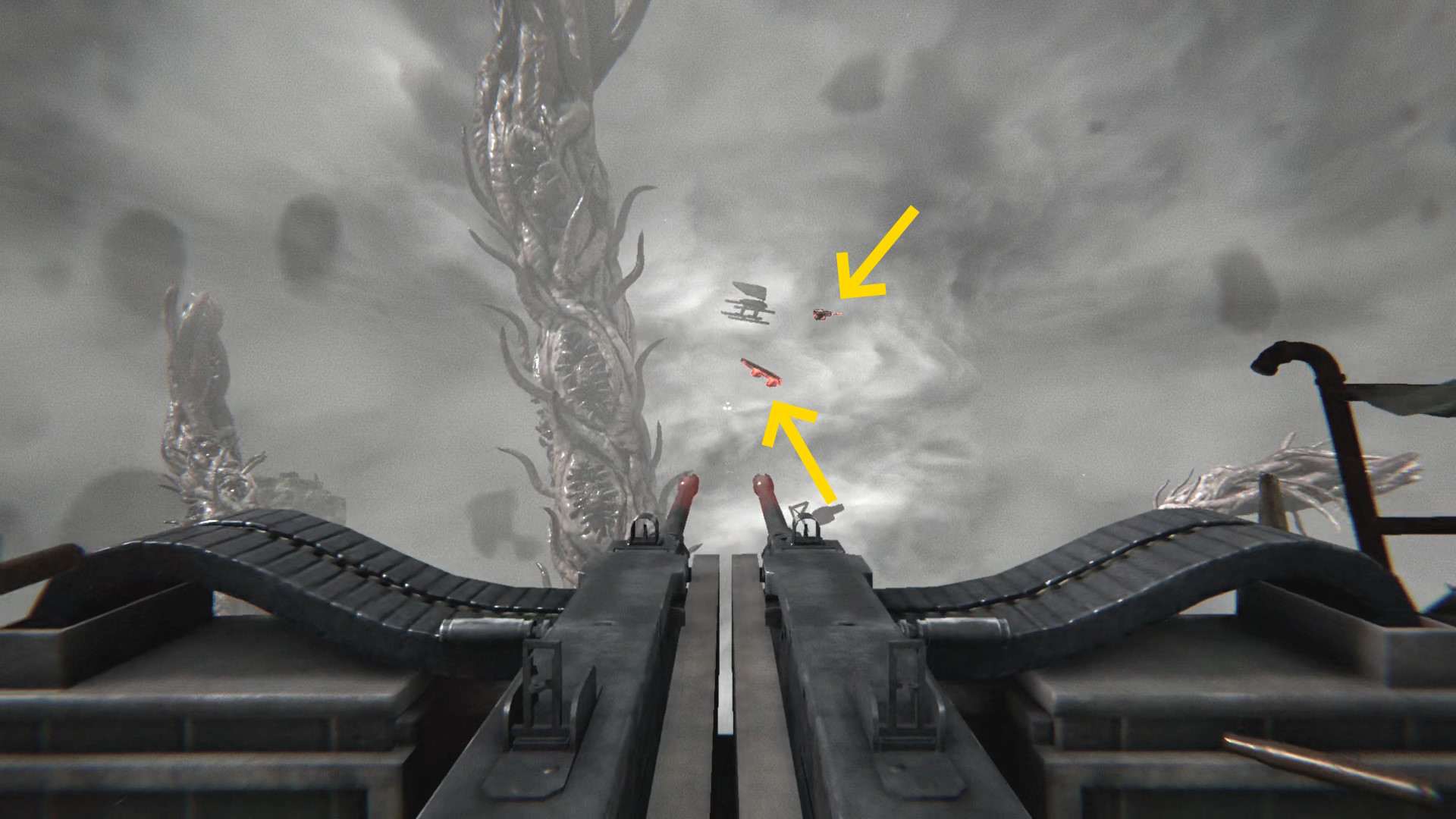 - 竜巻から飛んでくる瓦礫などが破壊できずに着弾した場合、瀕死状態になる。そのまま触手の攻撃を受けるとゲームオーバーになるため、飛んでくる瓦礫などの処理が超重要