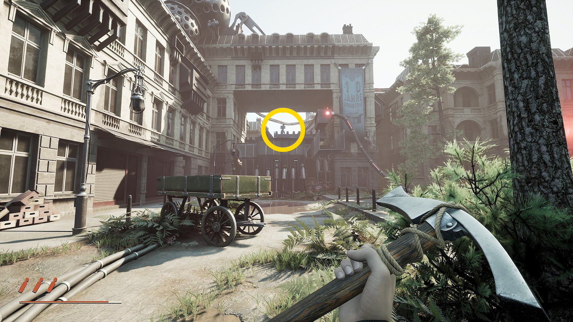 - 外に戻り、奥に進むと突然の爆発音(奥にいるロボットが自爆した音)