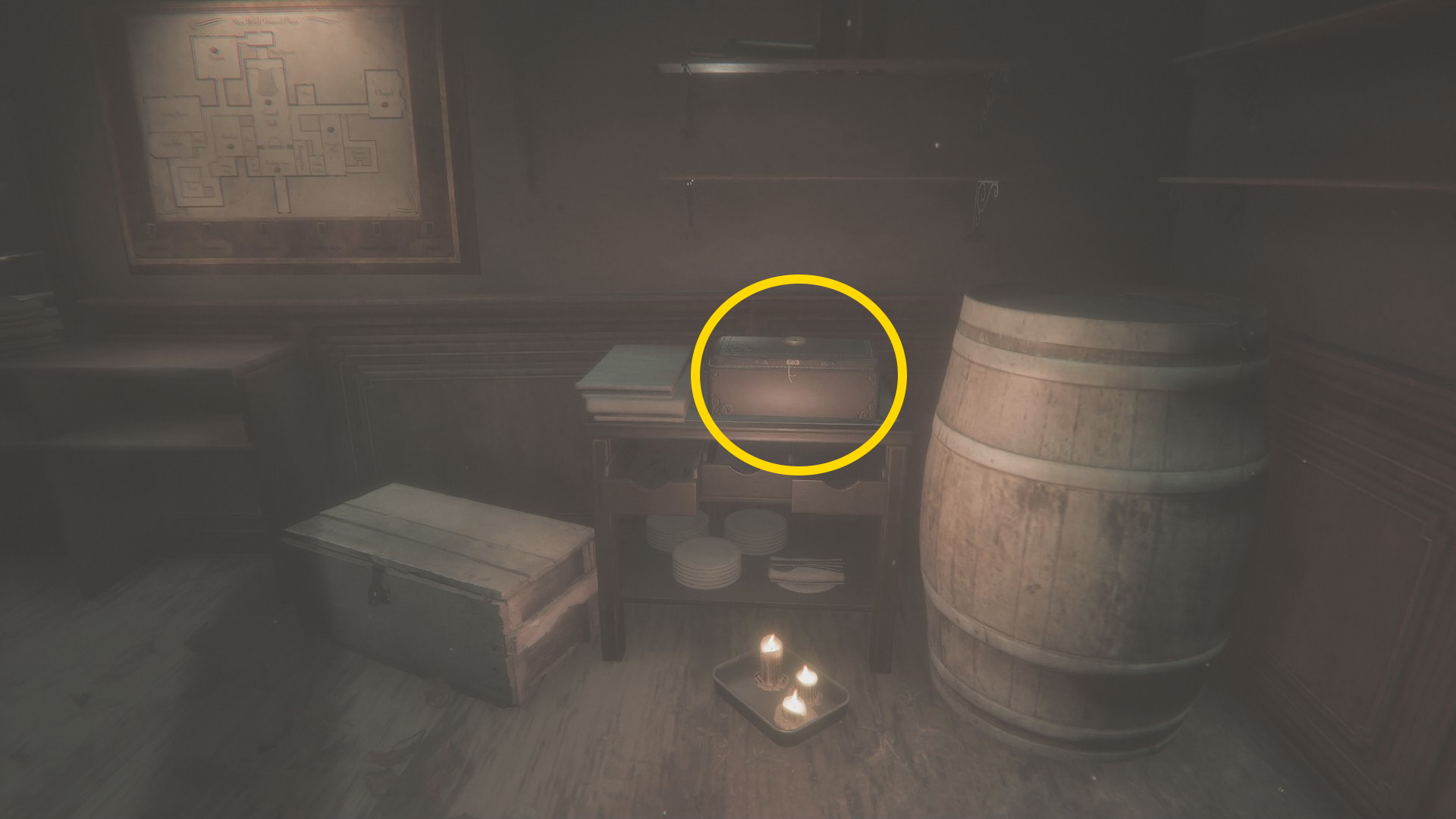 - バーカウンターに戻ったら、右側に 1階西側の地図が入った箱 がある