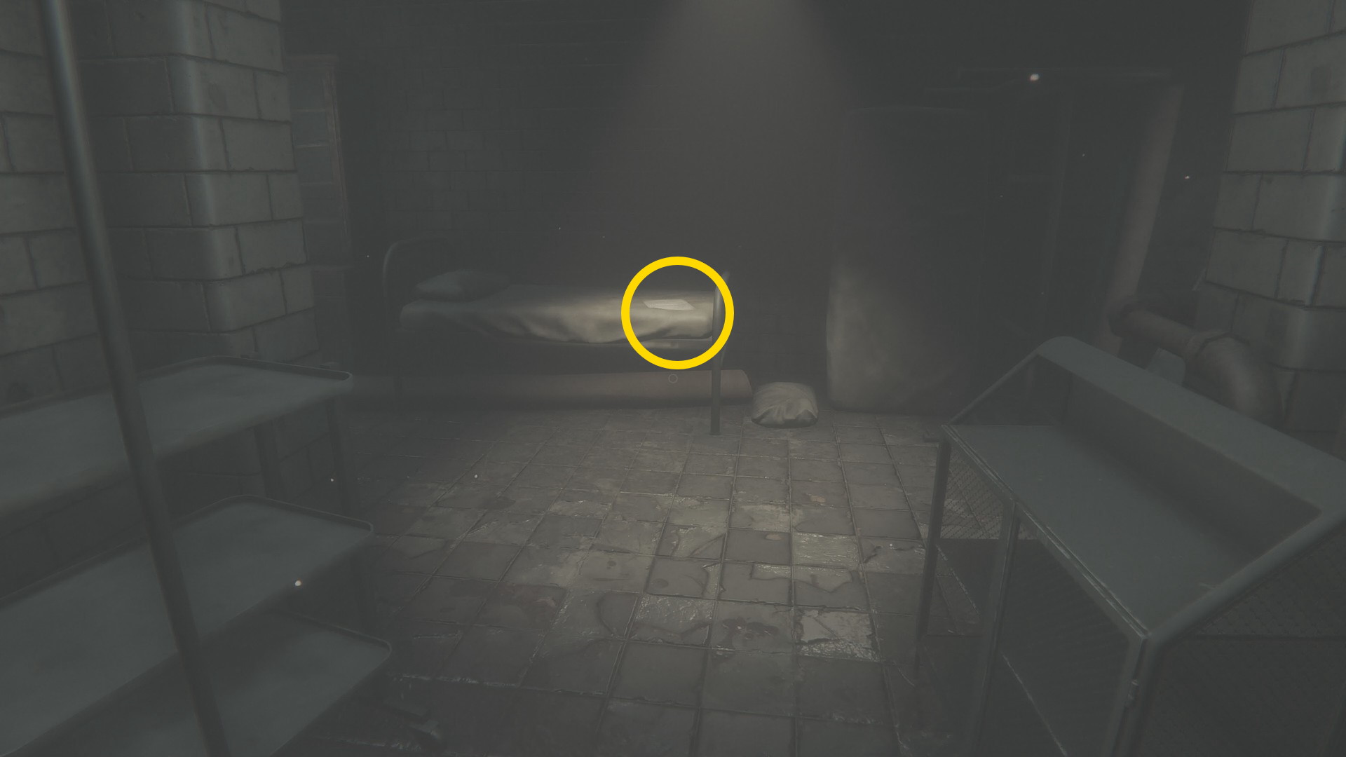 - 左のドアを開けると左右に独房があるエリア