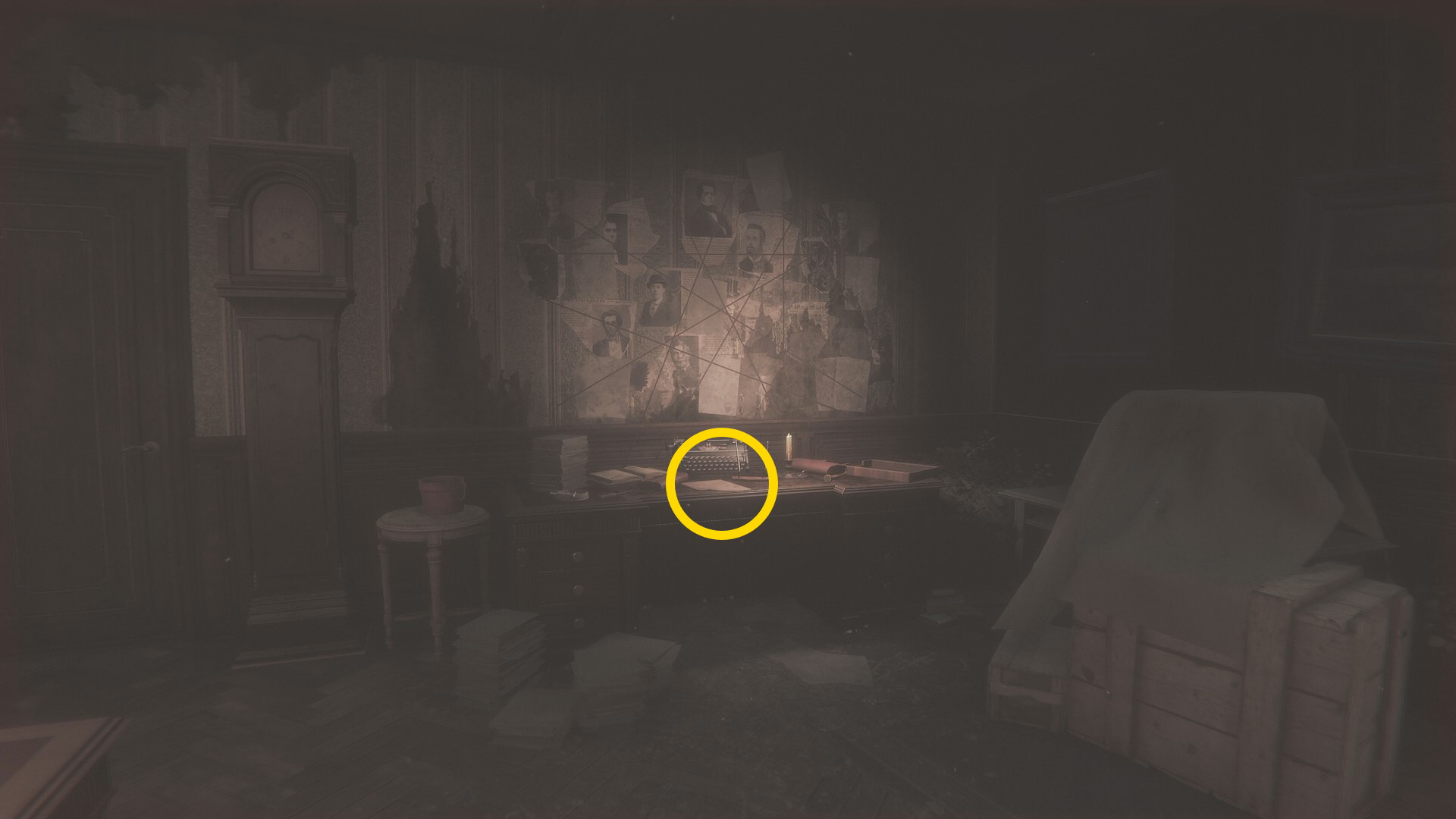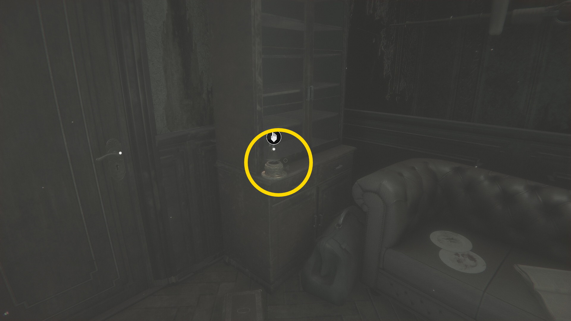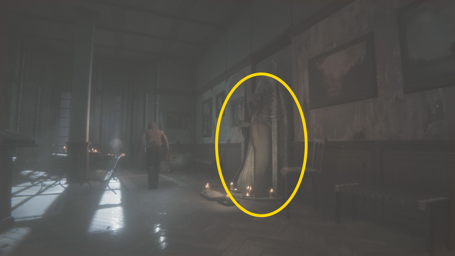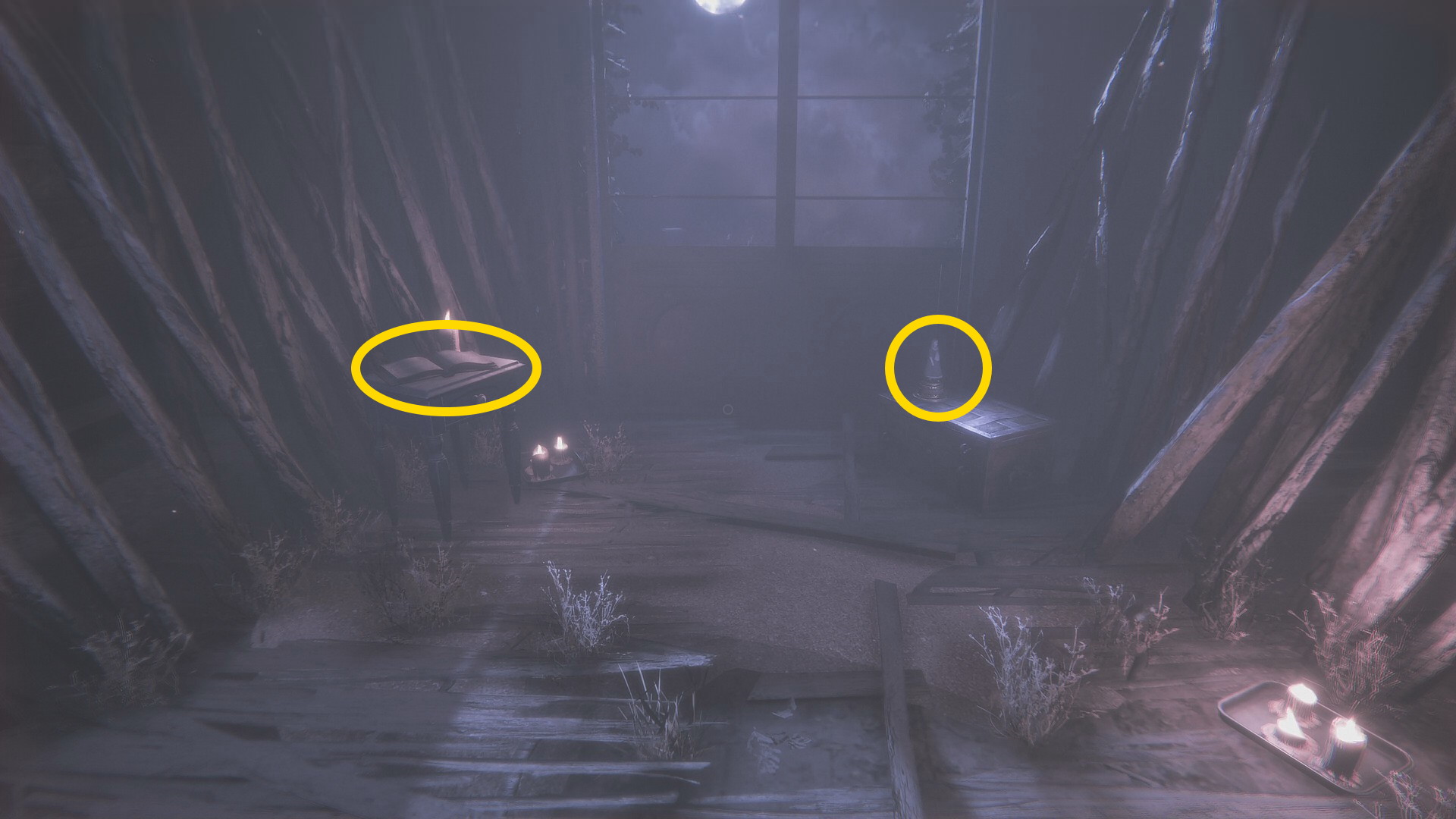 - 壊れた壁から廊下に出て左を向くとライトが灯るテーブルに オルゴール人形 (16/20)