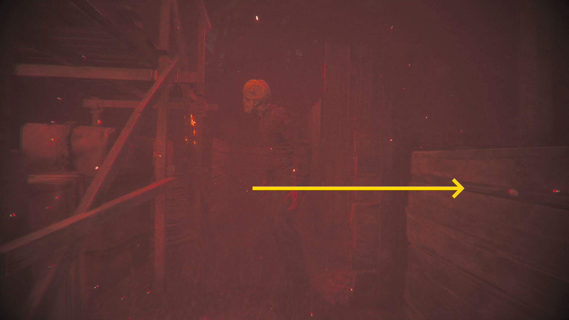 - まず真っ直ぐ進み、樽と焚き火のところを右に進む