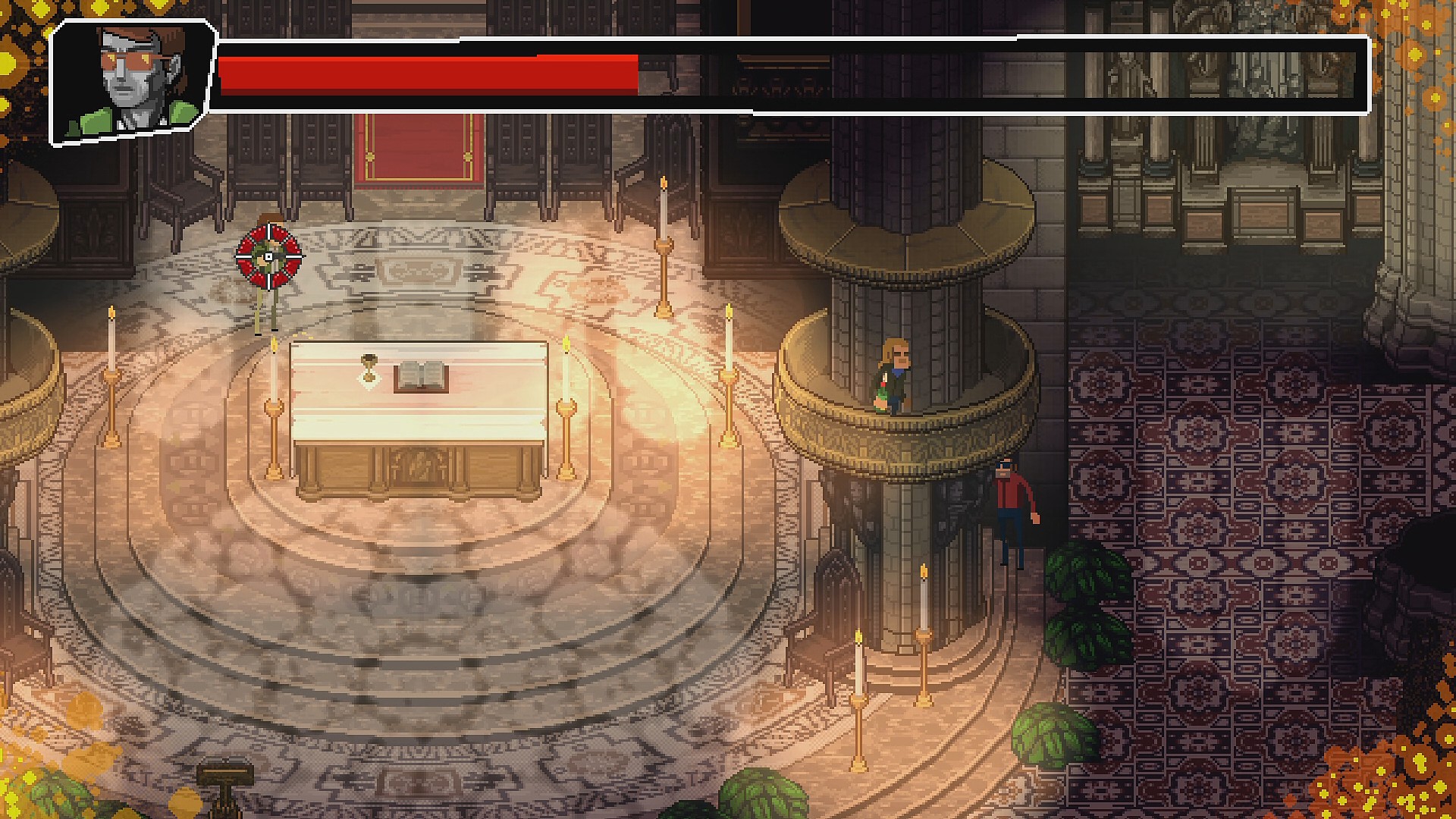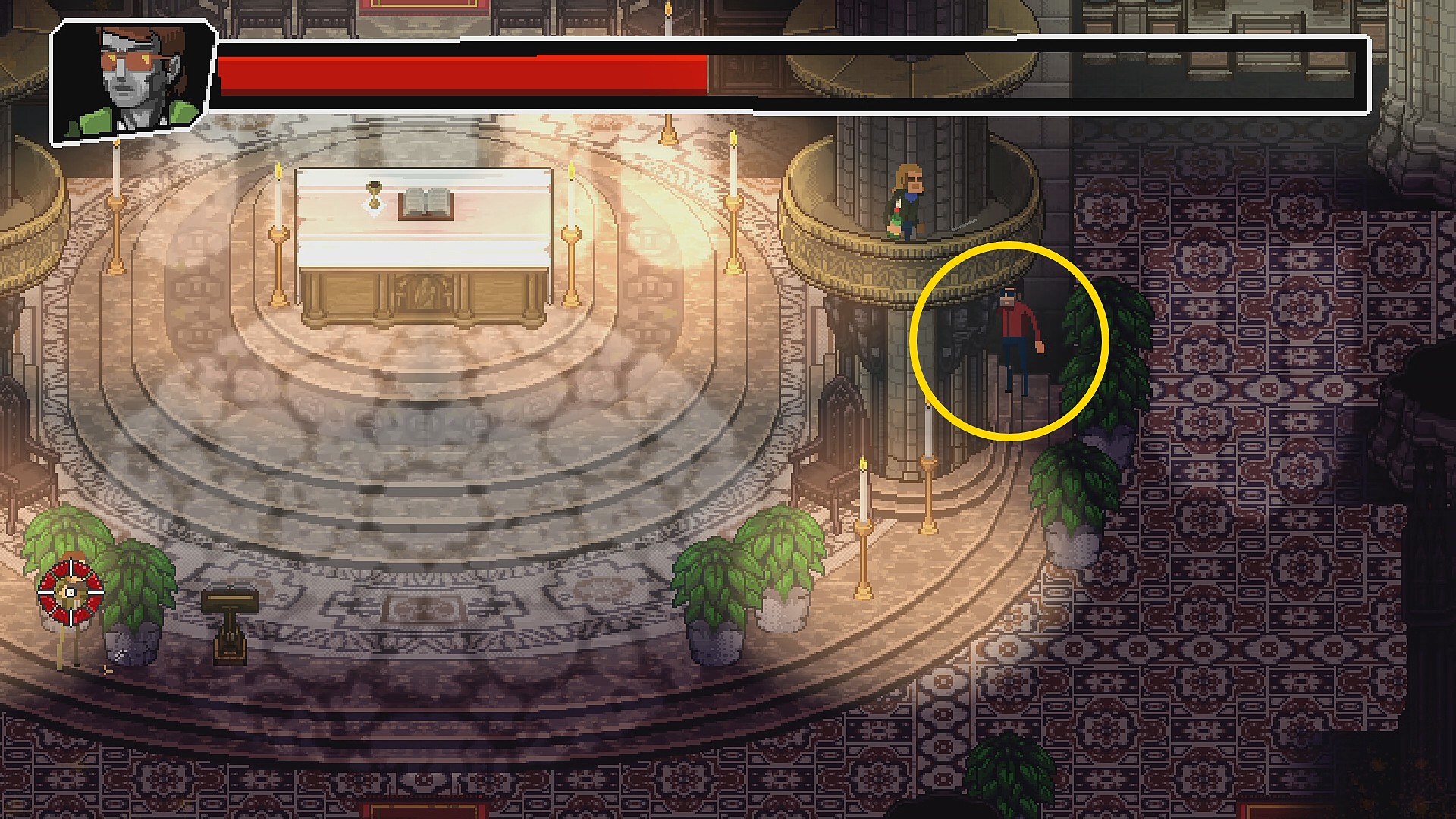 - ライフを半分削ると教会の奥で最後の戦闘