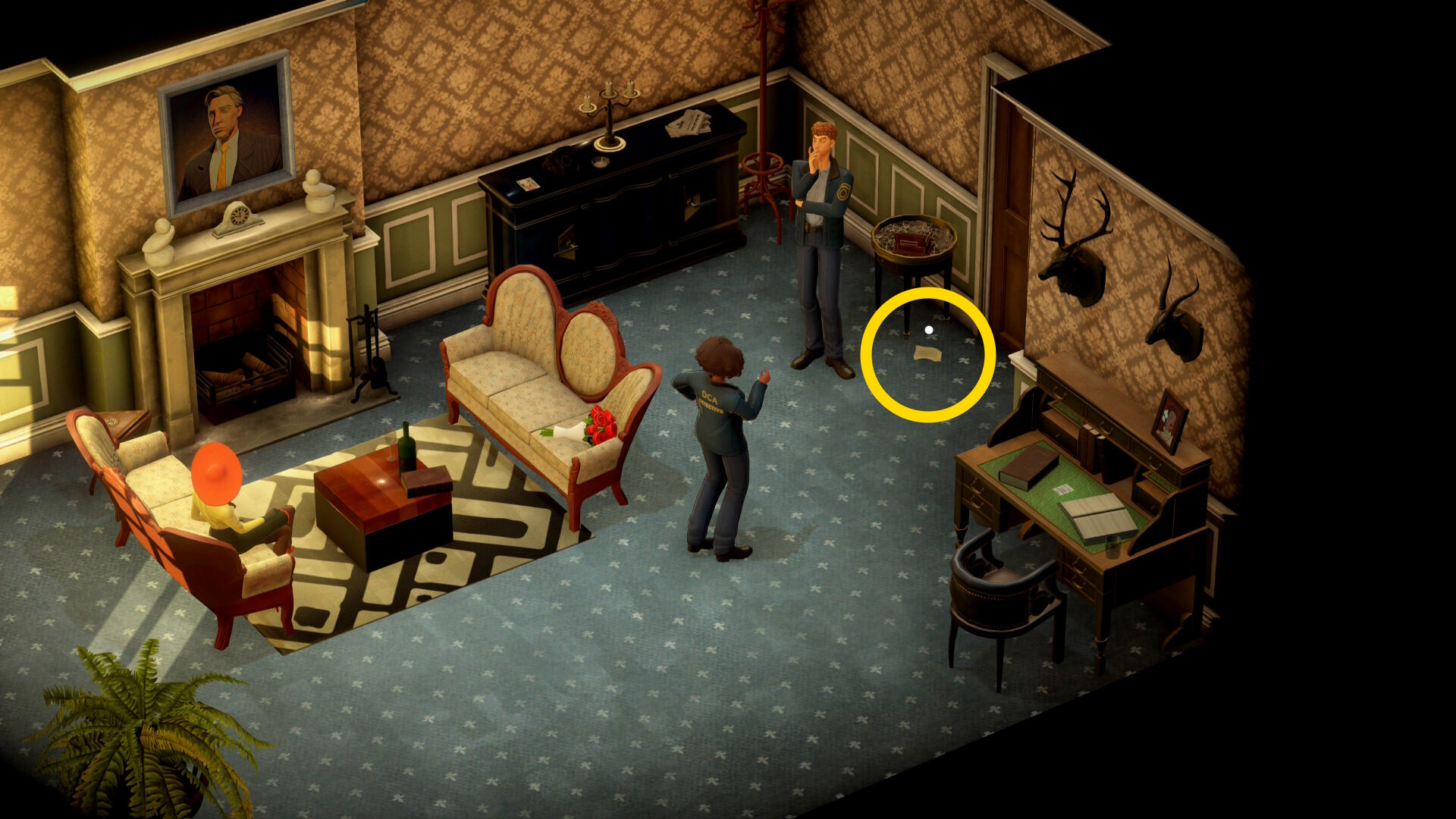 - 会話後、彼の足元に しわくちゃのギフトカード が落ちているので調べる