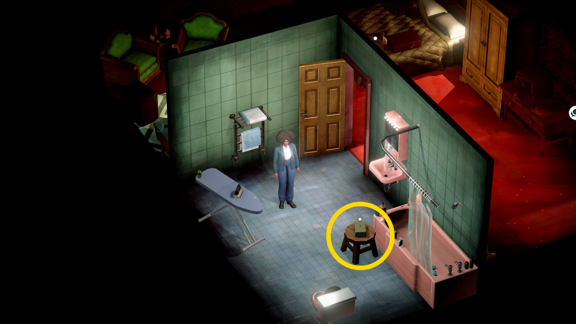- バスルームを出て、部屋の奥へ