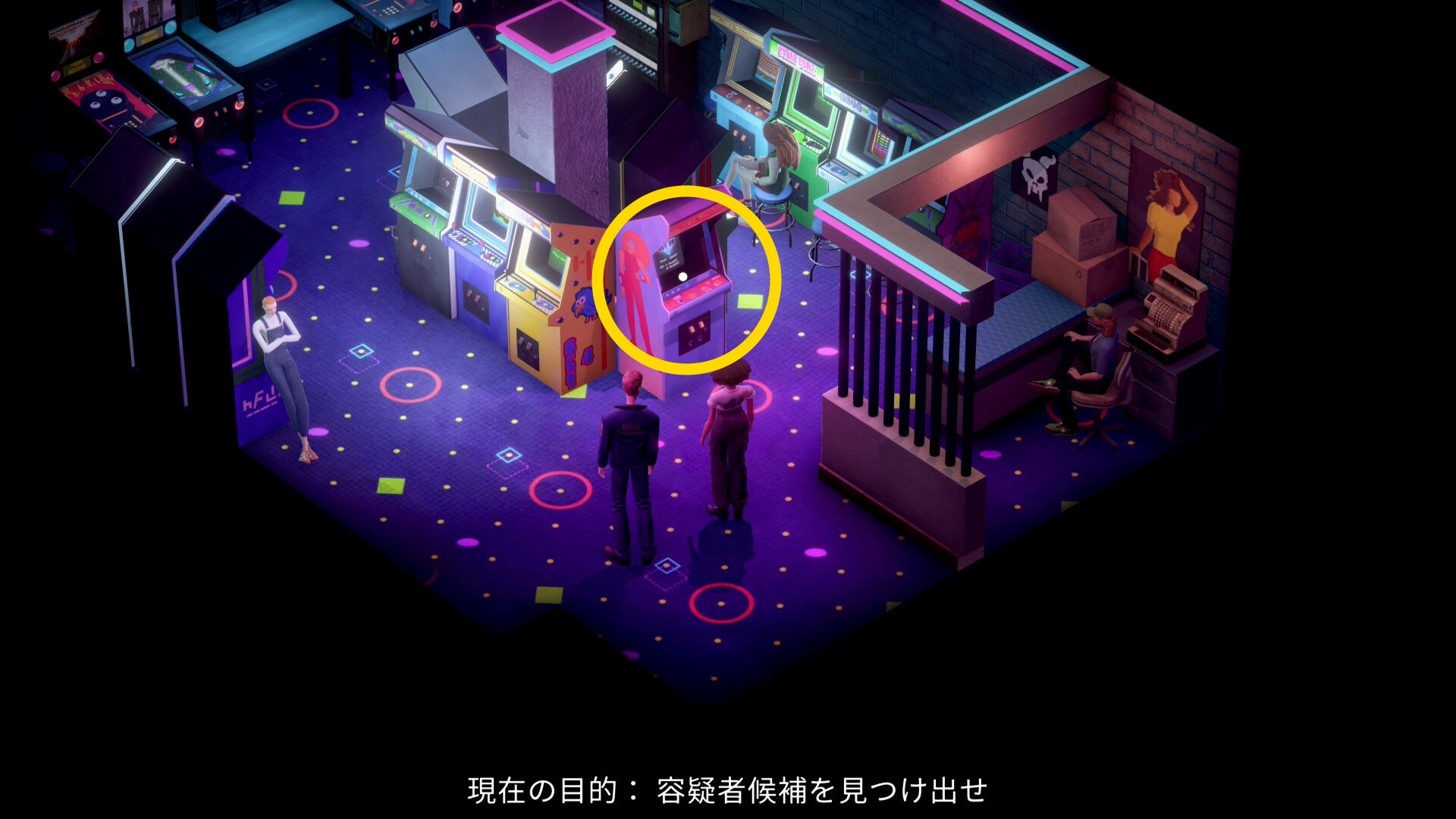 - 最初の場所に戻ってきたら、近くの ゲームマシン を調べることができるようになる
