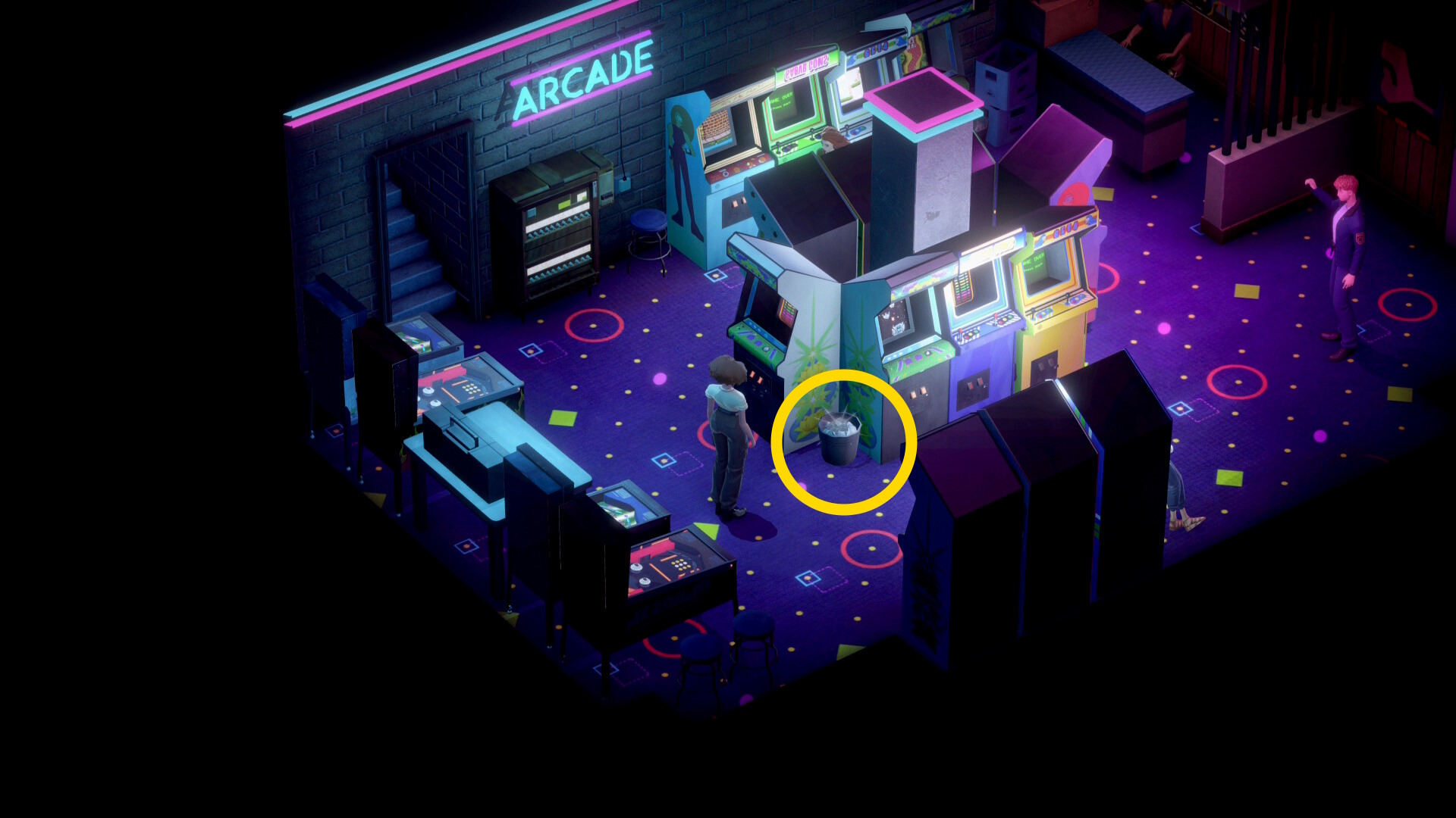 - 3人と会話したら、ゲーセンの中央にゴミ箱があり、そこに 隠しアイテム(2/8)