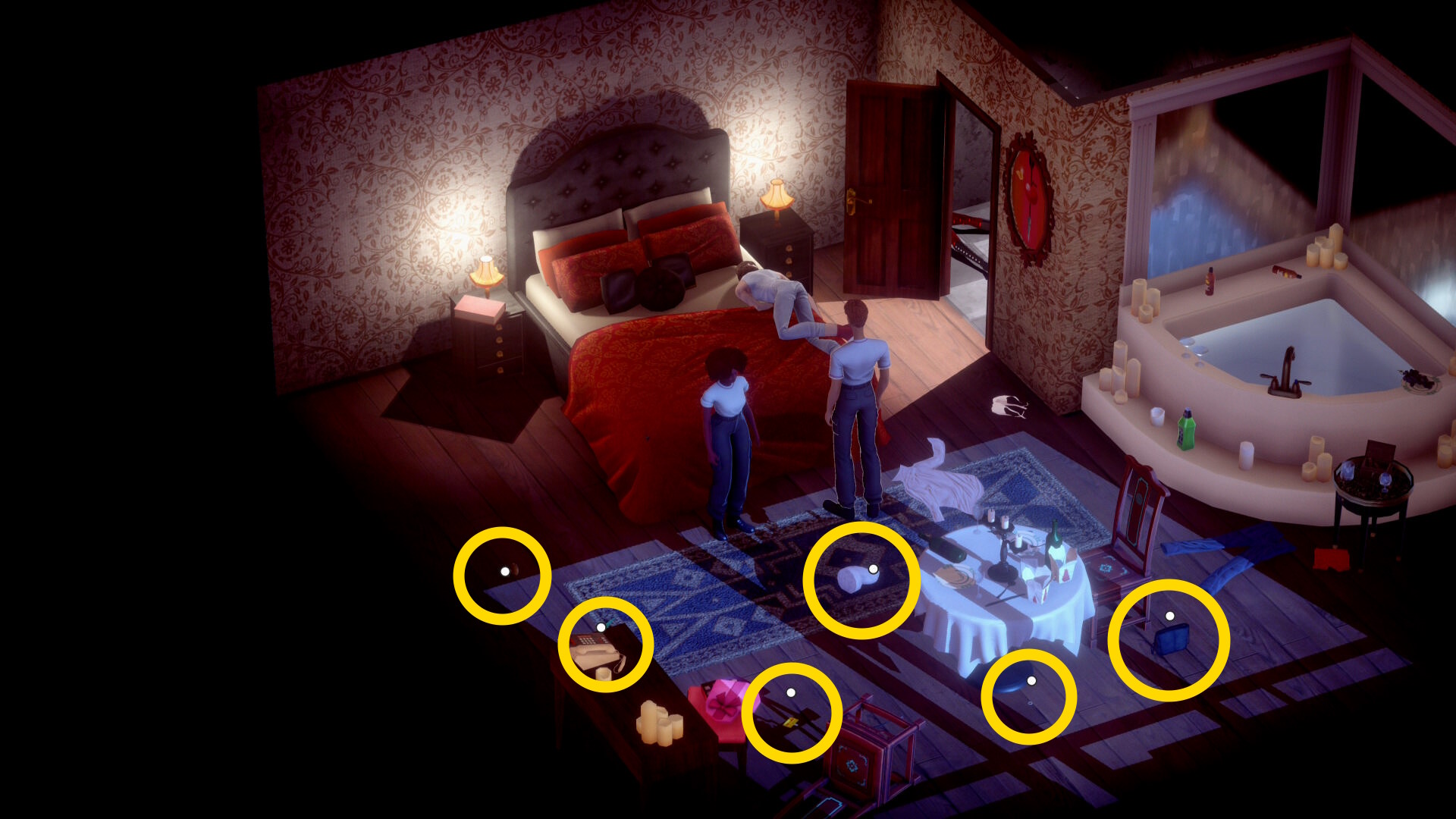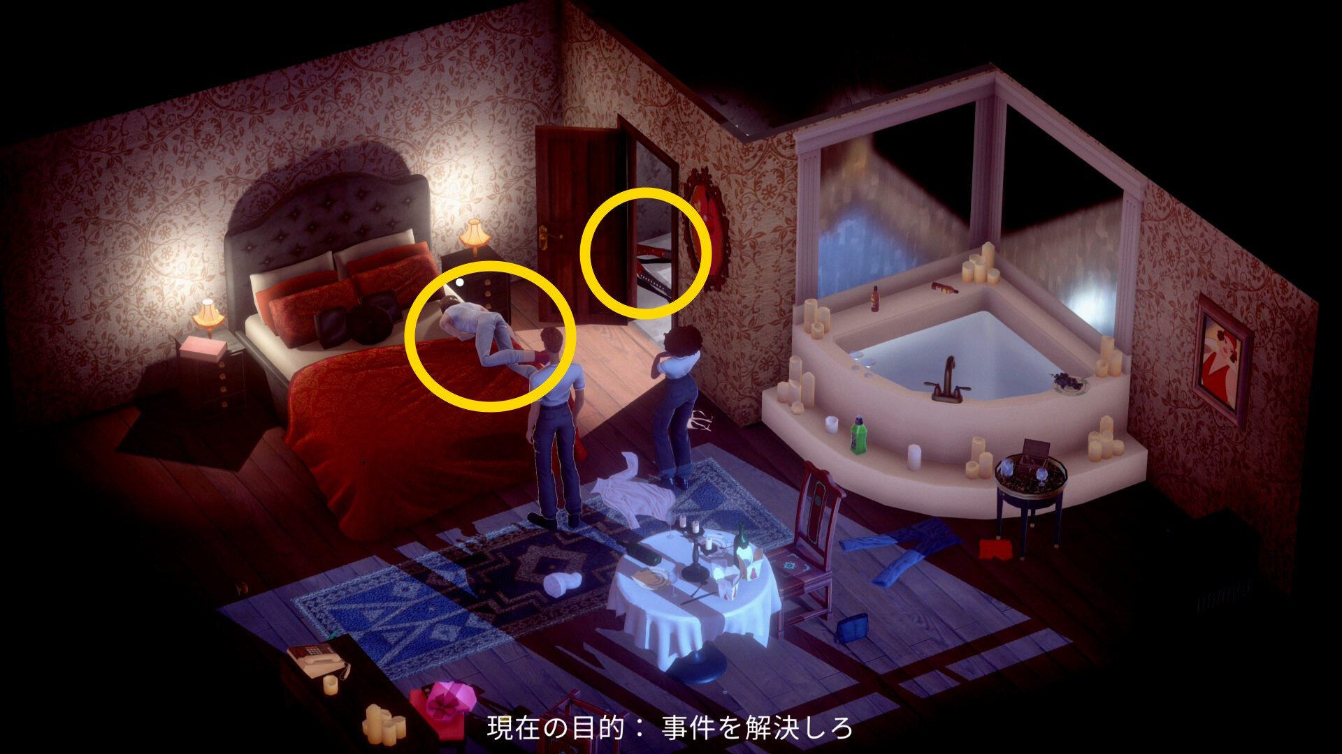 • 2人の死体を調べると部屋のアイテムを調べることができるようになる